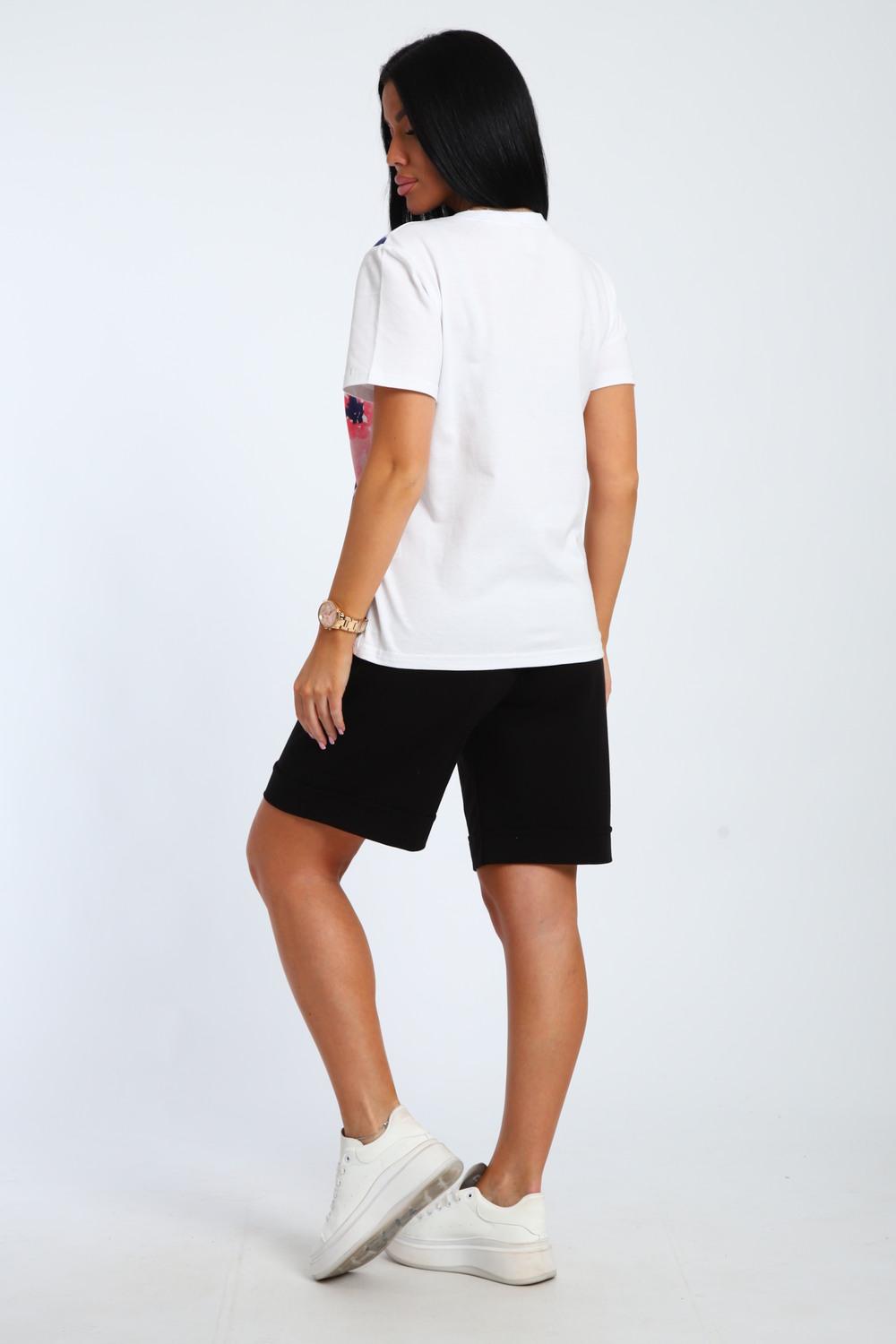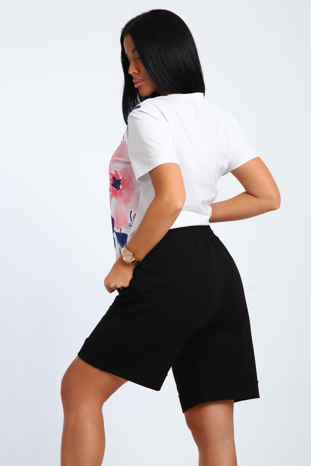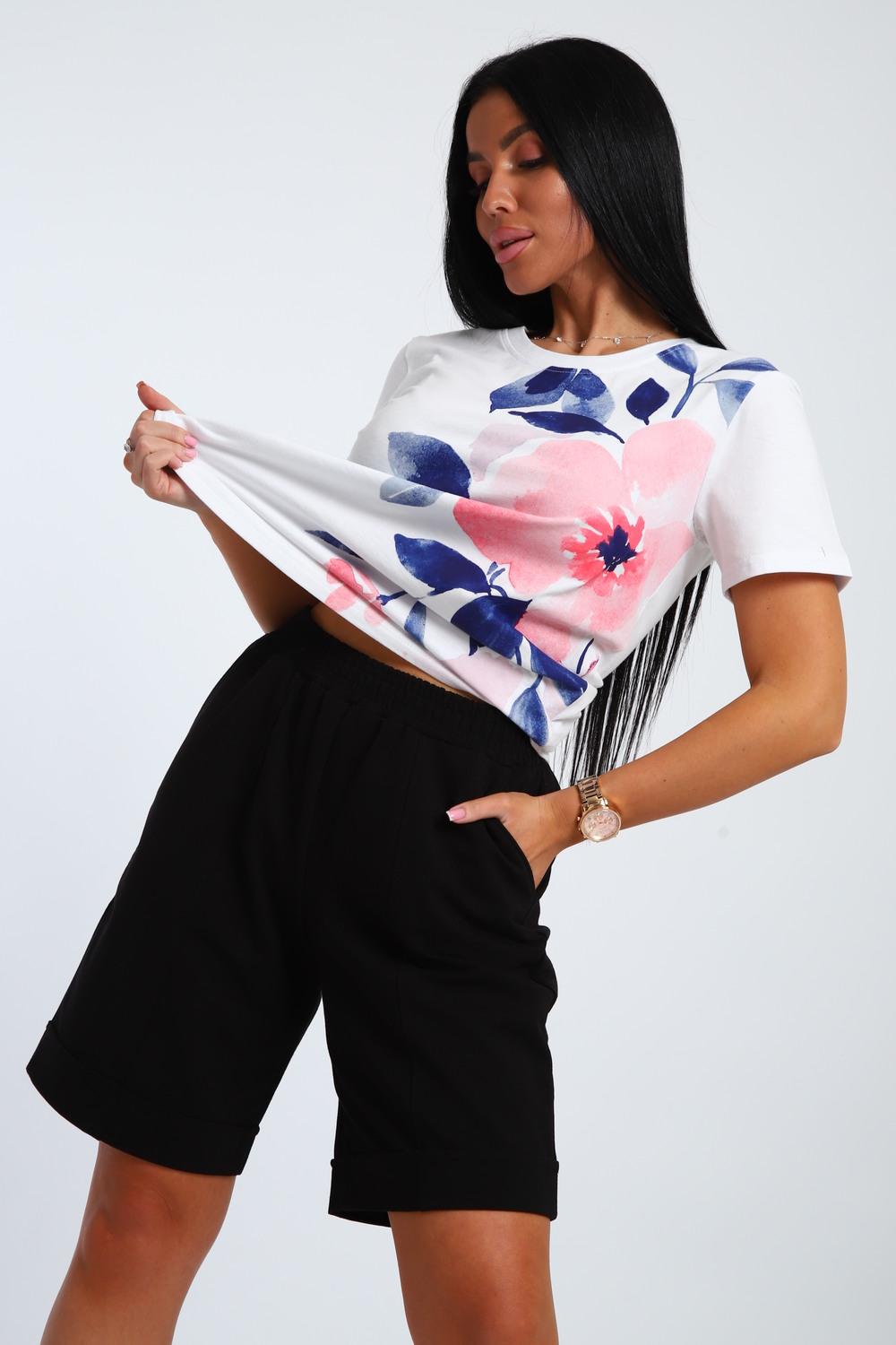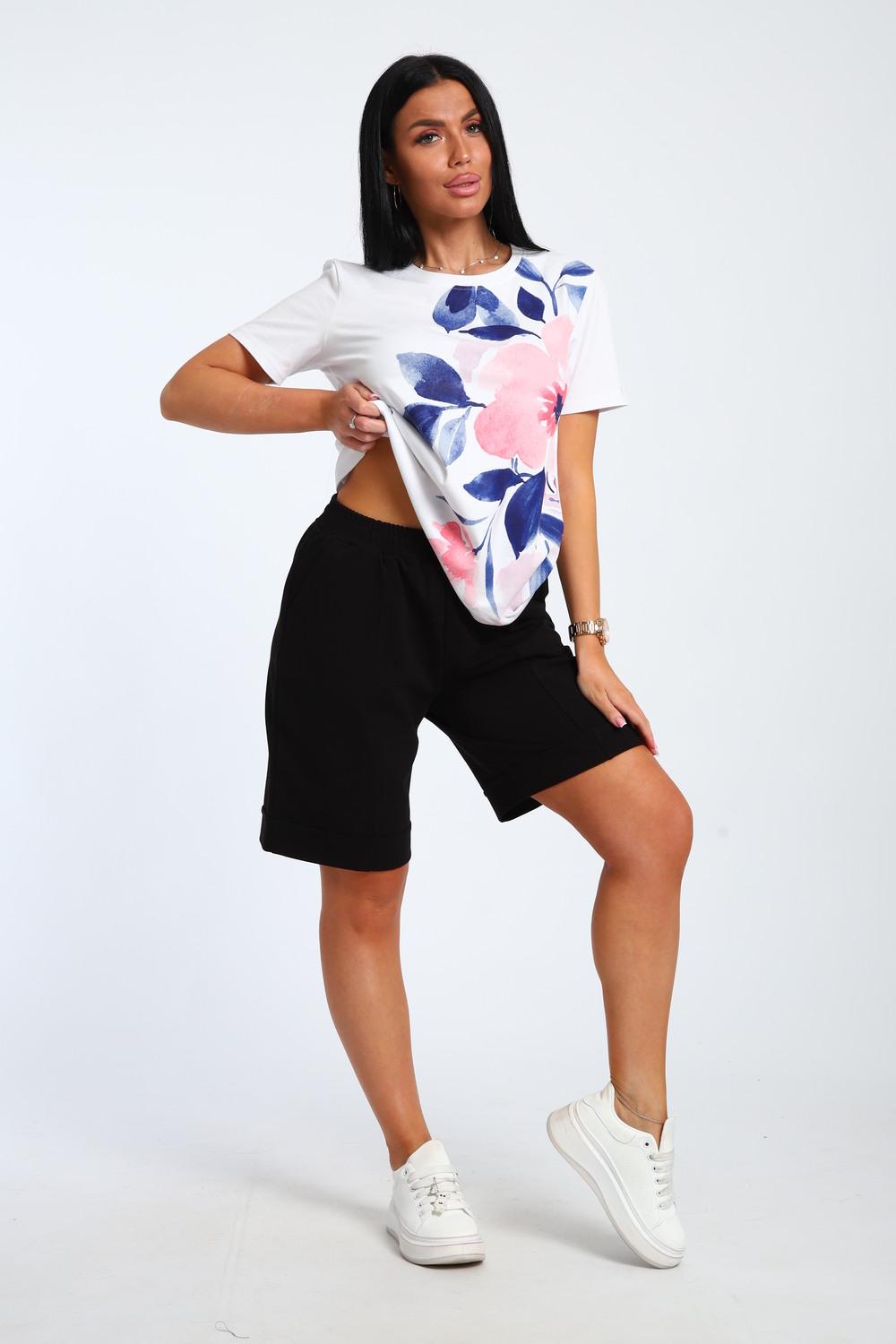 Летний женский костюм с шортами для дома и отдыха-удобный комплект,включающий футболку и шорты.Женский комплект отлично сидит на любой фигуре,подчеркивает её достоинства.Отличная посадка шорт с эластичным поясом гарантирует свободу движений.Лёгкая базовая футболка из 100% хлопка,не стесняет действий и позволяет коже дышать в самые жаркие дни.Размерный ряд включает как маленькие ,так и большие размеры.Он обязательно понравится вашим близким и родным,ведь быть модной можно и нужно всегда.