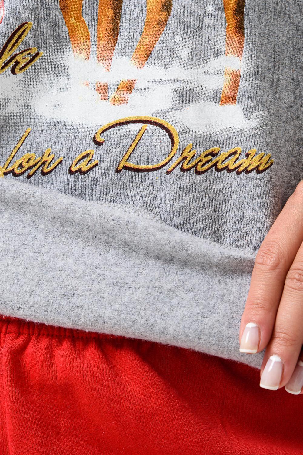 Олени - неотъемлемый атрибут Рождества. Традиция использовать в новогоднем убранстве рождественских оленей завоевала большую популярность во всём мире. В этом уютном удобном костюме из футера 2х нитки с начёсом комфортно находиться в домашней обстановке. В нём можно встретить праздник и использовать в качестве подарка. Костюм состоит из свитшота свободного кроя и брючек с карманами в боковых швах. Все манжеты на костюме выполнены из плотной резинки - кашкорсе. Пояс обработан плотной резинкой 3см. После стирки может быть небольшая усадка, поэтому имеется напуск. Длина рукава в измерениях указана от основания шеи.
