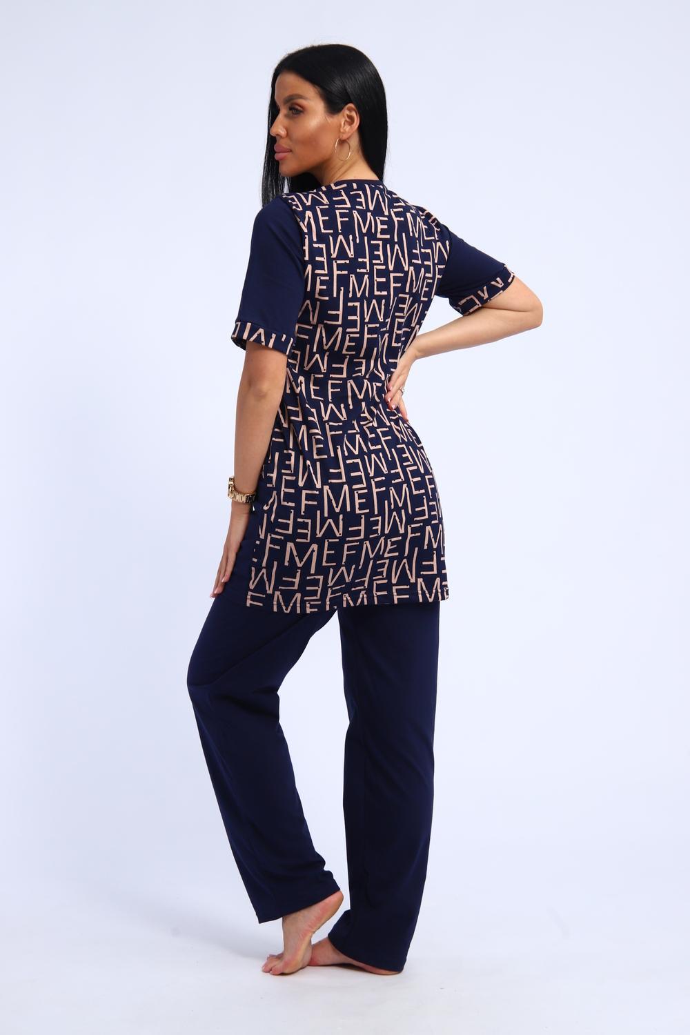 Костюм женский туника и брюки. Брюки прямого кроя. Туника полуприлегающего силуэта с карманами, рукав короткий.