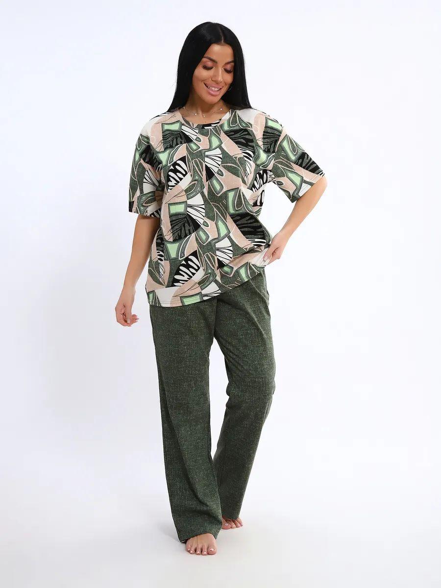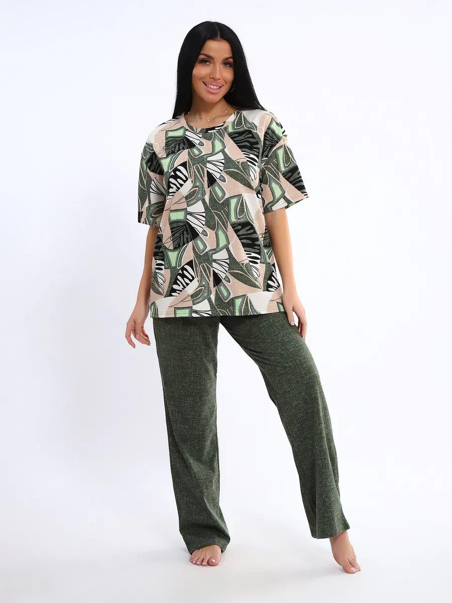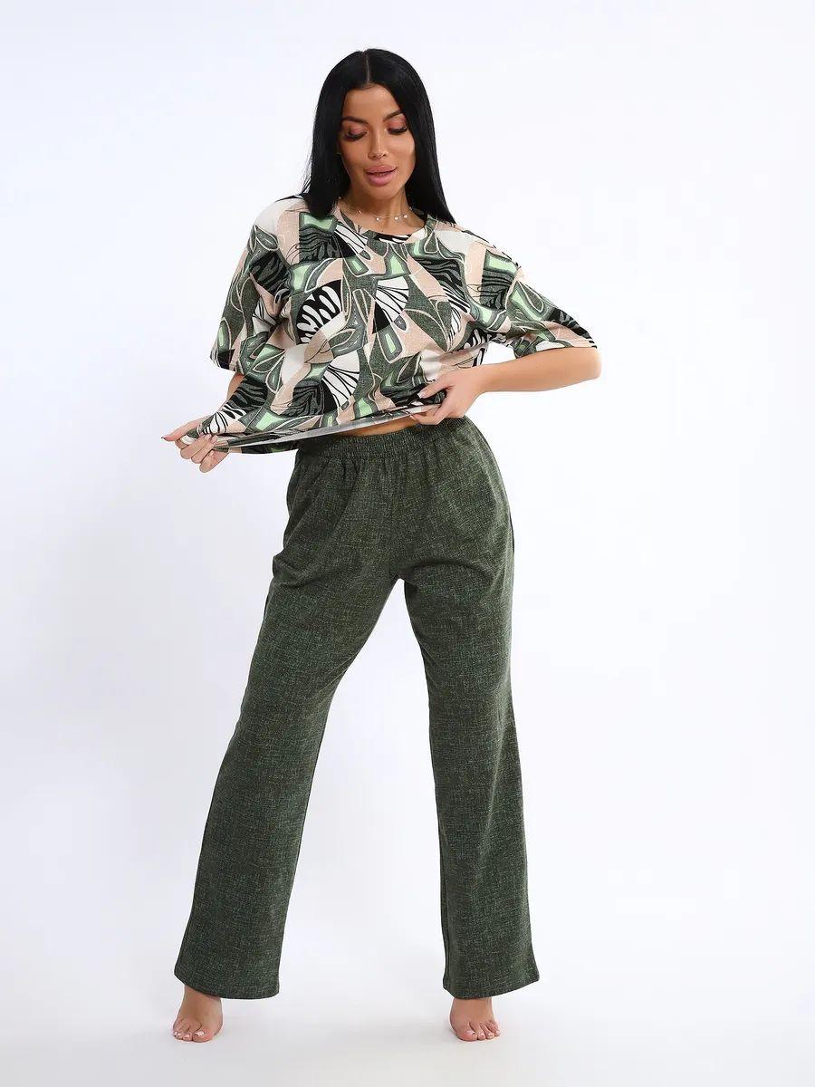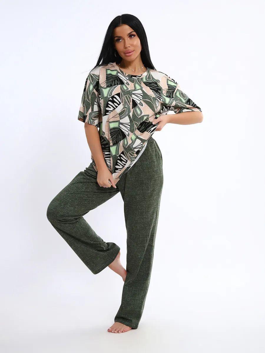 Женская пижама со штанами – идеальный вариант для комфортного отдыха дома. Этот домашний костюм выполнен из мягкого трикотажного хлопка, что обеспечивает приятные ощущения при носке. Пижамка состоит из футболки с коротким рукавом и легких штанов с карманами, которые свободно облегают тело, не сковывая движений. Хлопковая ткань позволяет коже дышать, что особенно важно в жаркую погоду, обеспечивая свежесть и комфорт во время сна.
