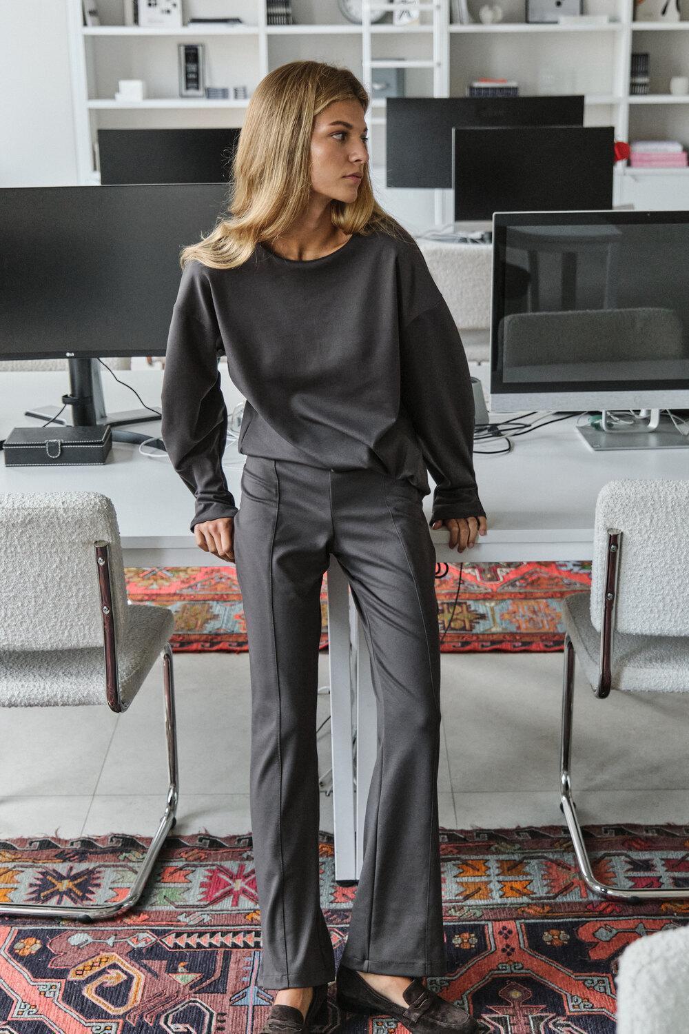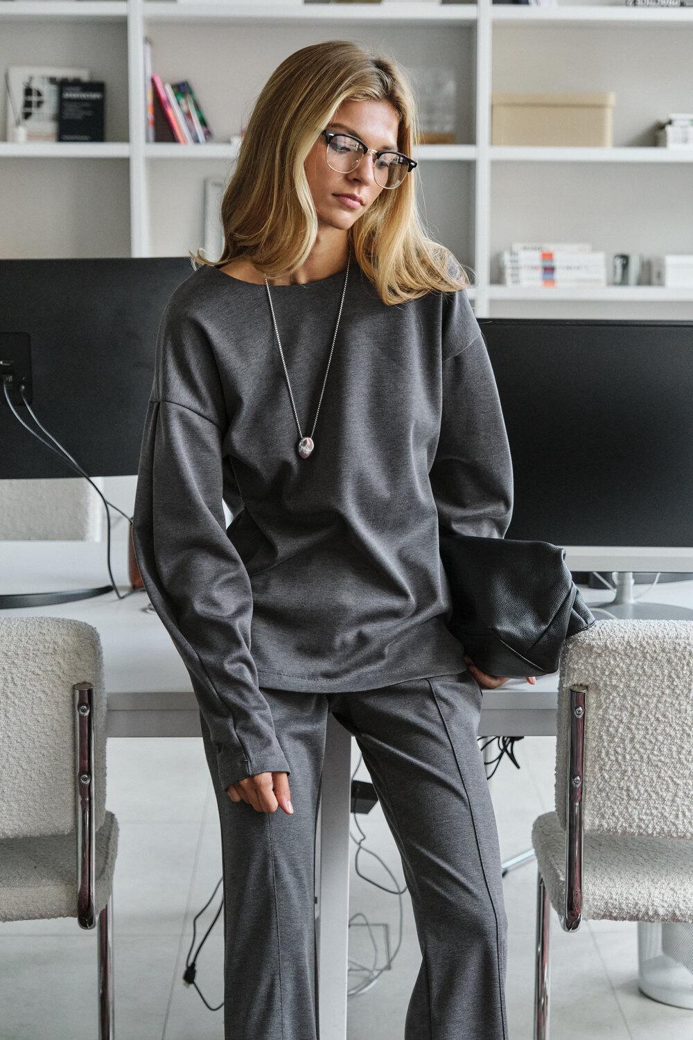 Однотонный ансамбль станет безупречным решением для учителя, элегантной школьной формой для старшеклассниц или строгим деловым комплектом для офисных будней. Трендовая кофточка оверсайз и штаны с высокой посадкой в стиле кэжуал – детали, которые легко трансформируются, позволяя создать аутентичный образ, соответствующий самым строгим требованиям офисного дресс-кода.