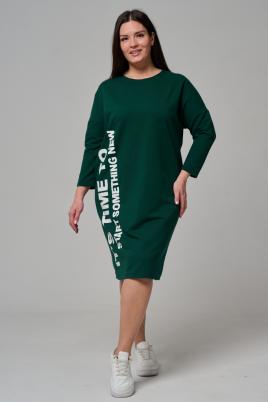 Лаконичный брючный костюм на фигуры больших размеров ( р. 62-74) из меланжированного хлопкого трикотажа "березка". Состоит из яркой туники со спущенным рукавом длинной до ягодиц и прямых темных брюк на поясе с резинкой в боковых швах обработаны карманы.