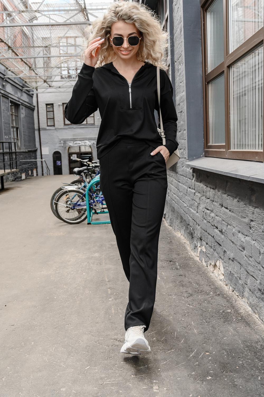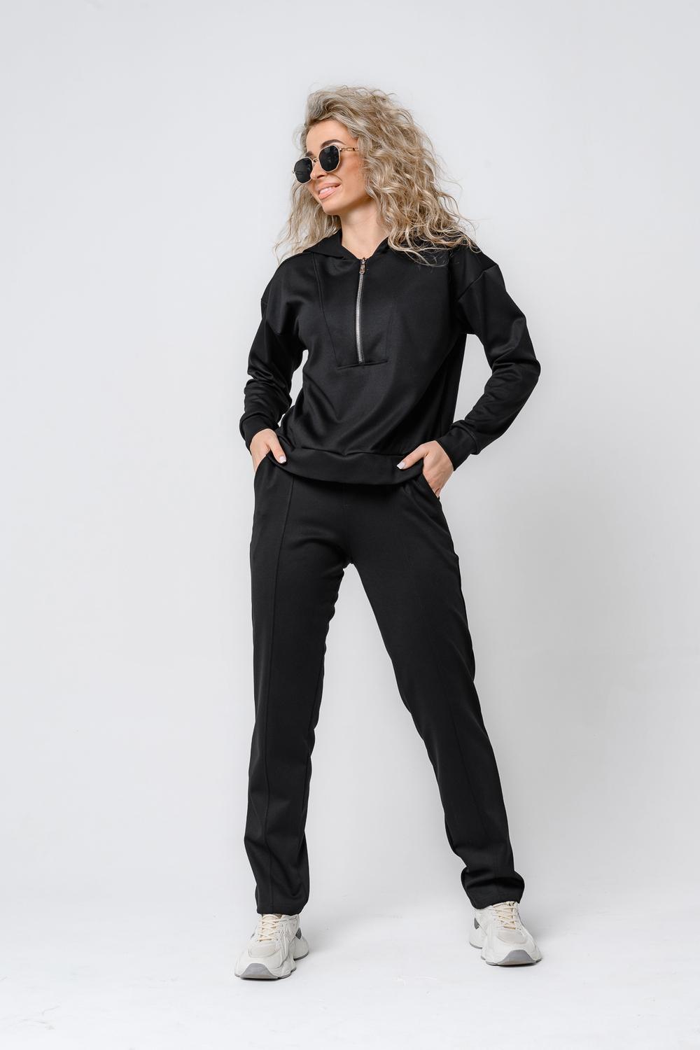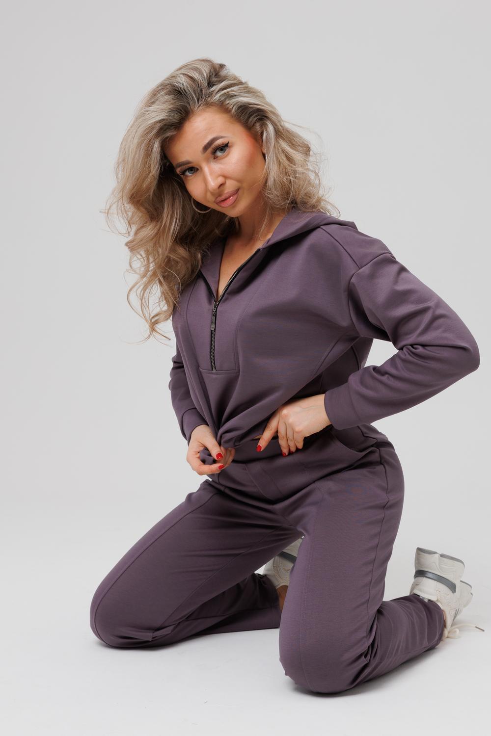Спортивный круглогодичный костюм от российского производителя бренда женской одежды! Костюм состоит из кофты на молнии до центра груди без карманов с капюшоном и брюк на резинке с карманами с отрезным бочком. По фасаду кофты выполнены рельефные швы, рукав спущенный полной длины, манжеты выполнены из основной ткани. Брюки по заднему фасаду изделия имеют два псевдокармана. Классический спортивный комплект идеален для спорта, отпуска, будет незаменим в поездках на отдыхе или командировке. Универсальность модели позволяет носить костюм как в теплые весенний и летний сезоны, так и в холодное время года сезонов осень зима. Базовая модель на каждый день подойдет как женщинам невысокого и среднего роста, так и высоким девушкам. Каждый элемент комплекта можно носить вместе или раздельно, что позволит создавать стильные и модные образы. В трендовой новинке будете чувствовать себя комфортно и уютно. Спортивный костюм станет отличным подарком на день рождение или праздник. Элегантная модель поможет создать эффектный, но при этом утонченный стиль. Новинка подчеркнет все достоинства и поможет скрыть недостатки фигуры благодаря универсальному, свободному фасону. Модель доступна в больших размерах плюс сайз - 50, 52 и 54, будет шикарно смотреться в любом возрасте, подойдет для полных девушек и беременных женщин.