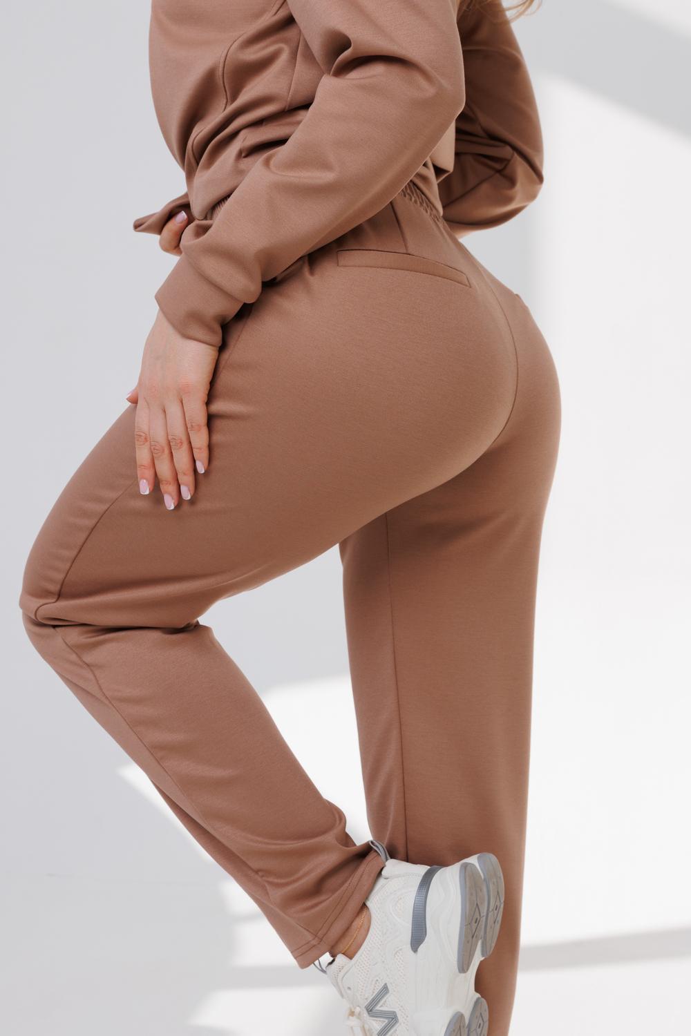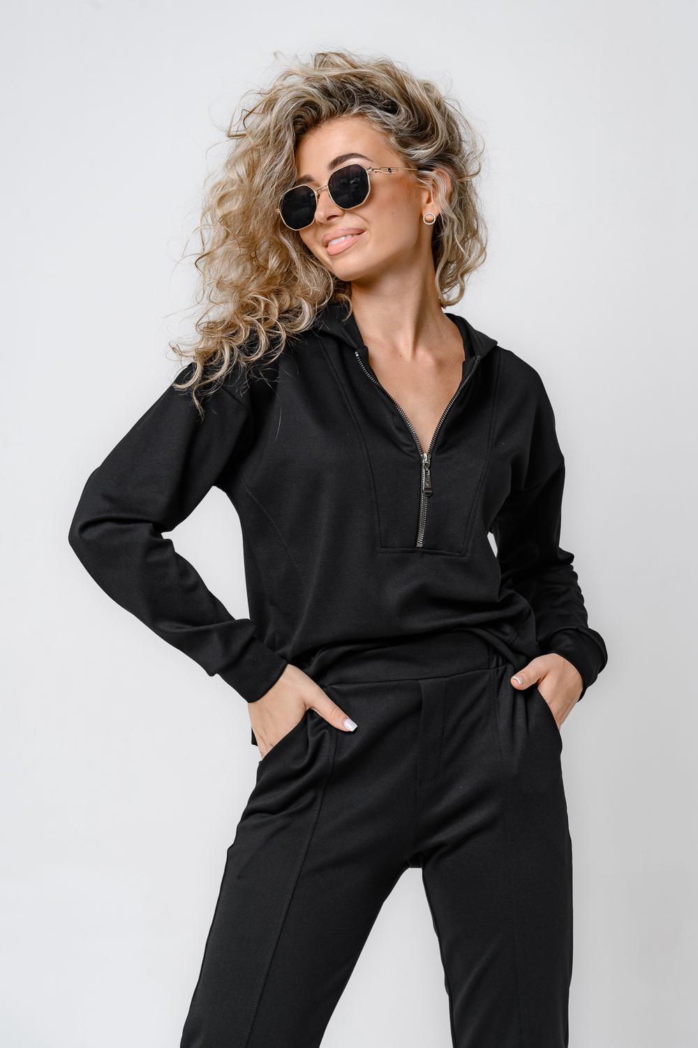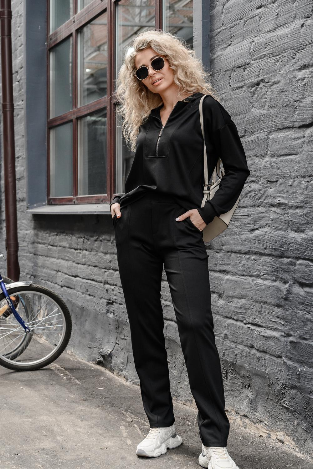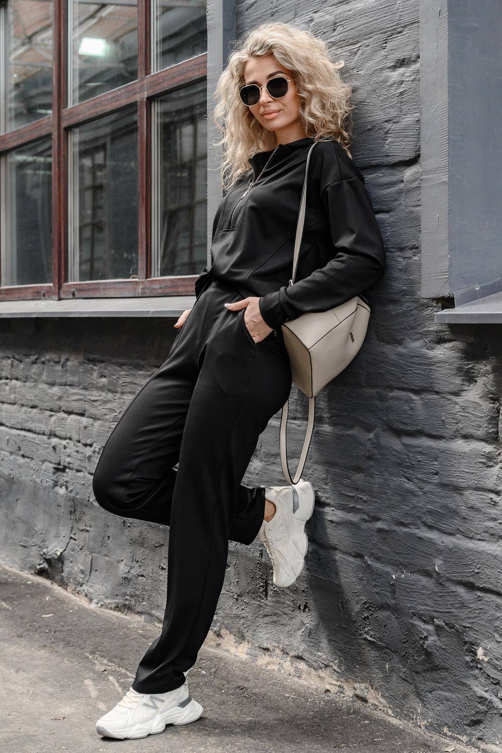 Спортивный круглогодичный костюм от российского производителя бренда женской одежды! Костюм состоит из кофты на молнии до центра груди без карманов с капюшоном и брюк на резинке с карманами с отрезным бочком. По фасаду кофты выполнены рельефные швы, рукав спущенный полной длины, манжеты выполнены из основной ткани. Брюки по заднему фасаду изделия имеют два псевдокармана. Классический спортивный комплект идеален для спорта, отпуска, будет незаменим в поездках на отдыхе или командировке. Универсальность модели позволяет носить костюм как в теплые весенний и летний сезоны, так и в холодное время года сезонов осень зима. Базовая модель на каждый день подойдет как женщинам невысокого и среднего роста, так и высоким девушкам. Каждый элемент комплекта можно носить вместе или раздельно, что позволит создавать стильные и модные образы. В трендовой новинке будете чувствовать себя комфортно и уютно. Спортивный костюм станет отличным подарком на день рождение или праздник. Элегантная модель поможет создать эффектный, но при этом утонченный стиль. Новинка подчеркнет все достоинства и поможет скрыть недостатки фигуры благодаря универсальному, свободному фасону. Модель доступна в больших размерах плюс сайз - 50, 52 и 54, будет шикарно смотреться в любом возрасте, подойдет для полных девушек и беременных женщин.