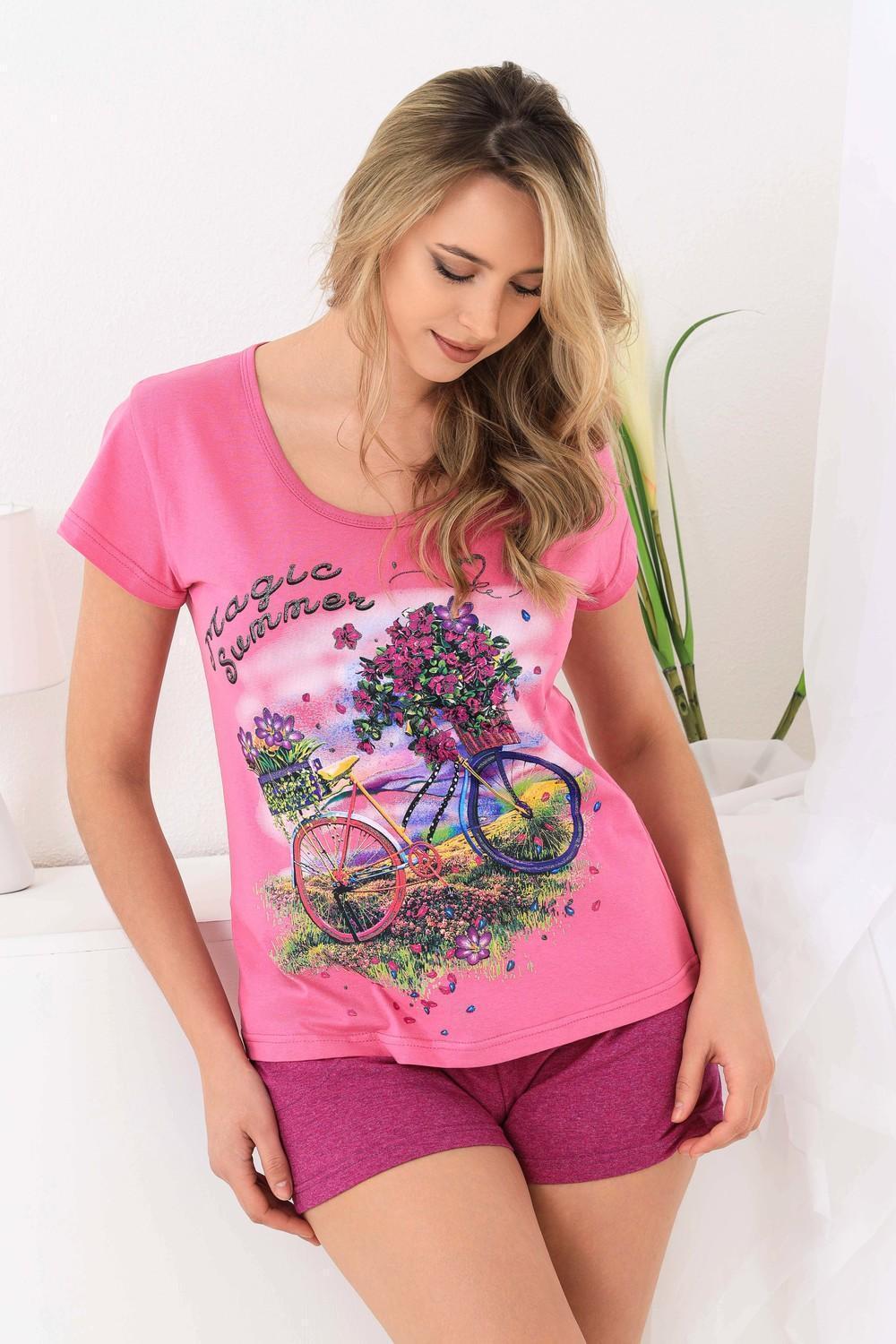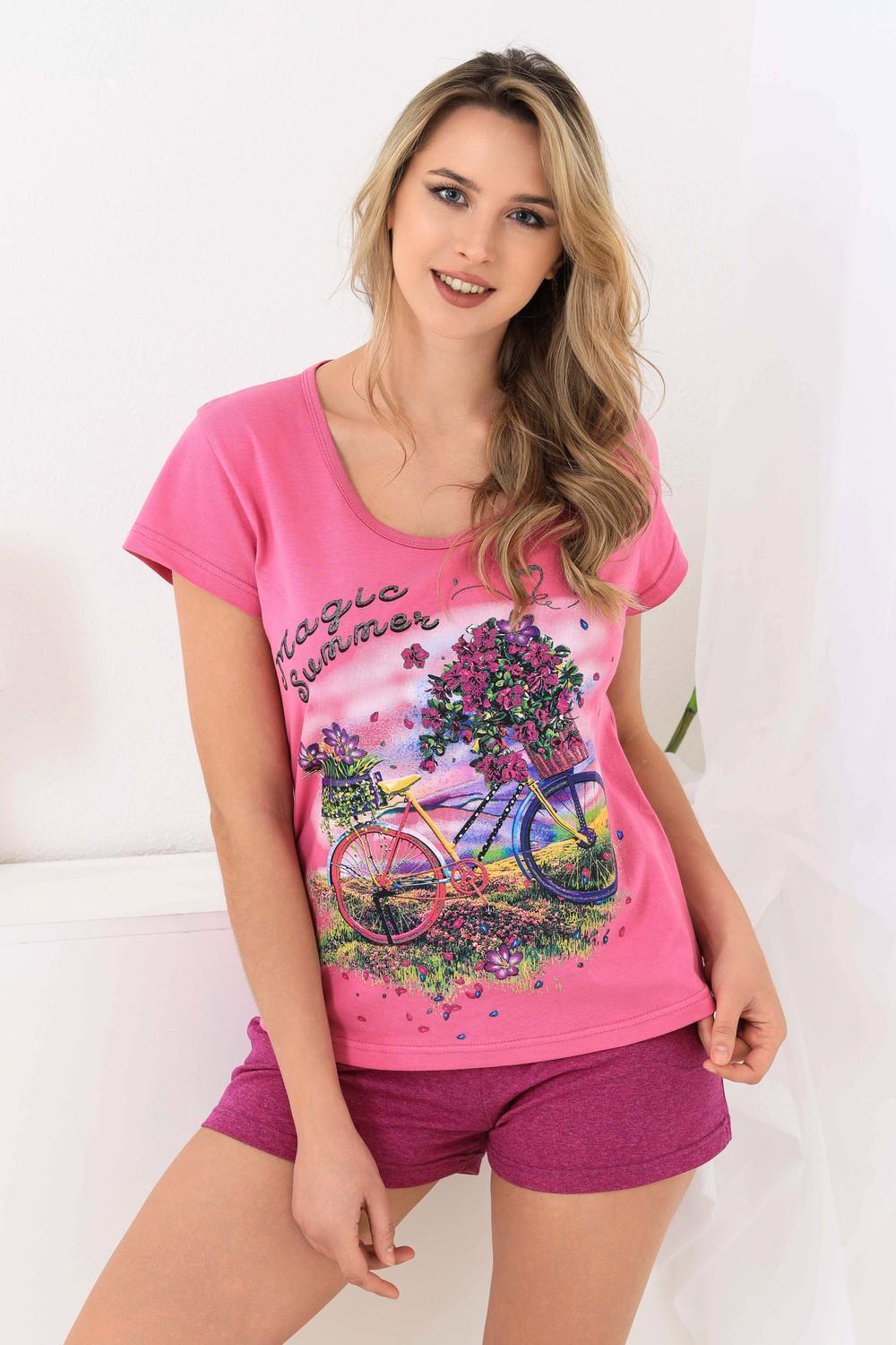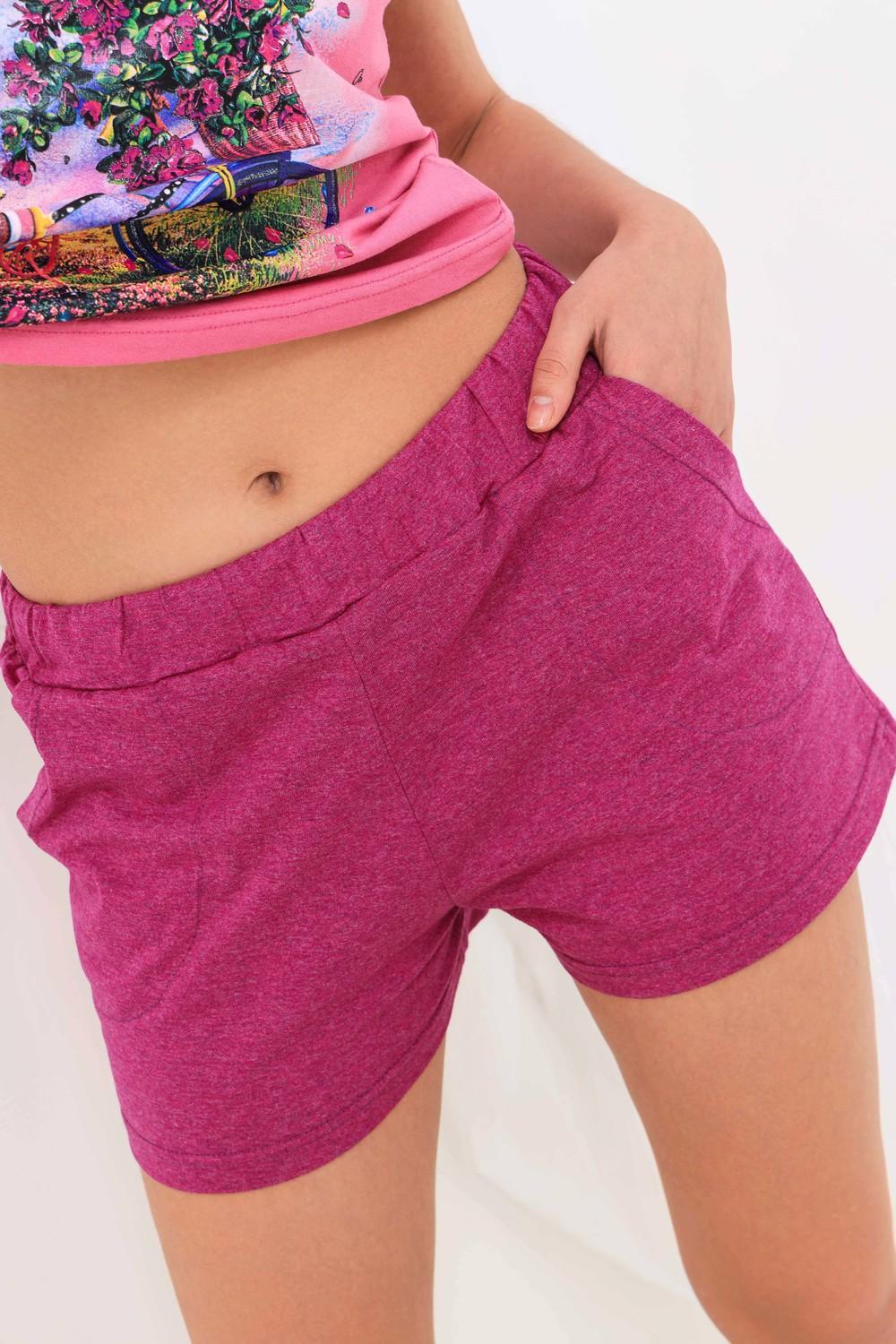 Молодежный костюм - футболка и шорты. Предназначен для ежедневной носки и отдыха на природе. Яркие цвета в тон шортиков. Пояс обработан широкой резинкой 4 см, спереди два кармана. Ткань для шорт используется с добавлением 30% п/э, что придаёт изделию прочность
