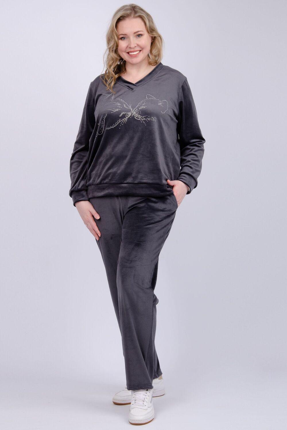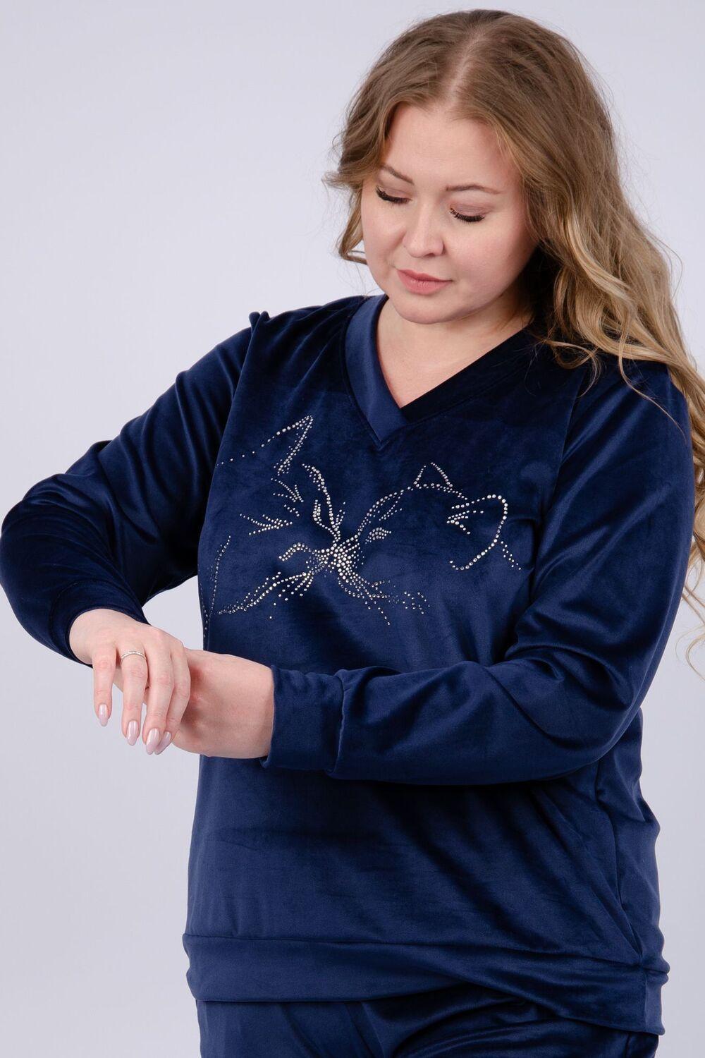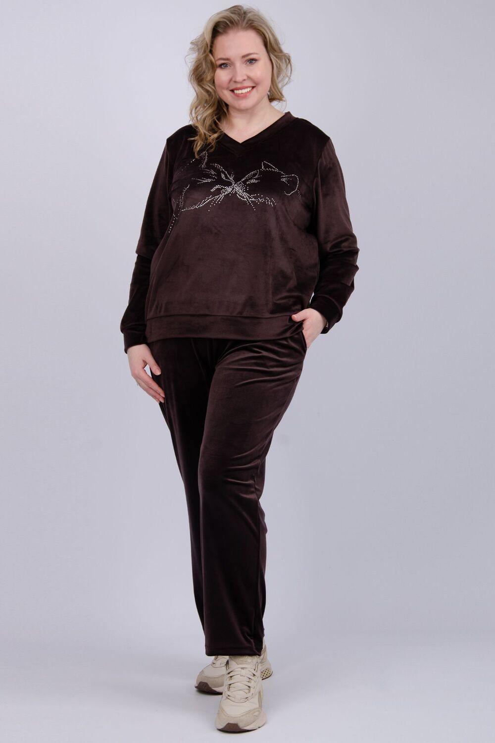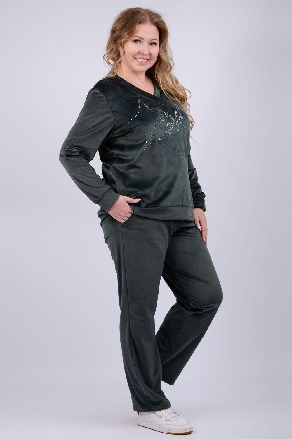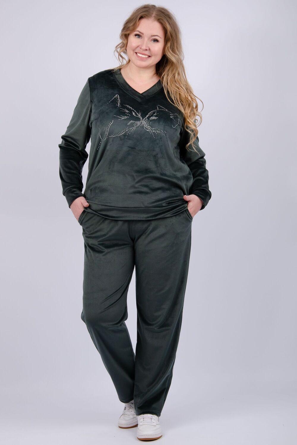 Женский велюровый костюм - это идеальное сочетание стиля, комфорта и практичности для повседневной жизни. Трикотажный комплект-двойка состоит из свитшота и брюк, которые будут отлично сочетаться с другими вещами из вашего гардероба. Высокая посадка и широкий размерный ряд, включая большие размеры, позволит подобрать комплект для разных типов фигур.