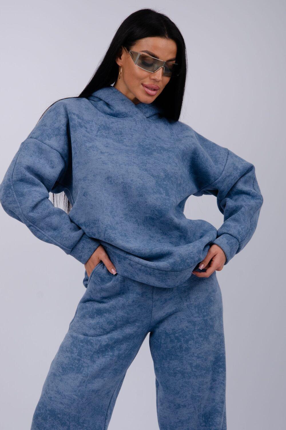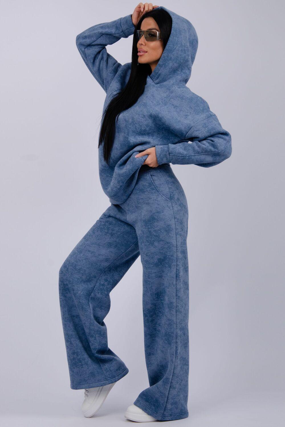 Теплый женский спортивный костюм из плотного футера, который выполнен из 3-х ниточного трикотажного полотна с начесом. Утепленное худи прямого силуэта с втачным спущенным рукавом и капюшоном, брюки палаццо на резинке свободного кроя подходит для прогулок и занятия спортом в прохладную погоду. Благодаря натуральному составу ткани, костюм спортивный весенний прекрасно подходит для прохладной погоды, он выполнен из мягкого хлопка с лицевой стороны и с начесом внутри.