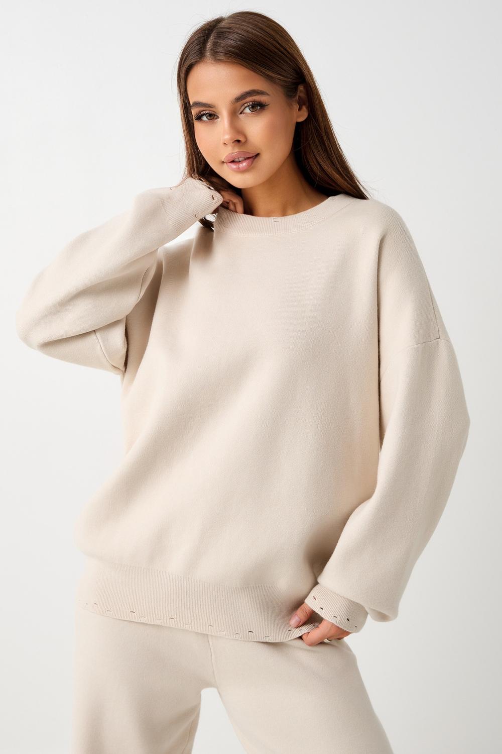 Вязаный костюм станет незаменимой основой женского гардероба для прохладной погоды, комфортным способом утепления. Он сшит из мягкой, приятной к телу пряжи с шерстяными волокнами, которая надолго сохраняет насыщенность цвета и свою форму, выдерживая интенсивное ношение и частые стирки. Стильный дизайнерский комплект отличается продуманным дизайном: кофточка - оверсайз со спущенным плечом, V-образным вырезом горловины и отложным воротником обеспечивает комфорт, а брюки - спортивки с широким поясом - резинкой, длинными штанинами с манжетами и удобными карманами подчеркивают силуэт, не сковывая движений. Универсальность классической пастельной палитры и лаконичного дизайна позволяет легко включать комплект в коллекцию вещей для осенне - весеннего демисезонного и зимнего периода. Он идеально сочетается с однотонными вариантами обуви и нарядными праздничными аксессуарами для создания элегантного и собранного образа.