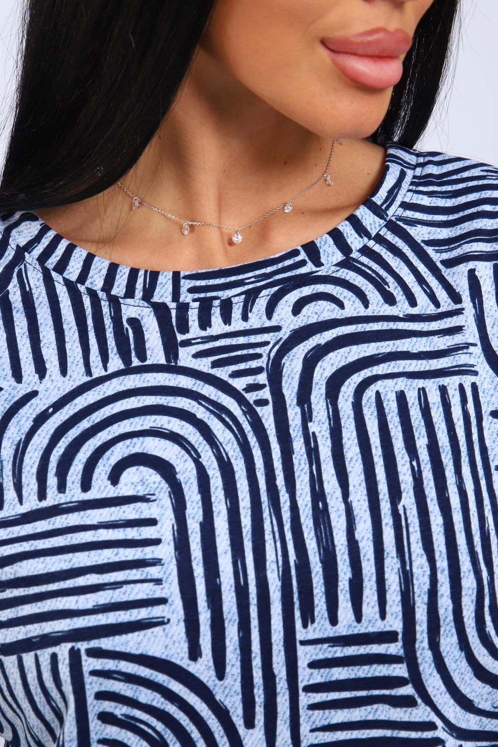 Костюм женский футболка и брюки. Футболка полуприлегающего силуэта. Рукав короткий на спущенном плече. Разрезы в боковых швах. Брюки прямого кроя.