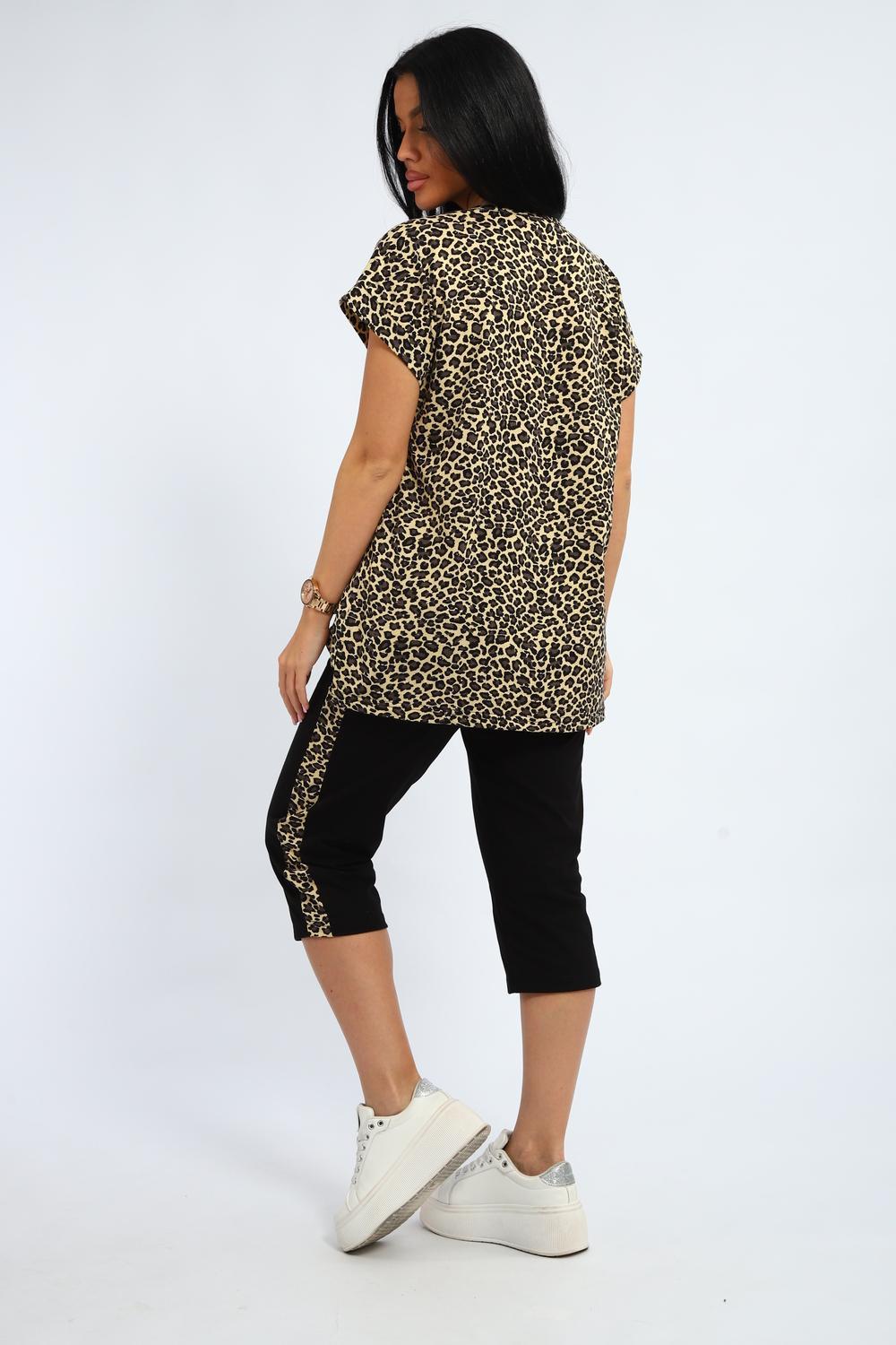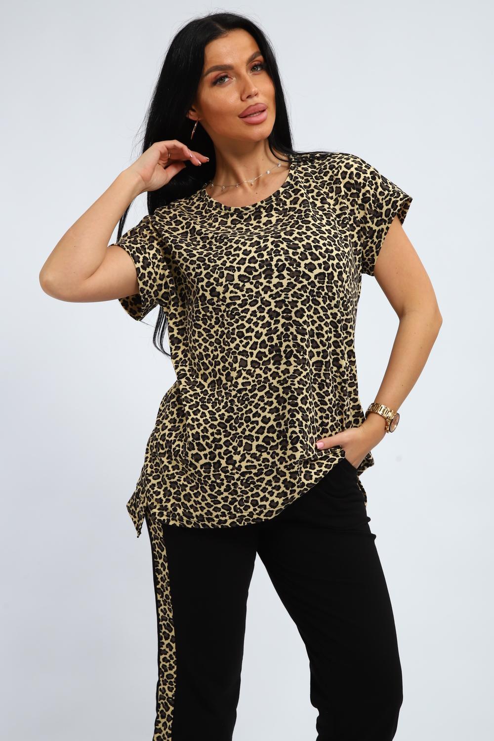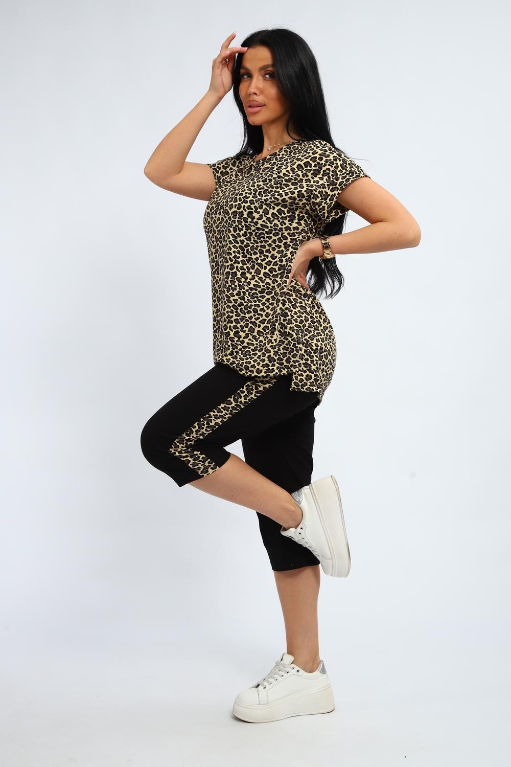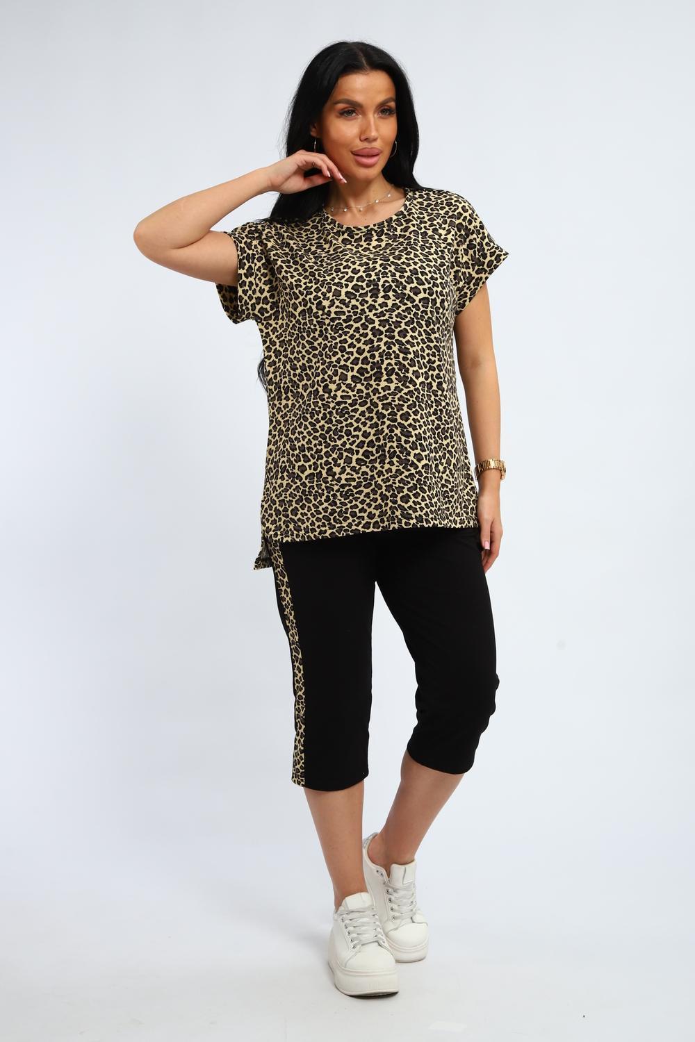 Костюм женский футболка и бриджи. Футболка полуприлегающего силуэта, плечо спущенное, разрезы в боковых швах. Бриджи с карманами и лампасами.