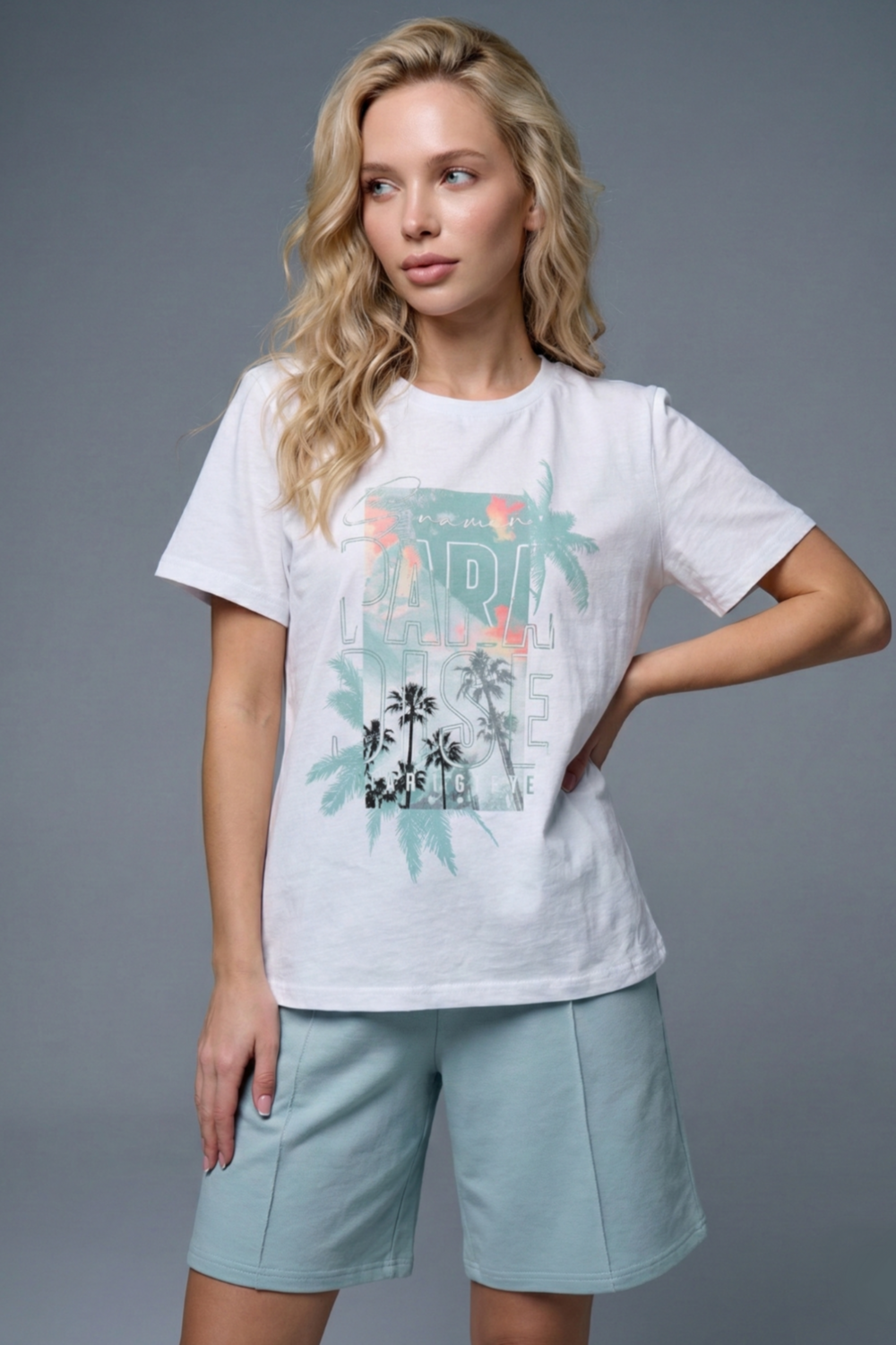 Комплект двойка дает Вам возможность выглядеть ярко и выразительно, но при этом комфортно и стильно. Оверсайз крой этого летнего костюма дарит ощущение свободы и легкости, не сковывает телодвижения. Домашний костюм женский позволит Вам чувствовать себя уверенно, подчеркивая все достоинства Вашей фигуры.