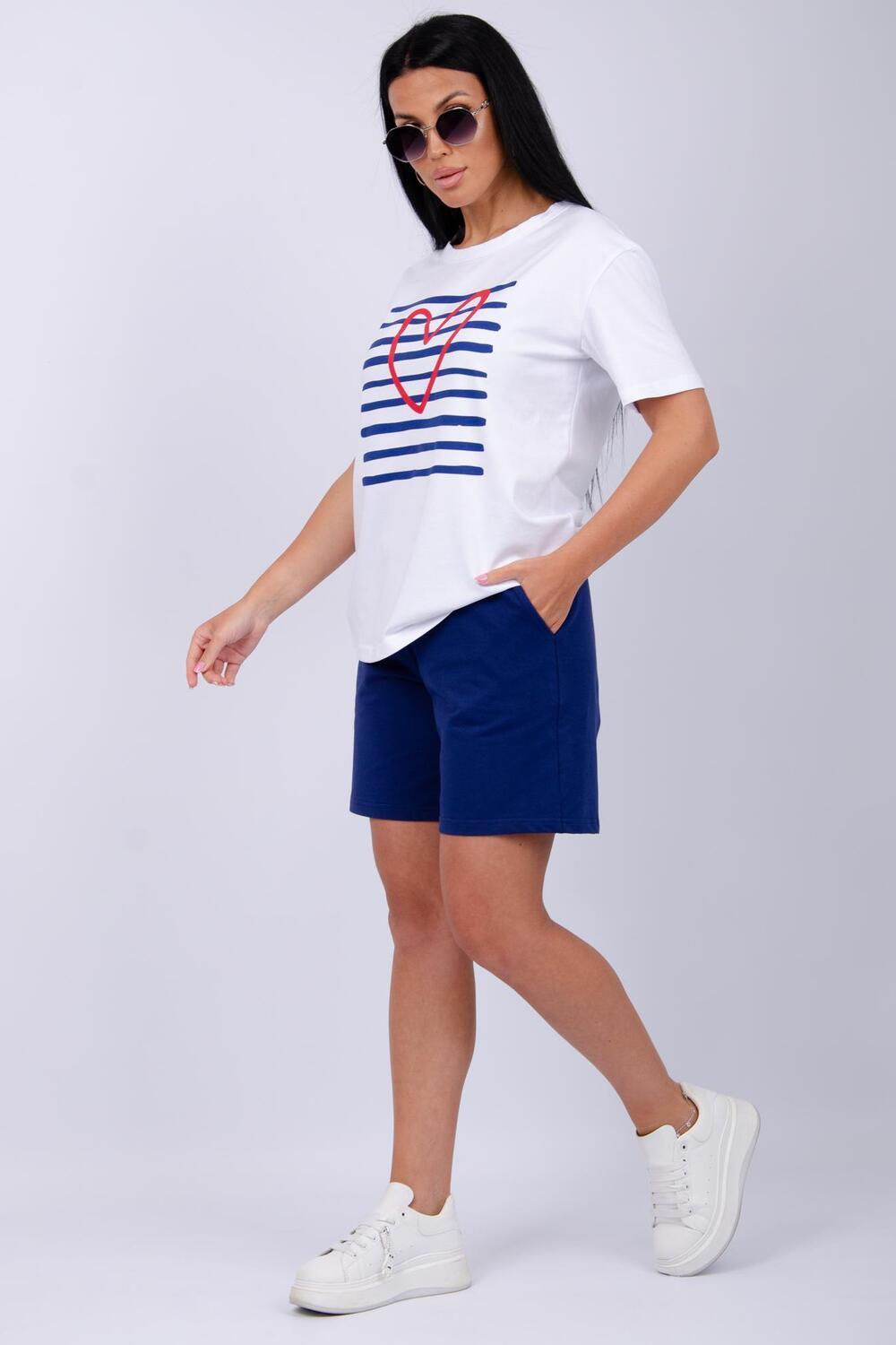 Стильный женский костюм - отличное дополнение гардероба на летний сезон. Этот комфортный комплект идеально подходит для отдыха дома или прогулок по свежему воздуху. Изготовленный из легких и дышащих тканей, он обеспечит вам максимальное удобство в жаркую погоду. Двойка состоит из футболки и шорт, которые созданы для того, чтобы дарить ощущение свободы и легкости, позволяя вам наслаждаться каждой минутой. Модель предлагается в больших размерах, что позволяет каждой женщине найти подходящий вариант. В нем вы будете чувствовать себя уверенно, независимо от того, проводите ли вы время за чтением книги в любимом кресле или готовите ужин на кухне. Такой комплект станет отличным выбором как для отдыха, так и для активного времяпрепровождения дома. Он станет вашим верным спутником на протяжении всего теплого времени года, придавая вашему стилю легкость и непринужденность. Рассмотрите его как практичный вариант для себя или в качестве подарка для близкой подруги, сестры или мамы. Этот костюм позволит насладиться комфортом и стилем в любой ситуации.