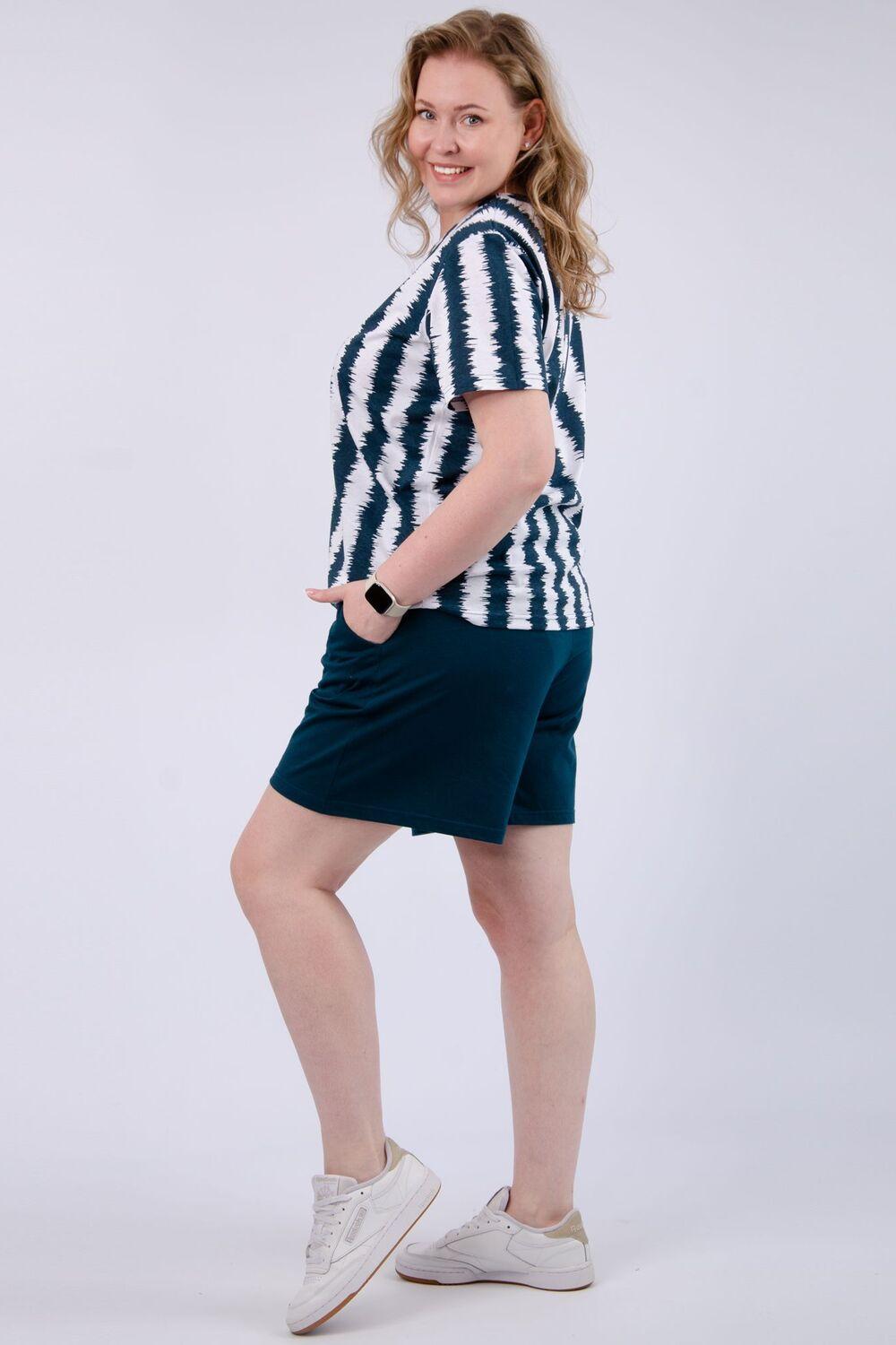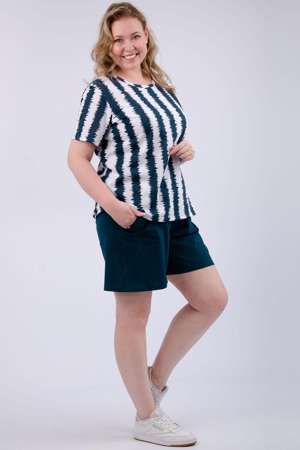 Костюм Николь представляет собой идеальный выбор для женщин, ищущих комфорт и стиль в повседневной одежде. Этот костюм с шортами выполнен в больших размерах, что делает его универсальным для различных фигур. Беззастежная конструкция обеспечивает легкость и удобство при надевании.