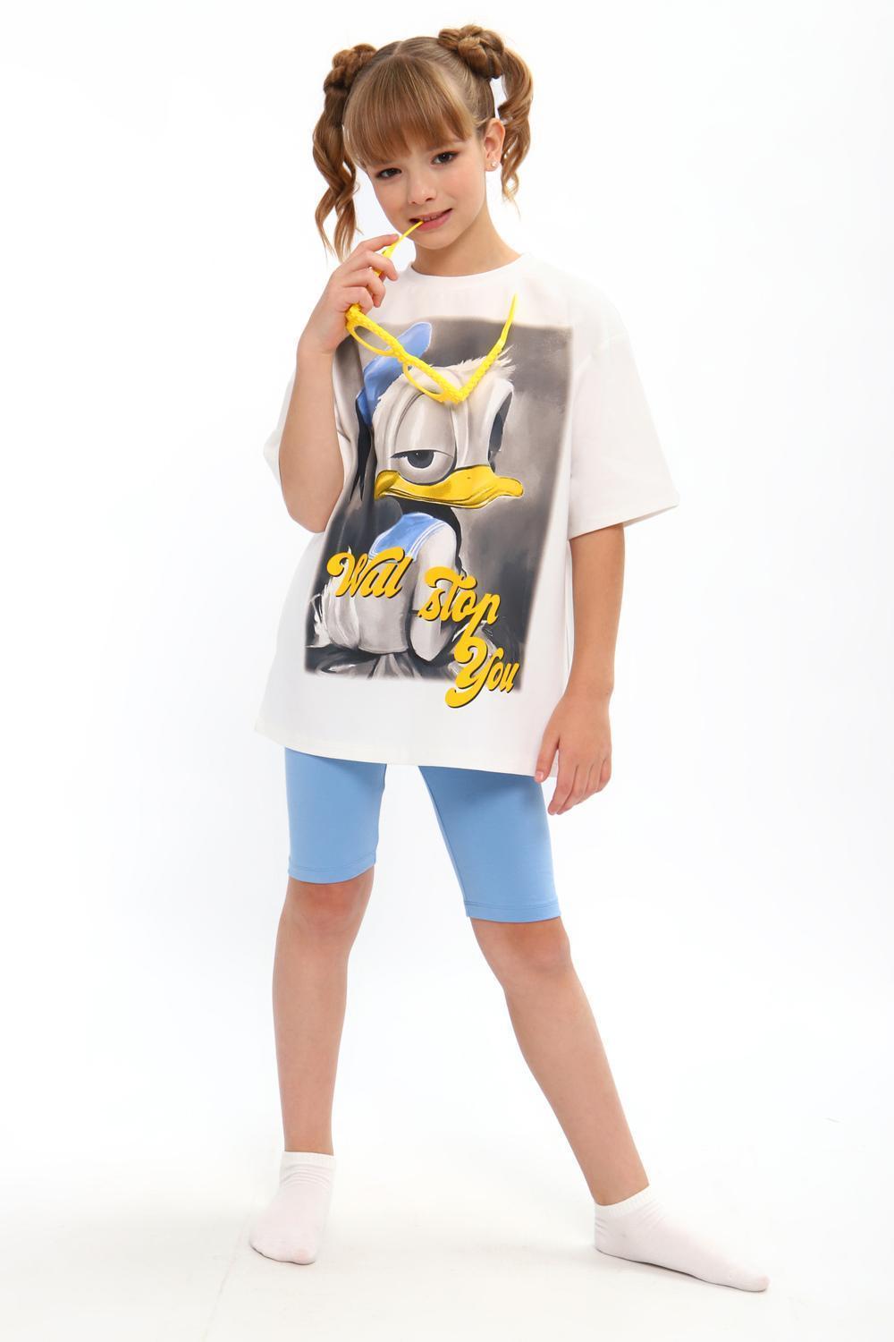 Домашний костюм для девочек подростков - это идеальный выбор для комфортного и стильного сна и отдыха дома и на улице. Набор из футболки с короткими рукавами и шорт велосипедок выполнен из мягкого, дышащего трикотажа из хлопка, который приятен к телу и не вызывает раздражений. Яркий принт с любимыми персонажами мультфильмов Диснея - радует глаз и поднимает настроение. Свободная футболка оверсайз с прямым покроем не сковывает движений. Детская пижама прекрасно подойдет для повседневного ношения ребенка, а также станет отличным подарком. Благодаря стильному дизайну и качественным материалам, этот домашний костюм станет любимой одеждой в дорогу в путешествие или лагерь