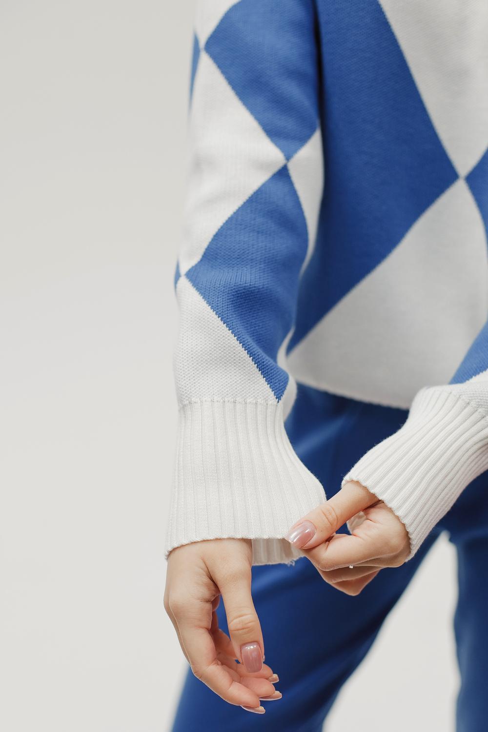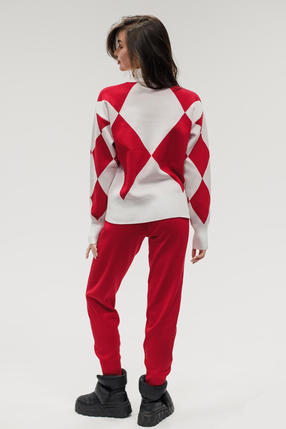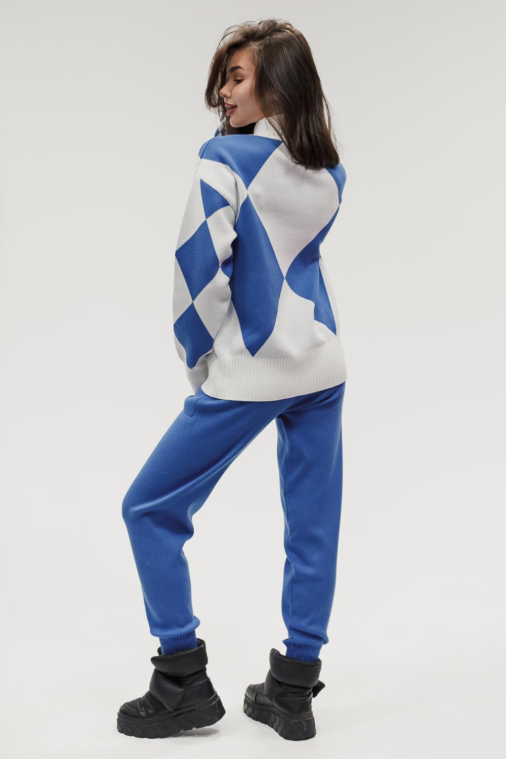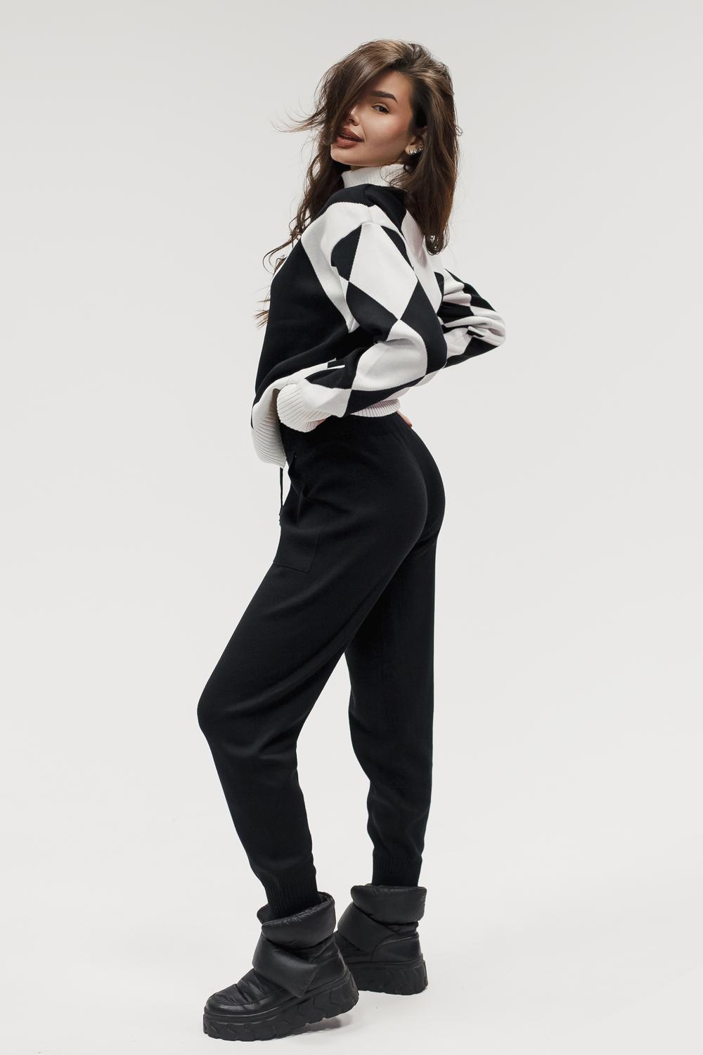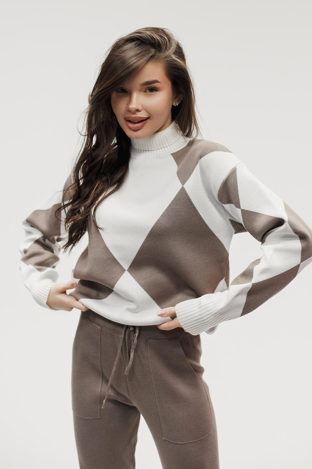 Этот тёплый женский вязаный костюм — гармоничный комплект из свитера и брюк, выполненный из плотной, мягкой и эластичной пряжи (состав: 30% хлопок, 40% вискоза, 30% полиэстер), который надёжно сохраняет тепло и при этом приятно прилегает к телу. Свитер свободногос аккуратной воротниковой стойкой средней высоты визуально стройнит и обеспечивает дополнительную защиту от холода, манжеты и нижняя кромка обработаны резинкой для лучшей посадки и сохранения формы. Плечи оформлены со скосом или лёгким «полупритёком» для комфортной посадки на фигуры разных типов; брюки средней посадки с эластичным поясом и внутренней мягкой тесьмой или шнурком обеспечивают индивидуальную регулировку, прямой или слегка зауженный книзу силуэт свободно сидит по бедру и книзу, благодаря эластичности материала изделие «тянется» и адаптируется под параметры от 40 до 46 размера и комфортно смотрится на росте до 160 см, при этом посадка и длина оптимизированы под невысокий рост — брюки не требуют сильной подшивки, а длина пуловера рассчитана так, чтобы сочетаться с верхней одеждой; в дизайне предусмотрены функциональные детали: скрытые боковые или накладные карманы в брюках, аккуратные декоративные швы или узорная вязка на передней части пуловера, что добавляет текстуре и визуального интереса, при этом декоративность не мешает повседневному использованию; палитра — нейтральные базовые оттенки (беж, серый, графит, тёмно-синий) и несколько насыщенных цветовых акцентов (бордо, изумруд, горчичный), которые легко сочетаются с верхней одеждой и аксессуарами; материал и плотная вязка делают костюм универсальным для осенне-зимнего периода и прохладной весны — он отлично подойдёт как для прогулок и поездок, так и для уютных домашних вечеров или неофициальных встреч; уход: рекомендована деликатная стирка руками или в машине на щадящем режиме при температуре не выше 30°C, сушить в расправленном виде на горизонтальной поверхности, не отбеливать, при необходимости возможна бережная химчистка; благодаря продуманной посадке и использованию качественной пряжи комплект сохраняет форму и внешний вид даже при регулярной носке, подчёркивает женственность без лишней вычурности и станет практичным элементом гардероба тех, кто ценит комфорт, тепло и стиль.