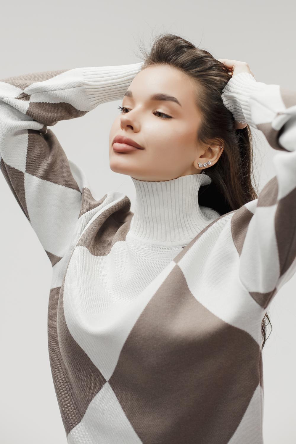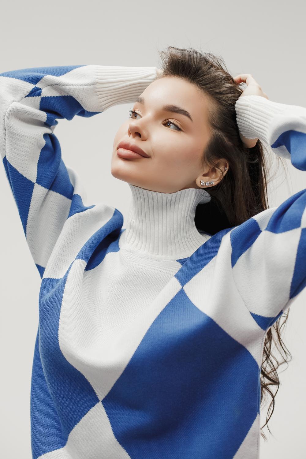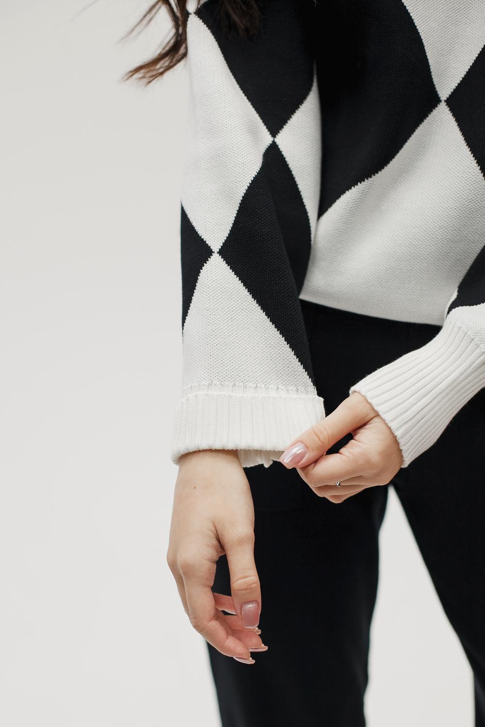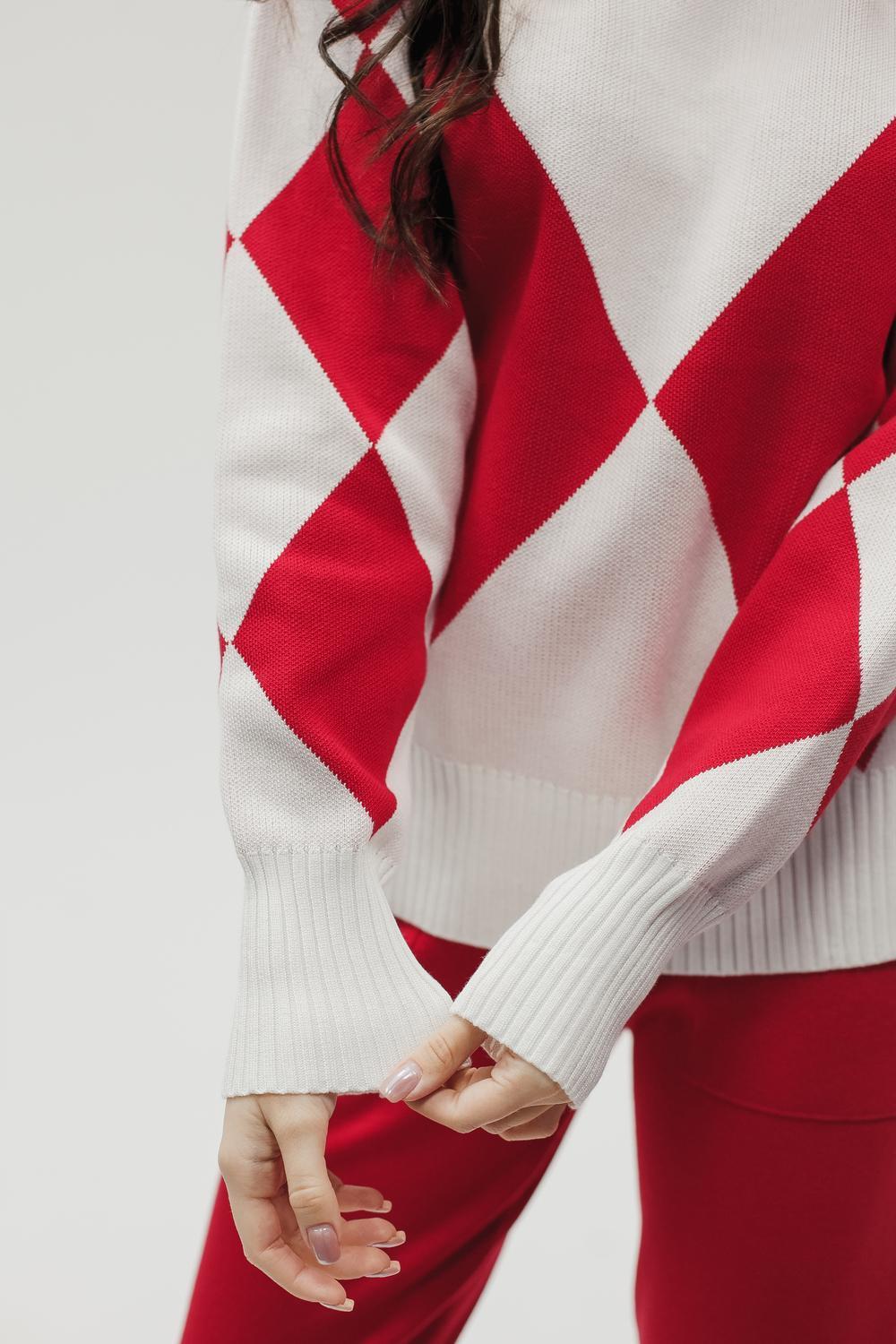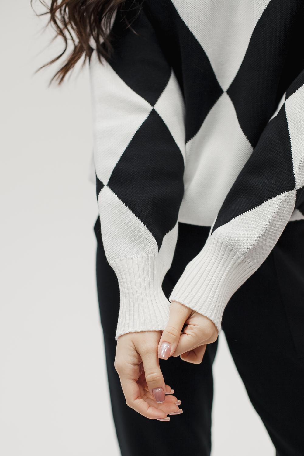 Этот тёплый женский вязаный костюм — гармоничный комплект из свитера и брюк, выполненный из плотной, мягкой и эластичной пряжи (состав: 30% хлопок, 40% вискоза, 30% полиэстер), который надёжно сохраняет тепло и при этом приятно прилегает к телу. Свитер свободногос аккуратной воротниковой стойкой средней высоты визуально стройнит и обеспечивает дополнительную защиту от холода, манжеты и нижняя кромка обработаны резинкой для лучшей посадки и сохранения формы. Плечи оформлены со скосом или лёгким «полупритёком» для комфортной посадки на фигуры разных типов; брюки средней посадки с эластичным поясом и внутренней мягкой тесьмой или шнурком обеспечивают индивидуальную регулировку, прямой или слегка зауженный книзу силуэт свободно сидит по бедру и книзу, благодаря эластичности материала изделие «тянется» и адаптируется под параметры от 40 до 46 размера и комфортно смотрится на росте до 160 см, при этом посадка и длина оптимизированы под невысокий рост — брюки не требуют сильной подшивки, а длина пуловера рассчитана так, чтобы сочетаться с верхней одеждой; в дизайне предусмотрены функциональные детали: скрытые боковые или накладные карманы в брюках, аккуратные декоративные швы или узорная вязка на передней части пуловера, что добавляет текстуре и визуального интереса, при этом декоративность не мешает повседневному использованию; палитра — нейтральные базовые оттенки (беж, серый, графит, тёмно-синий) и несколько насыщенных цветовых акцентов (бордо, изумруд, горчичный), которые легко сочетаются с верхней одеждой и аксессуарами; материал и плотная вязка делают костюм универсальным для осенне-зимнего периода и прохладной весны — он отлично подойдёт как для прогулок и поездок, так и для уютных домашних вечеров или неофициальных встреч; уход: рекомендована деликатная стирка руками или в машине на щадящем режиме при температуре не выше 30°C, сушить в расправленном виде на горизонтальной поверхности, не отбеливать, при необходимости возможна бережная химчистка; благодаря продуманной посадке и использованию качественной пряжи комплект сохраняет форму и внешний вид даже при регулярной носке, подчёркивает женственность без лишней вычурности и станет практичным элементом гардероба тех, кто ценит комфорт, тепло и стиль.