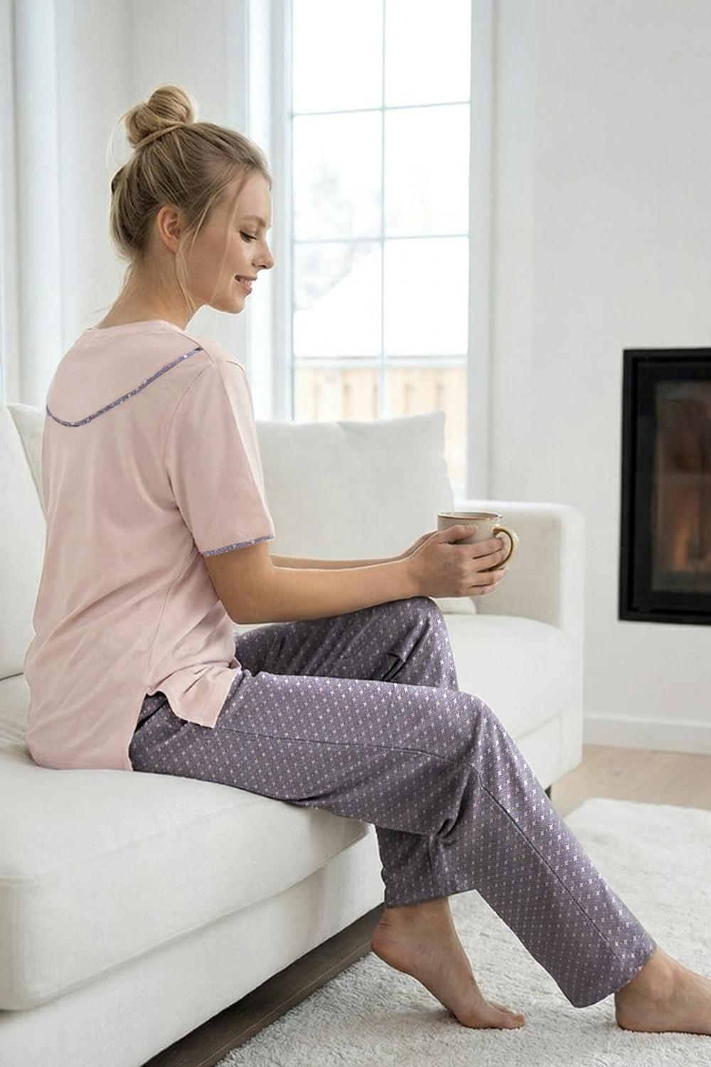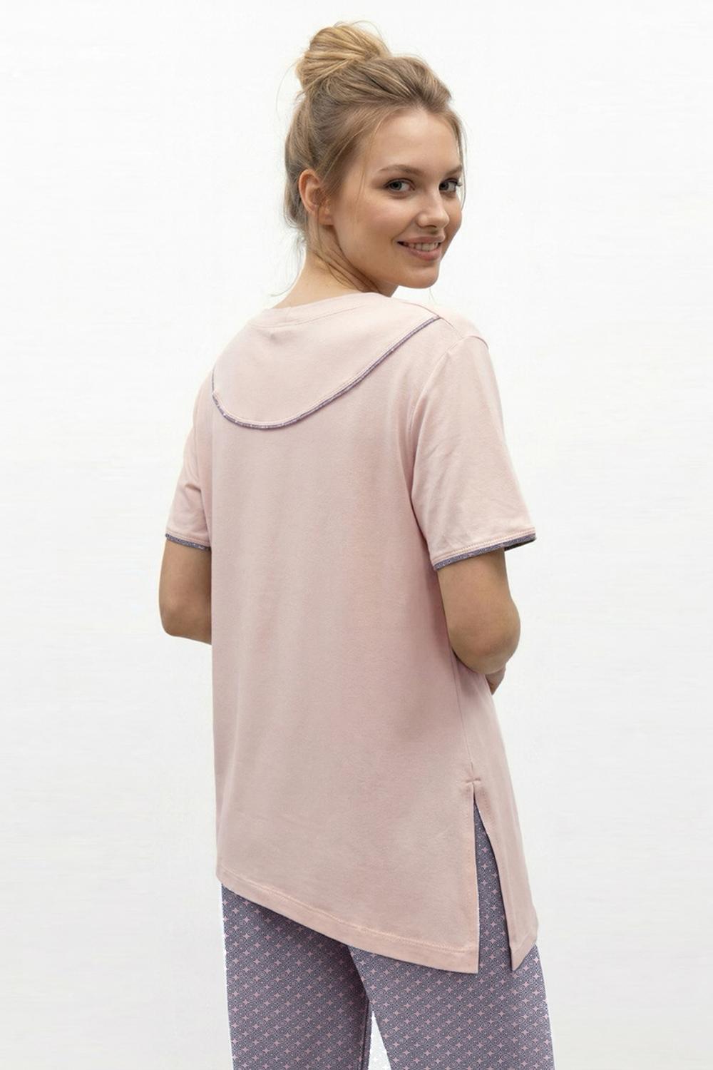 Удобные брюки: Брюки идеально дополняют футболку, создавая гармоничный и завершенный образ. Их свободный крой обеспечивает максимальную свободу движений, а мягкая резинка на поясе гарантирует идеальную посадку без сдавливания. Брюки прекрасно подходят как для отдыха, так и для выполнения домашних дел.