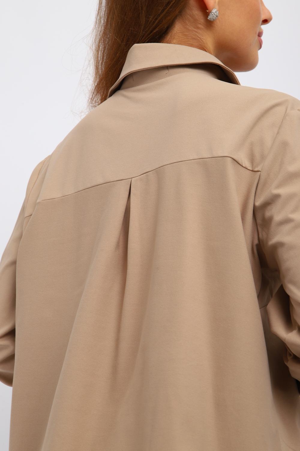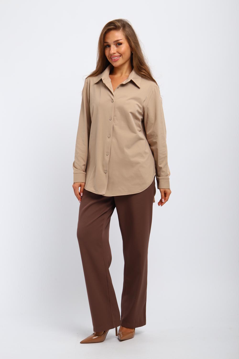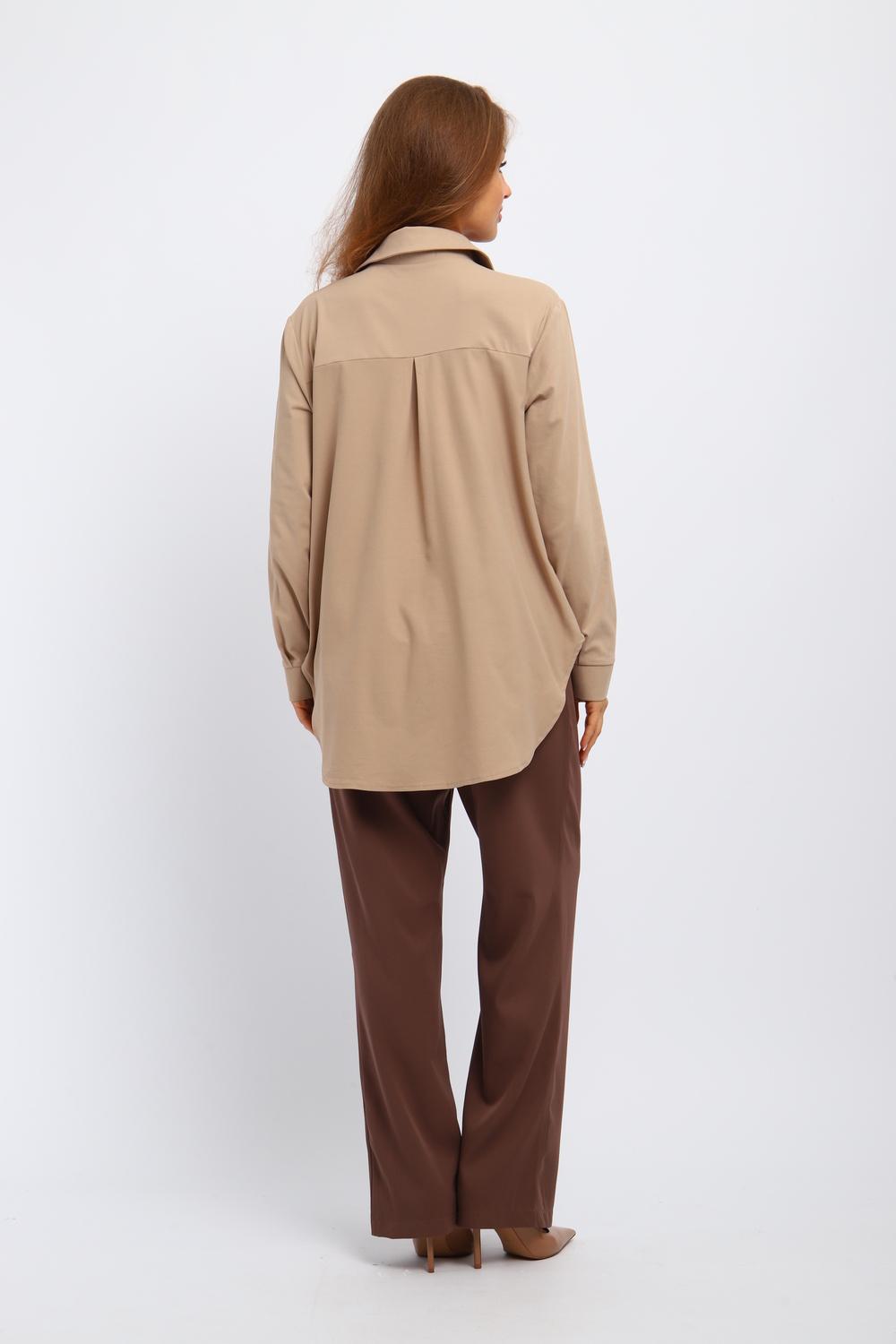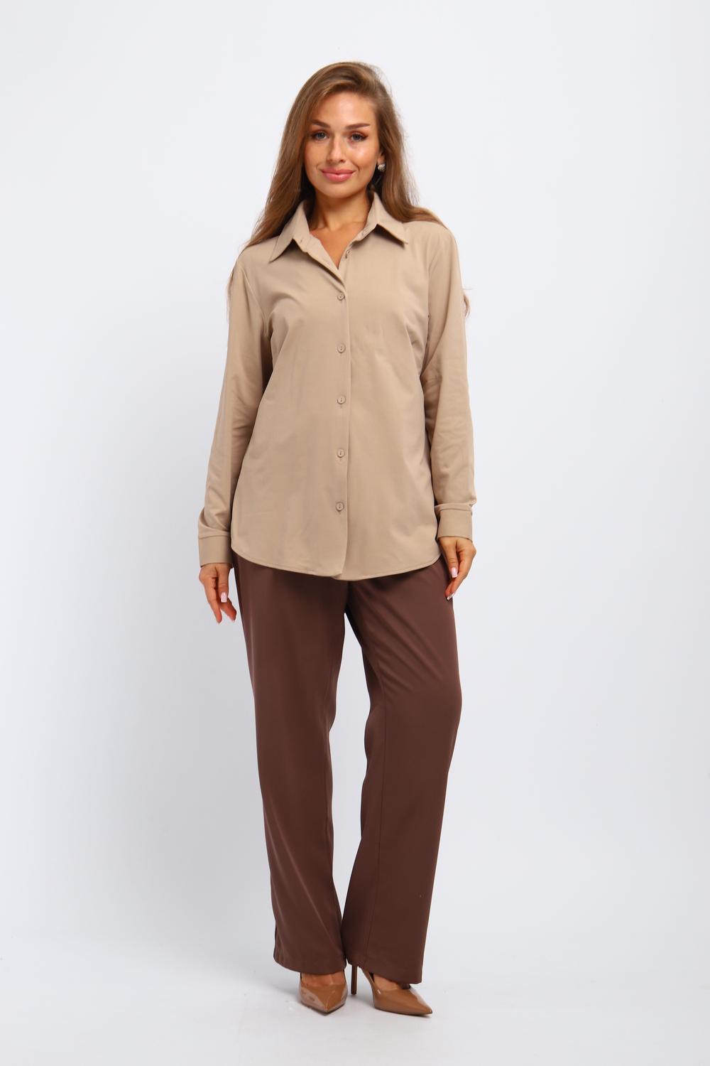 Брюки на резинке обеспечивают идеальную посадку и свободу движений, а классическая рубашка придает образу завершенность и изысканность. Этот женский брючный костюм подойдет как для деловых встреч, так и для повседневной носки.