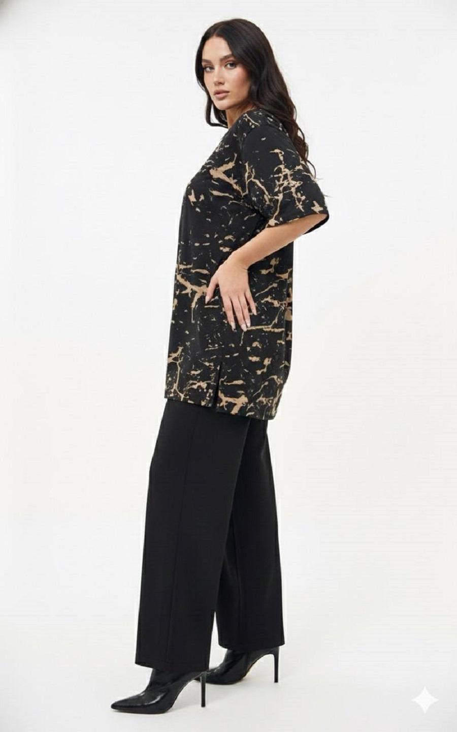 Мы позаботились о том, чтобы этот костюм стал идеальным дополнением к гардеробу каждой девушки, независимо от ее роста. Свободный крой и продуманные пропорции позволяют костюму прекрасно смотреться как на миниатюрных девушках, так и на высоких красавицах. Брюки легко адаптируются под разную длину ног, а футболка создает гармоничный образ, подчеркивая достоинства фигуры.