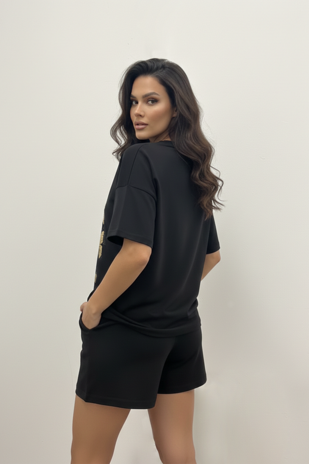 Удобный женский трикотажный костюм с шортами и футболкой свободного кроя отлично подойдет для прогулок, для активного отдыха, походов за покупками, да и просто для дома. Эта модель произведена из качественного хлопка. на футболку нанесен оригинальный принт.