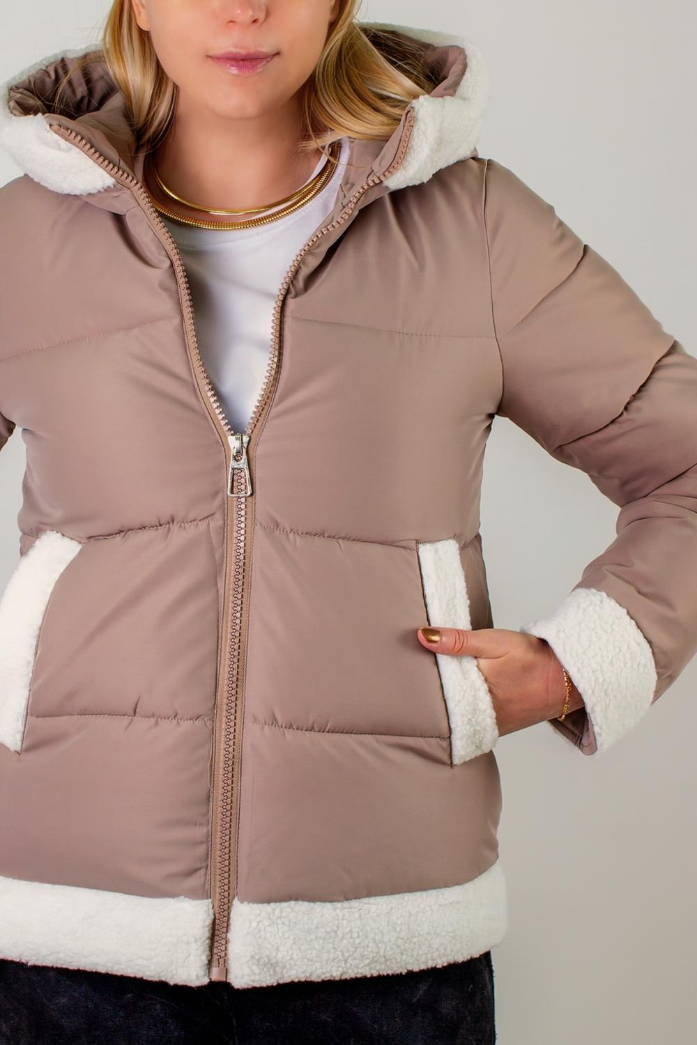 Удобный капюшон с высоким воротником надежно защищает от ветра, сохраняя тепло около шеи и головы. По окантовке капюшона мягкая пушистая отделка «белый барашек» придает образу легкую нотку роскоши и визуального объема. Тот же меховой контраст проходит внизу рукавов, а аккуратная отстрочка вдоль карманов и по низу изделия подчеркивает четкость линий и придает изделию законченный вид.