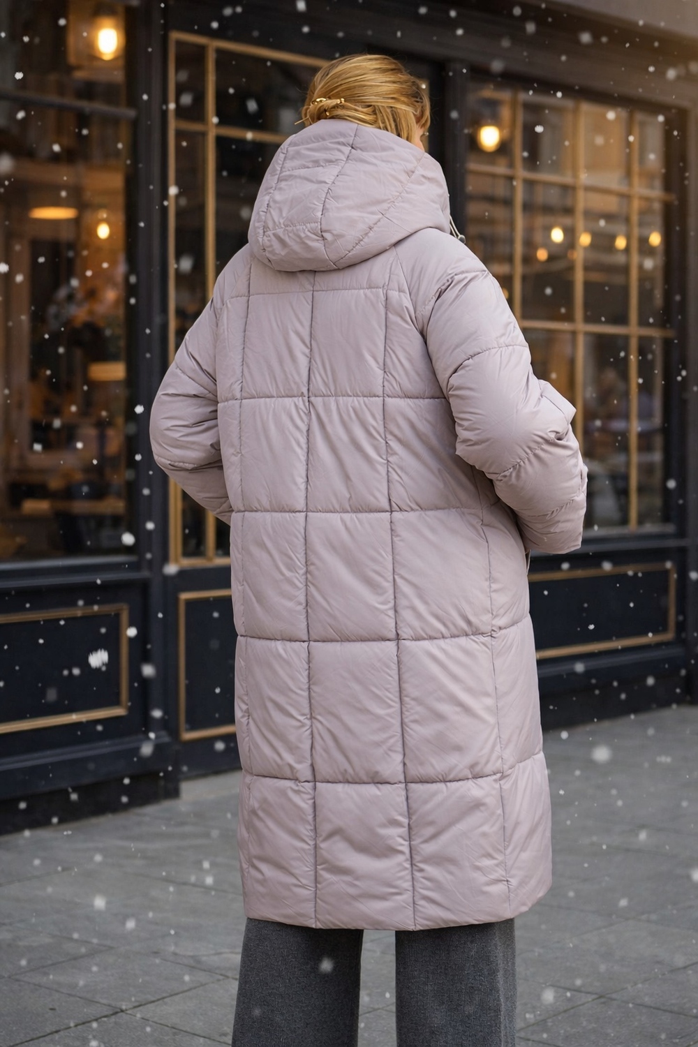 Важнейшая особенность — качественный утеплитель файбер. Он равномерно распределён благодаря простеганной крупными квадратами конструкции, что исключает скапливание наполнителя в отдельных местах и сохраняет постоянное тепло по всей поверхности. Такая строчка гарантирует комфорт и защиту от холода без потери легкости и объема. Внутренний чёрный фирменный подклад износостоек и выглядит стильно.