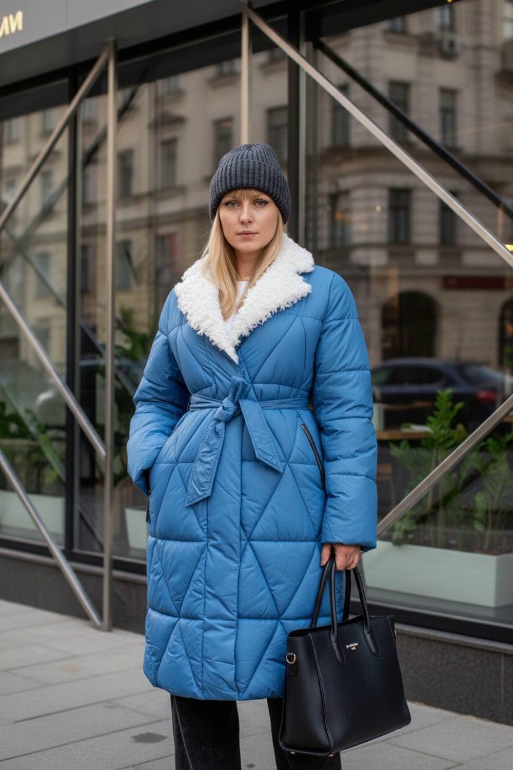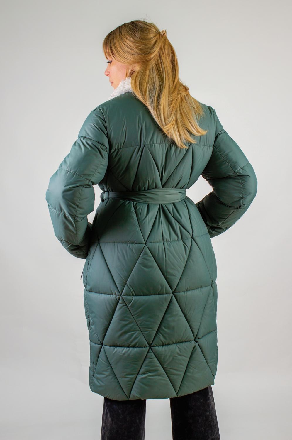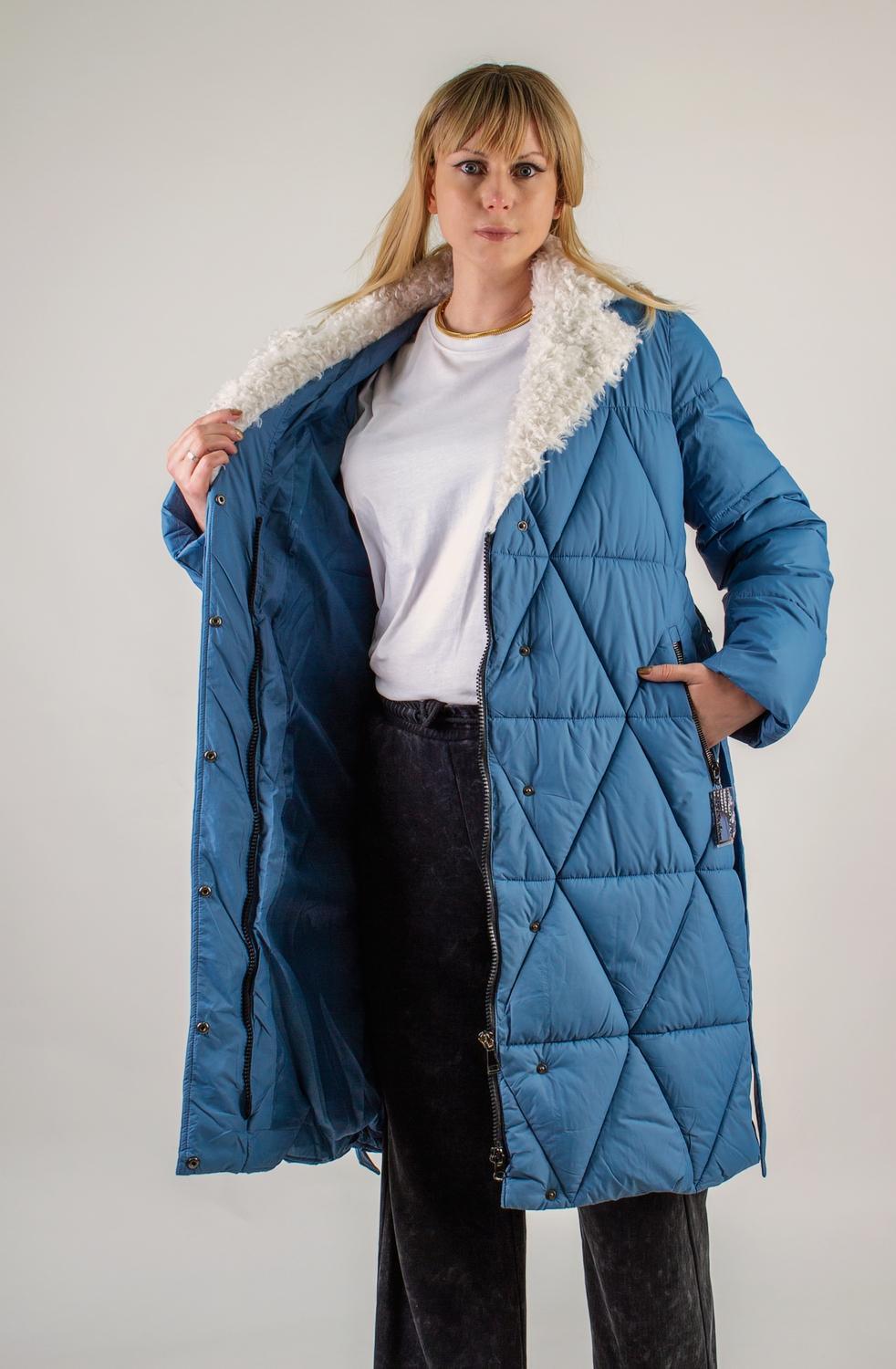 Стеганое пальто с меховой отделкой арт. 2818, демисезон., евро-зима - сочетает в себе изысканный дизайн и комфорт: благодаря удлиненному силуэту она идеально подходит для стильных образов в холодный сезон. Воротник отложенного типа с пушистым мехом «барашек» выполнен из качественного искусственного материала, он нежно прилегает к шее и не вызывает аллергии, обеспечивая дополнительное тепло и уют. Модель оснащена надежной двухзамковой молнией, закрытой декоративной планкой на кнопках, что позволяет регулировать степень утепления и создает аккуратный, завершенный вид. Стеганая ромбовидная прострочка отвечает не только за эстетику, но и за равномерное распределение утеплителя, благодаря чему сохраняется оптимальная температура и отсутствуют «холодные» зоны.