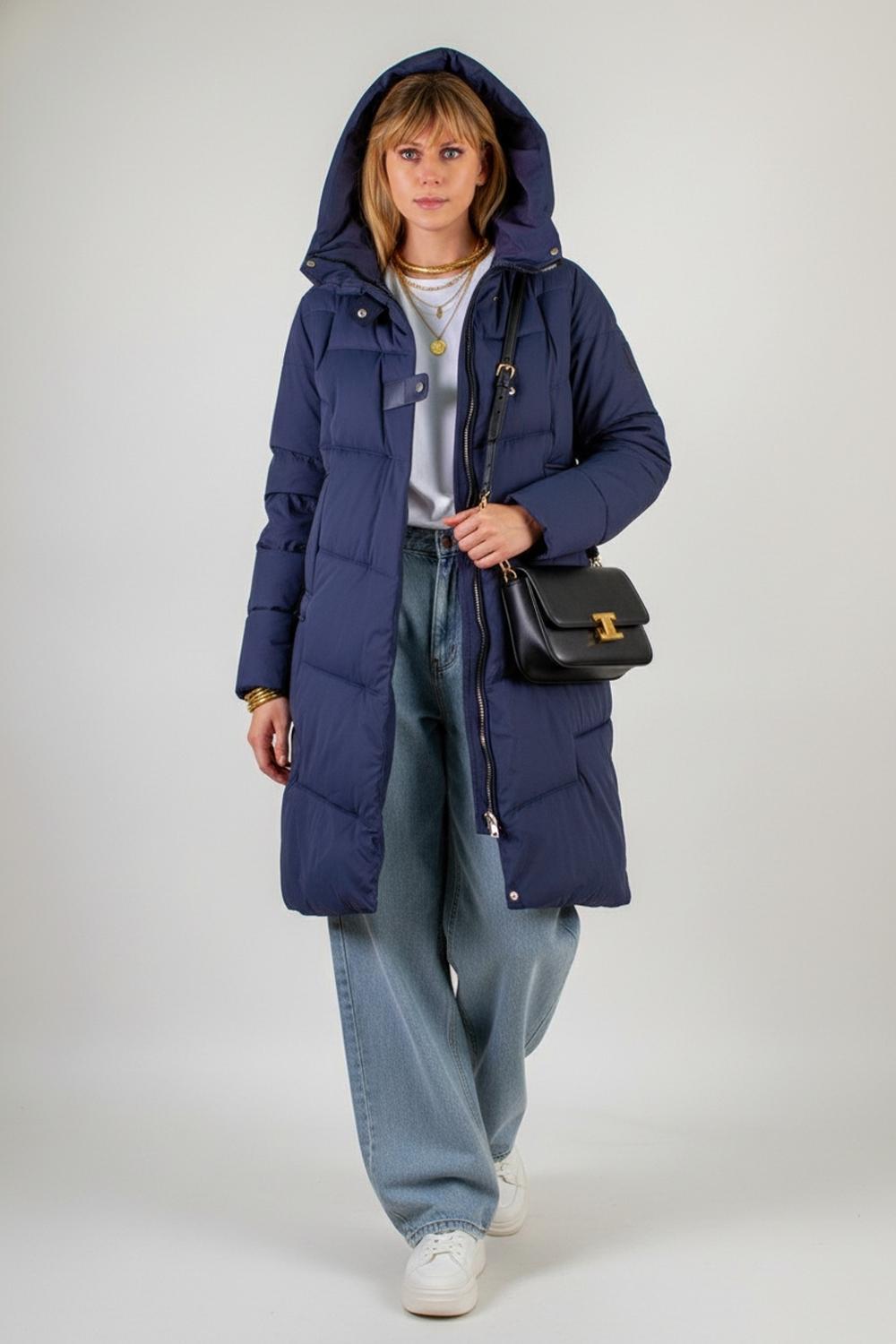 Стильная зимняя куртка арт. 28111 — идеальный выбор для тех, кто ценит современный дизайн, комфорт и качество в холодное время года. Эта куртка выполнена из плотной матовой ткани, припылённого синего цвета в оттенке индиго — цвета, который выглядит богато и стильно, легко впишется в любой городской гардероб.