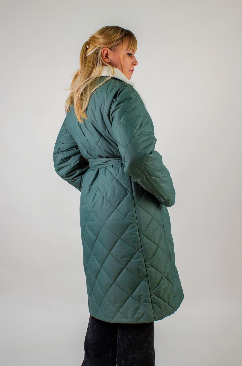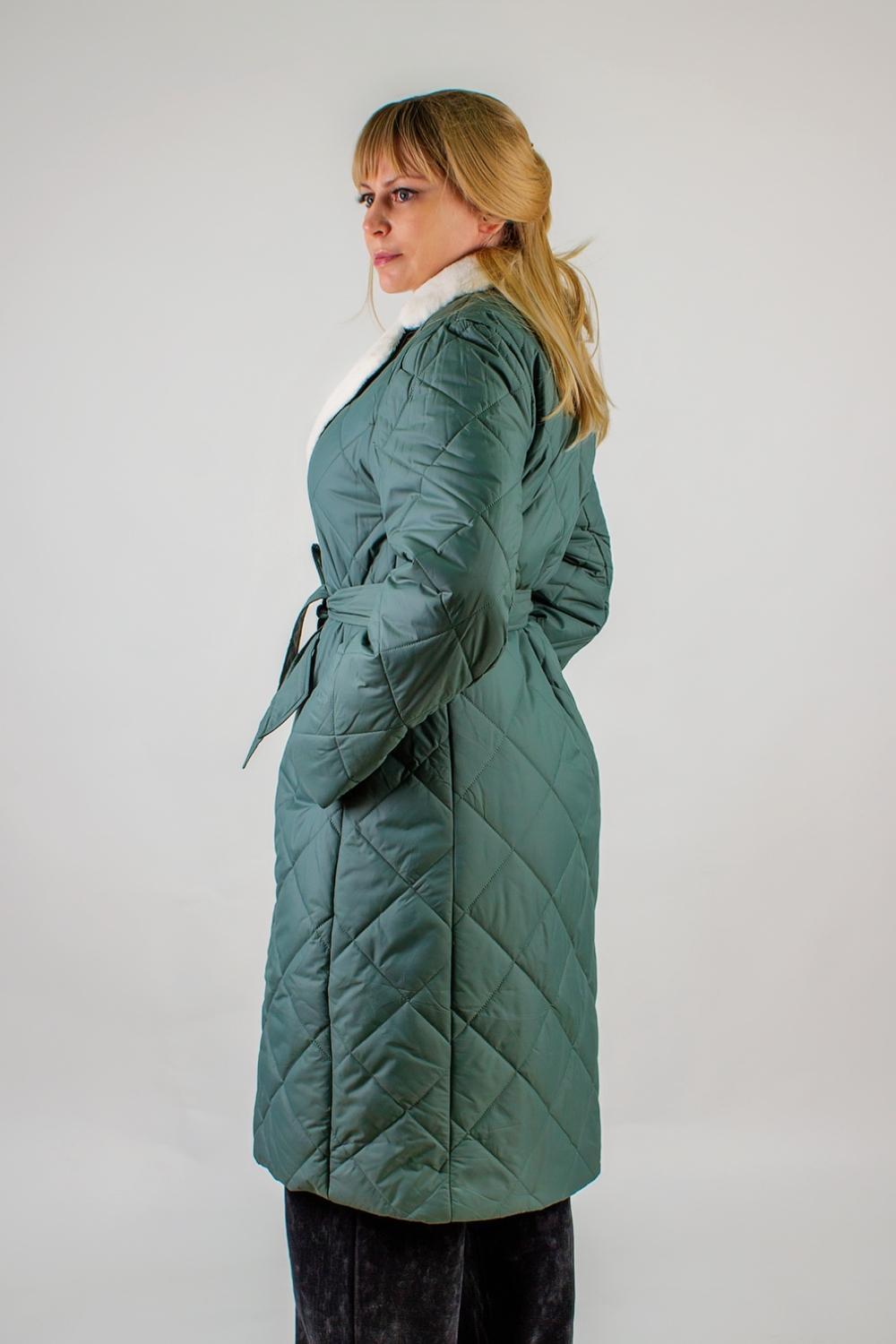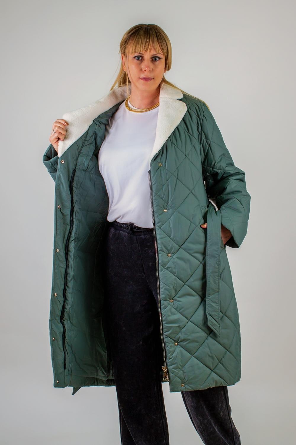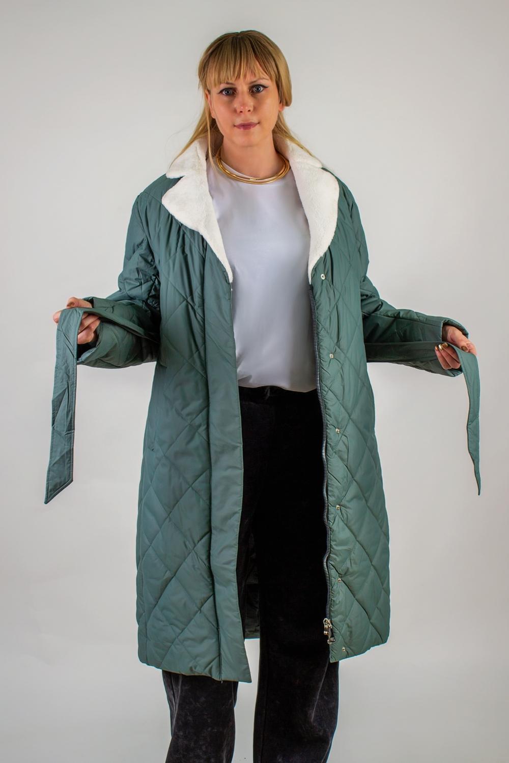 • Внутренний карман на молнии для телефона, кошелька и документов.• Эластичные трикотажные манжеты на рукавах, не пропускающие холодный воздух. • Съёмный пояс из основной ткани, регулирующий посадку по фигуре и подчёркивающий талию. Стильный бирюзовый цвет делает куртку свежей и современной: он гармонично сочетается как с нейтральными, так и с яркими оттенками аксессуаров. Такая куртка-пальто станет идеальным решением для прогулок по зимнему городу, поездок и деловых встреч.