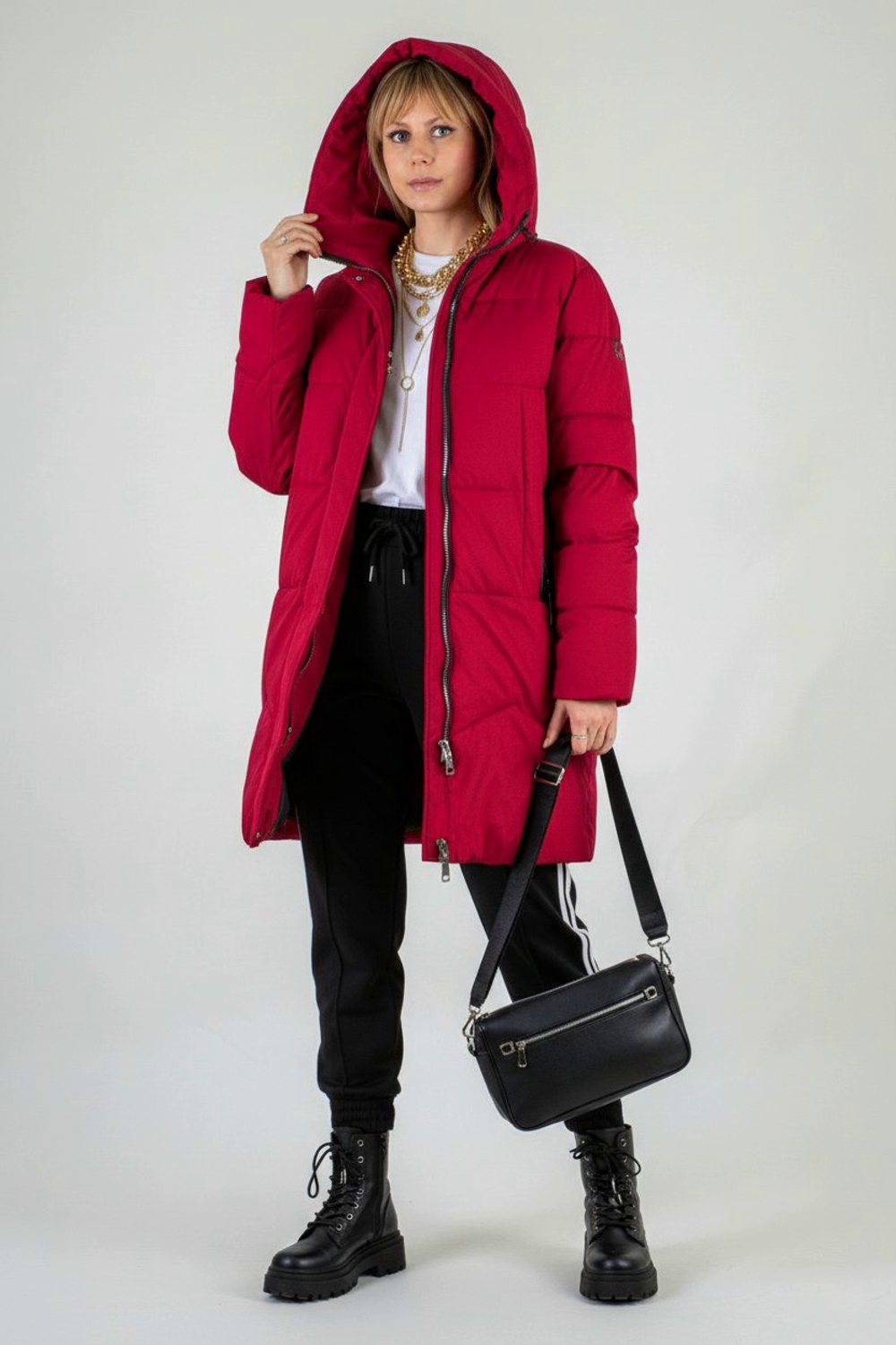 Модель оснащена двусторонней молнией и дополнительной утеплённой планкой на кнопках, что позволяет быстро регулировать уровень теплоизоляции — удобно при посадке в автомобиль или длительных прогулках по городу. Глубокий капюшон с фиксаторами и высокий воротник-стойка эффективно защищают от снега и сильного ветра, сохраняя комфорт даже в самую лютую стужу.