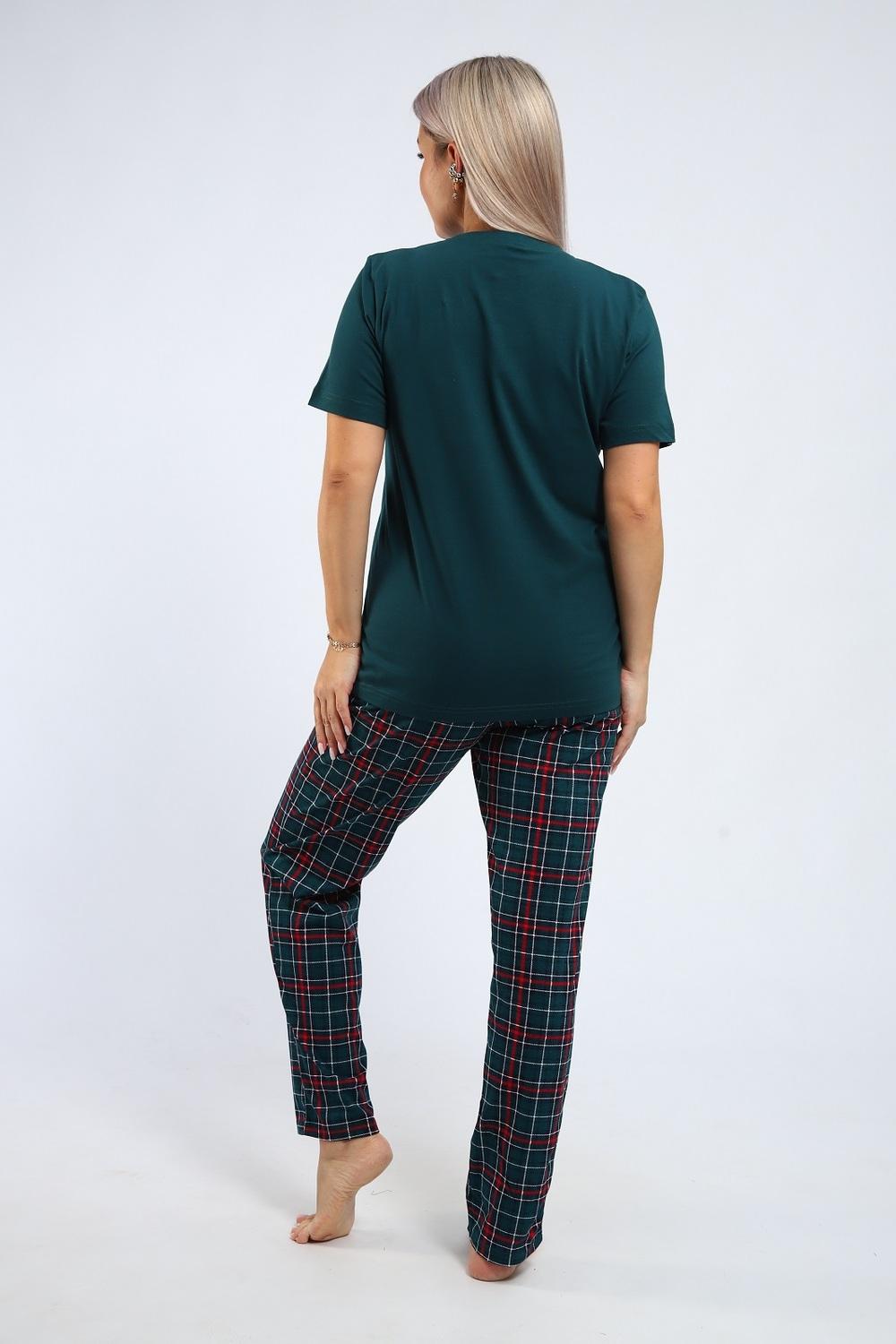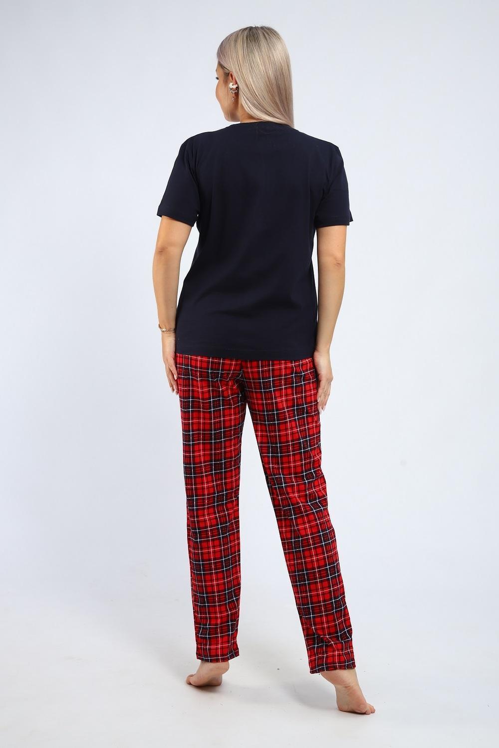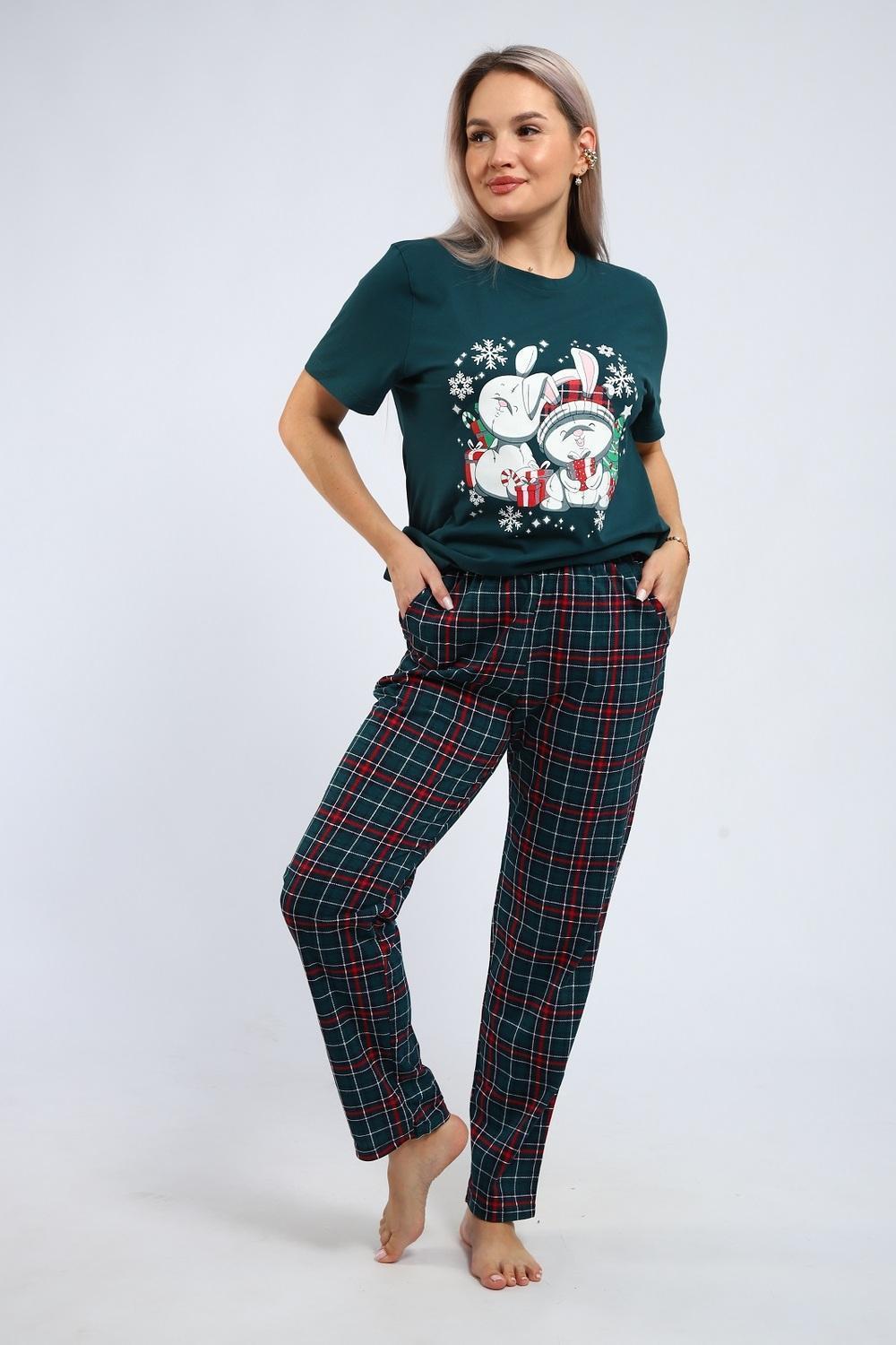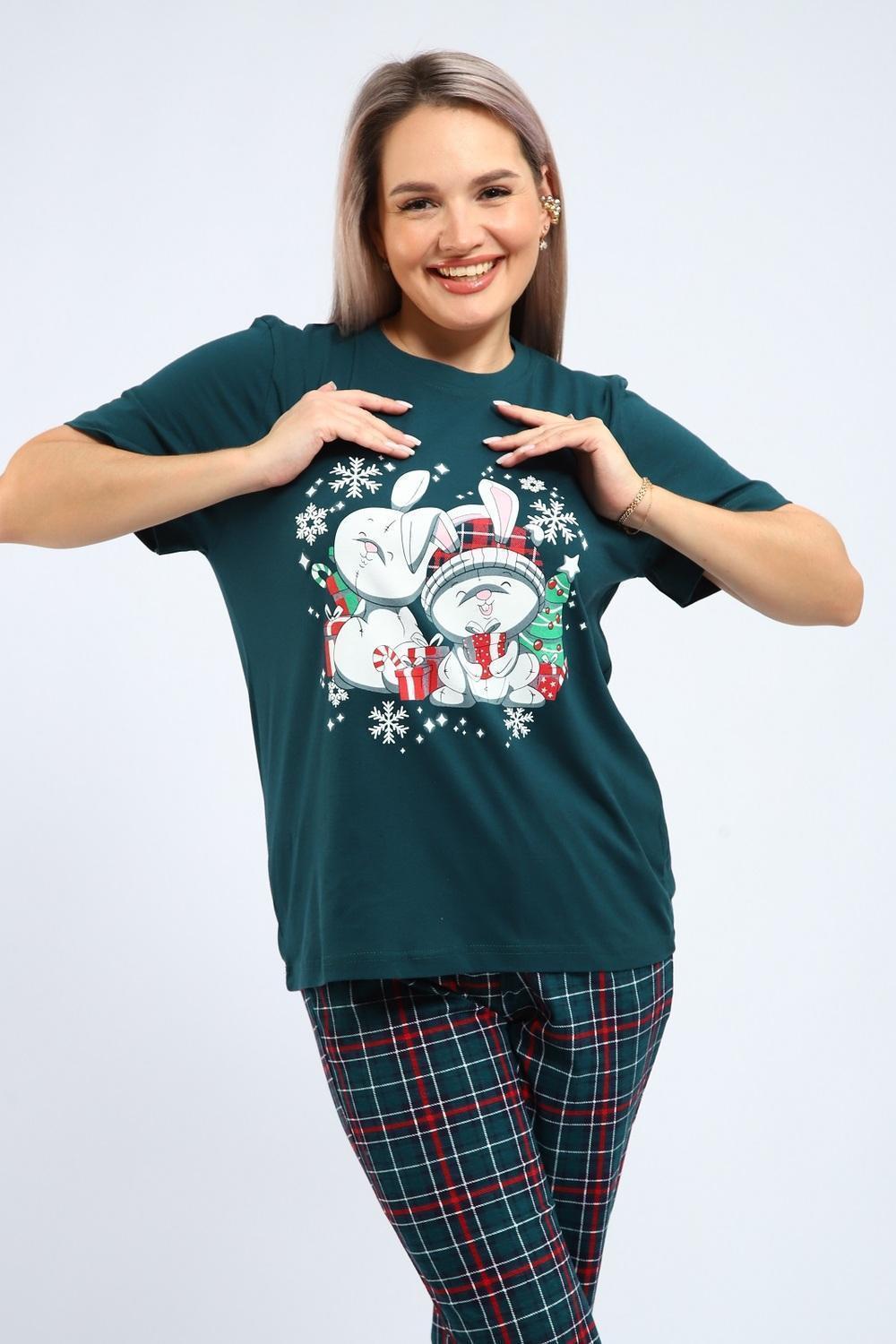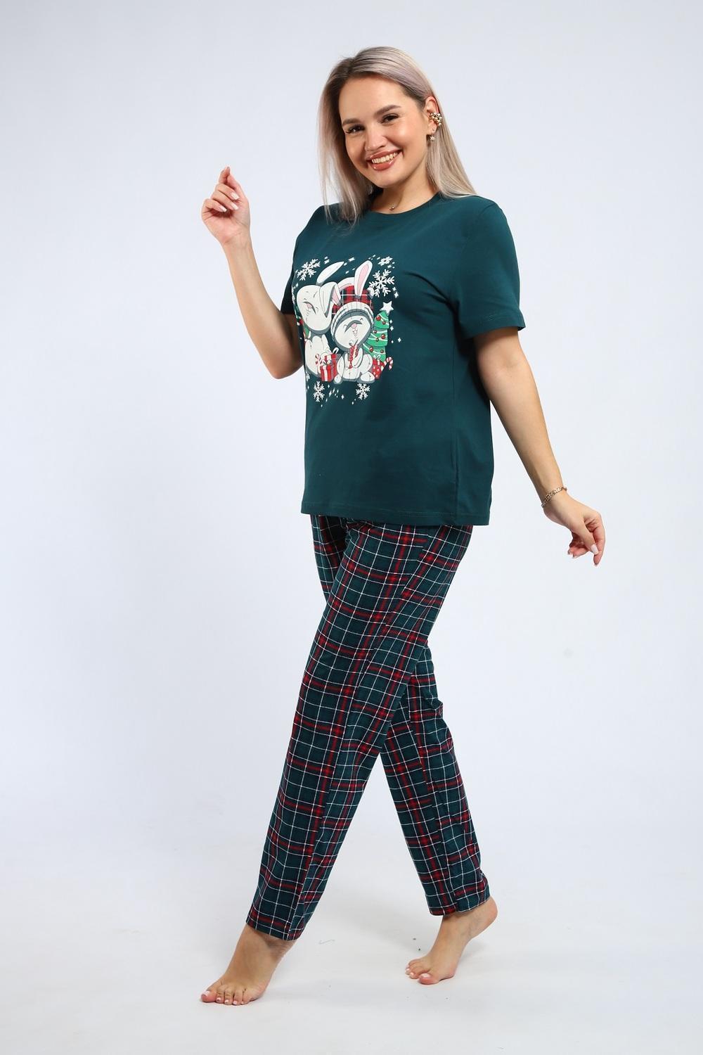 Уютная комфортная пижама из футболки с милым принтом "Зайки" и брюками в клетку с двумя карманами.