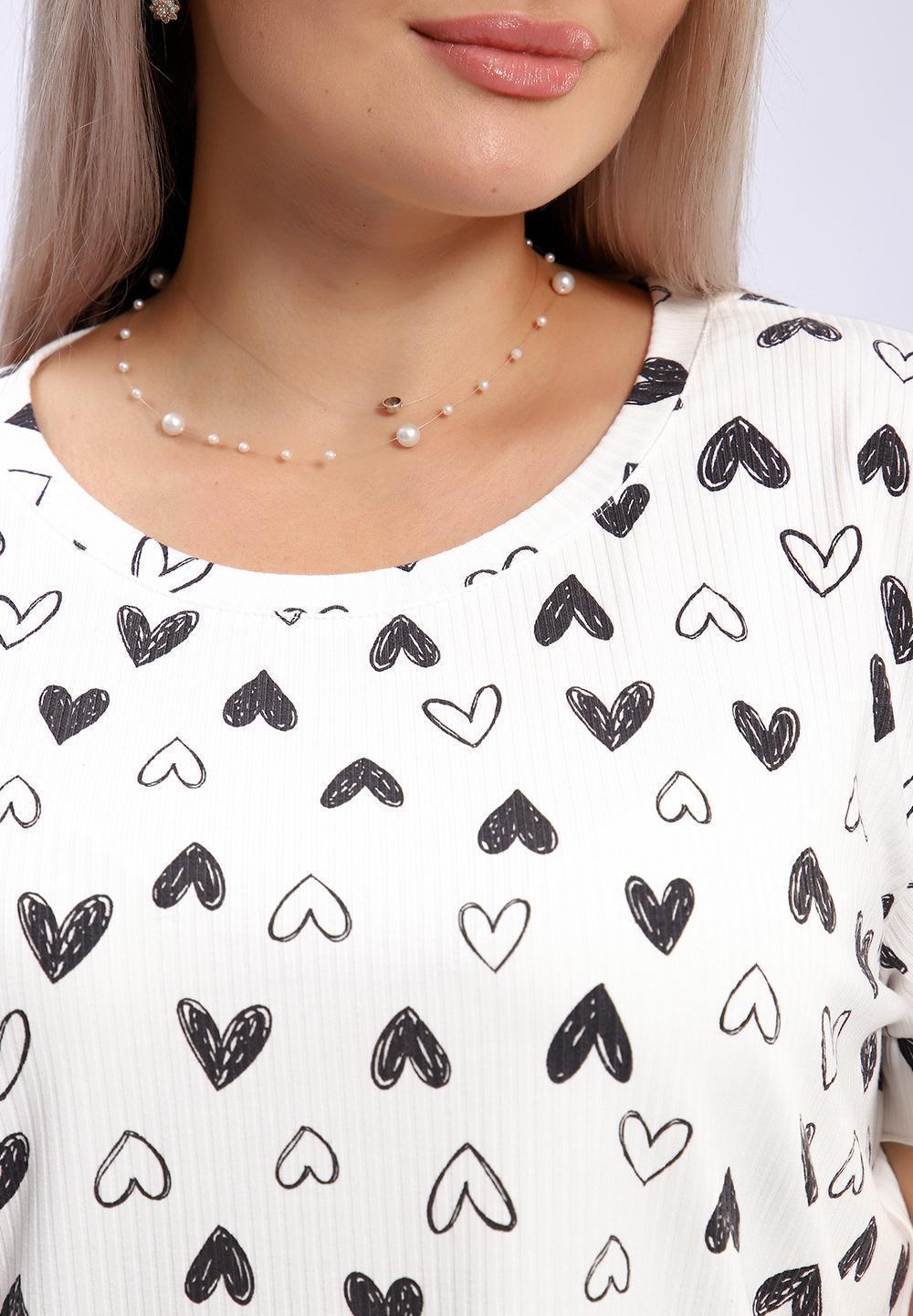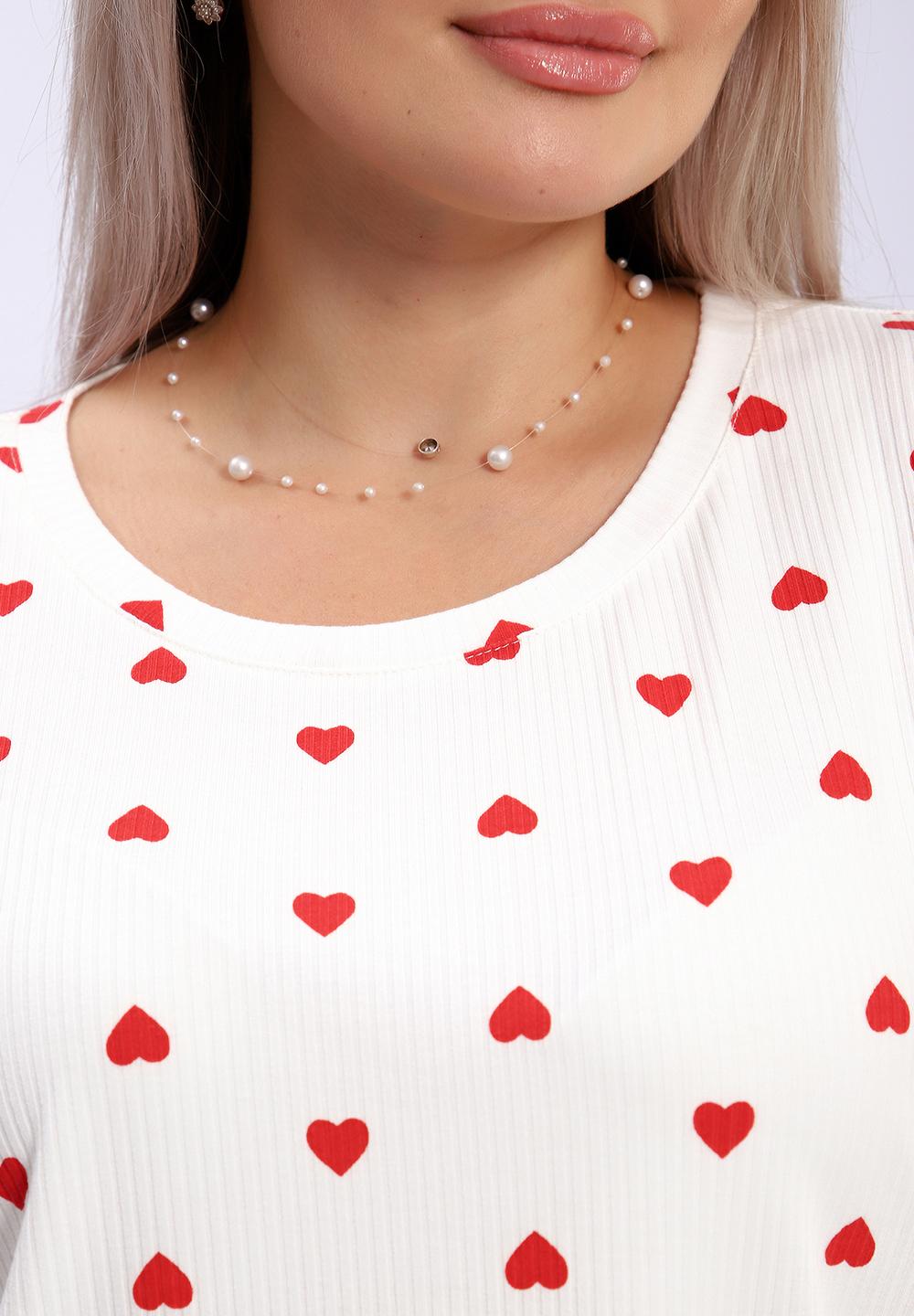 Эта уютная пижама состоит из мягкой футболки и шортов, выполненных из необычного материала, напоминающего лапшу. На принте изображены яркие красные и черные сердечки, создающие игривый и романтичный образ. Дополняет дизайн коричневый леопардовый узор, придающий комплекту стильный и дерзкий вид. Идеальный выбор для комфортных ночных и домашних образов, сочетая оригинальность и уют.