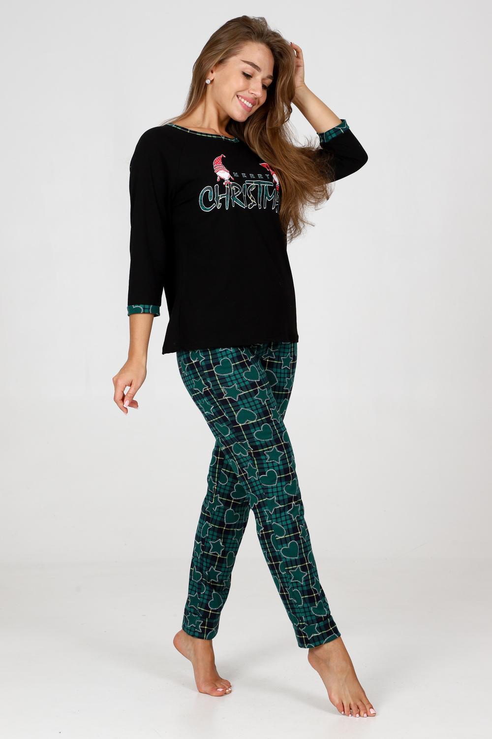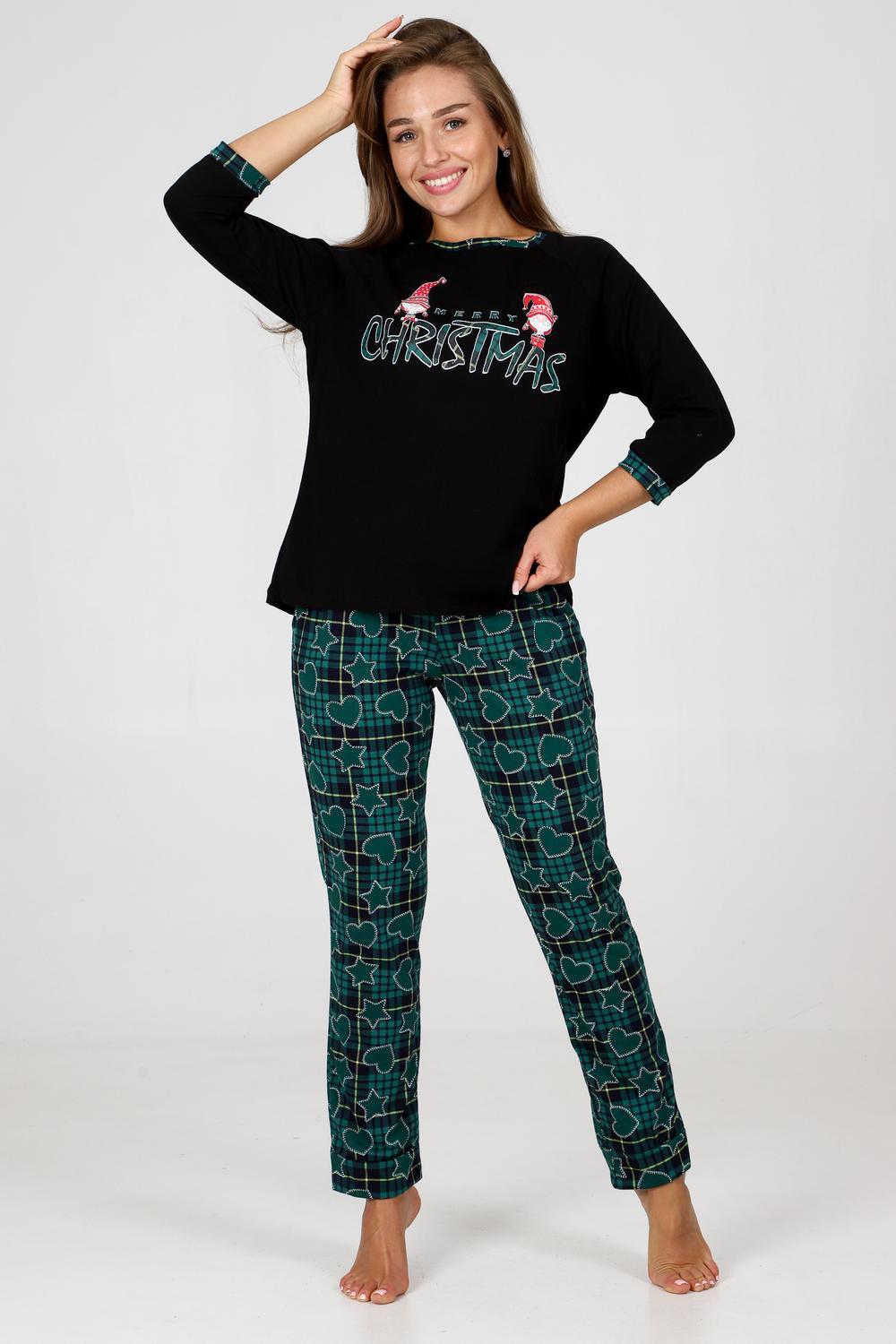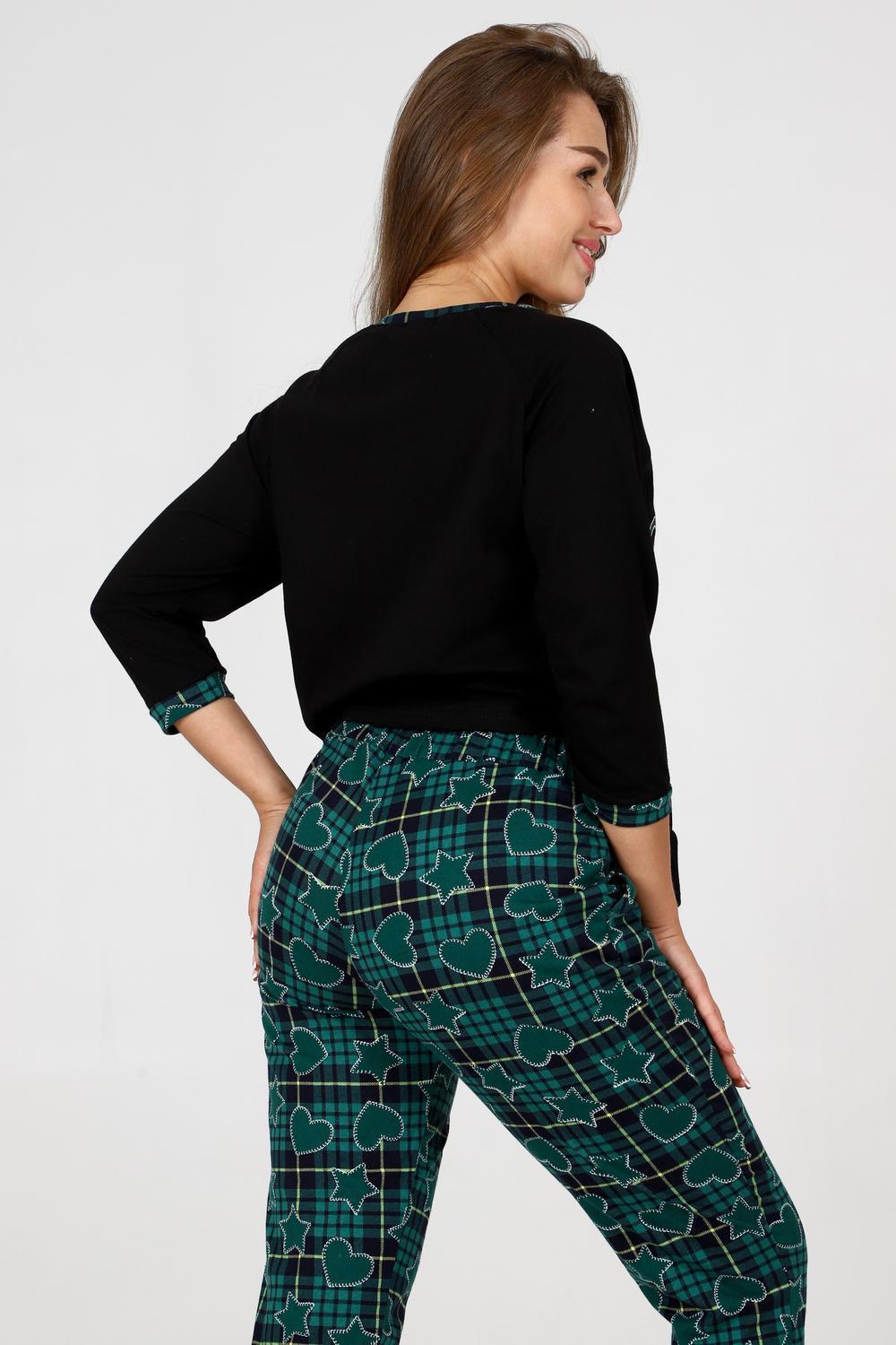 Пижама женская удобная и уютная вещь на каждый день. Джемпер с отделкой обтачки и манжеты контрастной тканью, стильная печать на груди, брюки зауженного кроя с карманами, манжеты внизу брюк.
