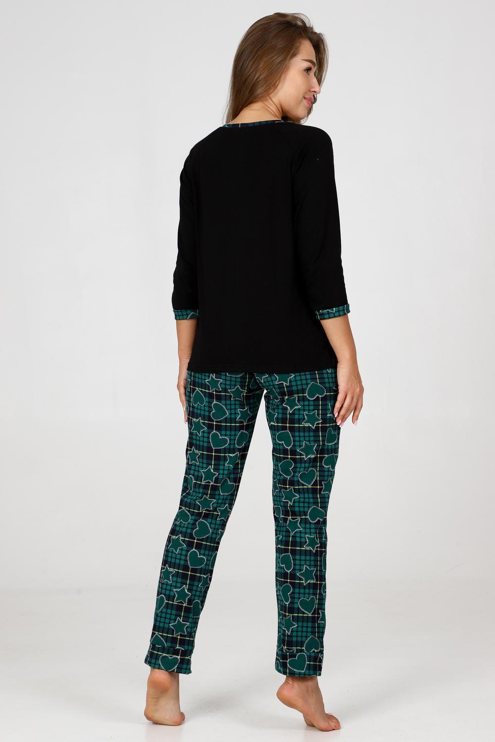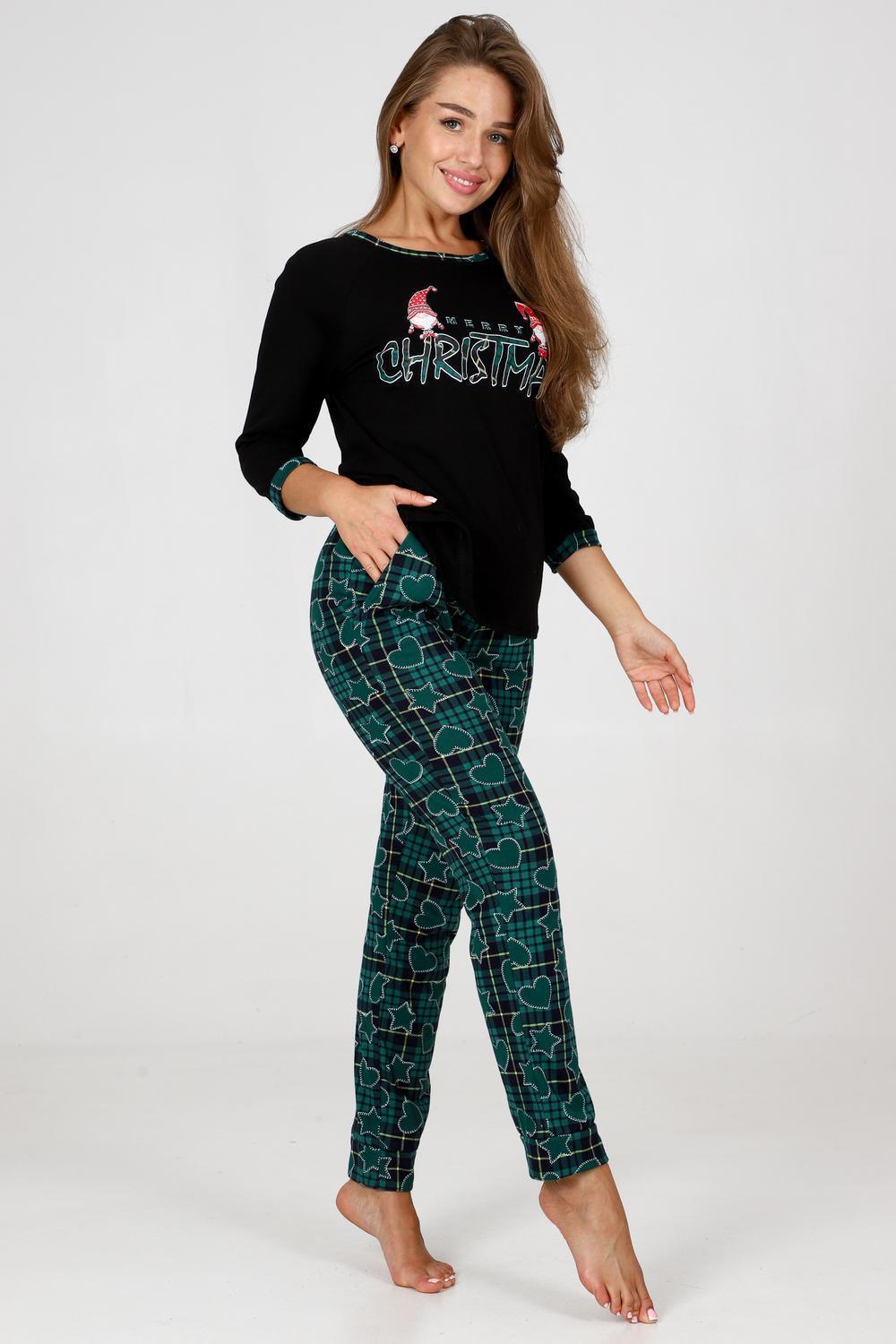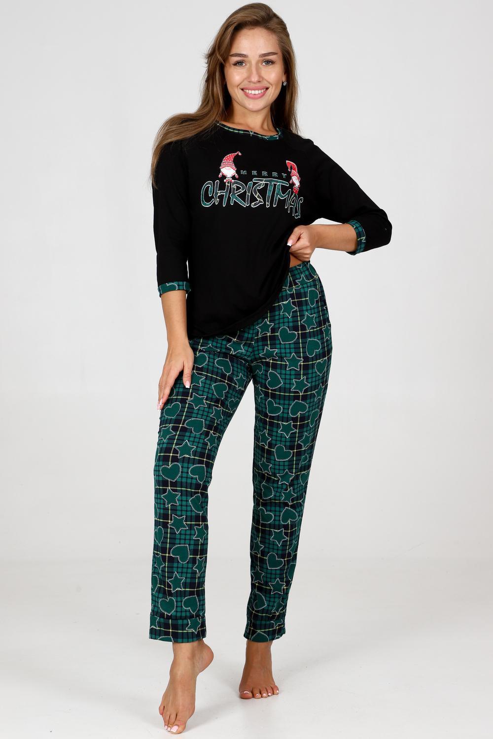Пижама женская удобная и уютная вещь на каждый день. Джемпер с отделкой обтачки и манжеты контрастной тканью, стильная печать на груди, брюки зауженного кроя с карманами, манжеты внизу брюк.