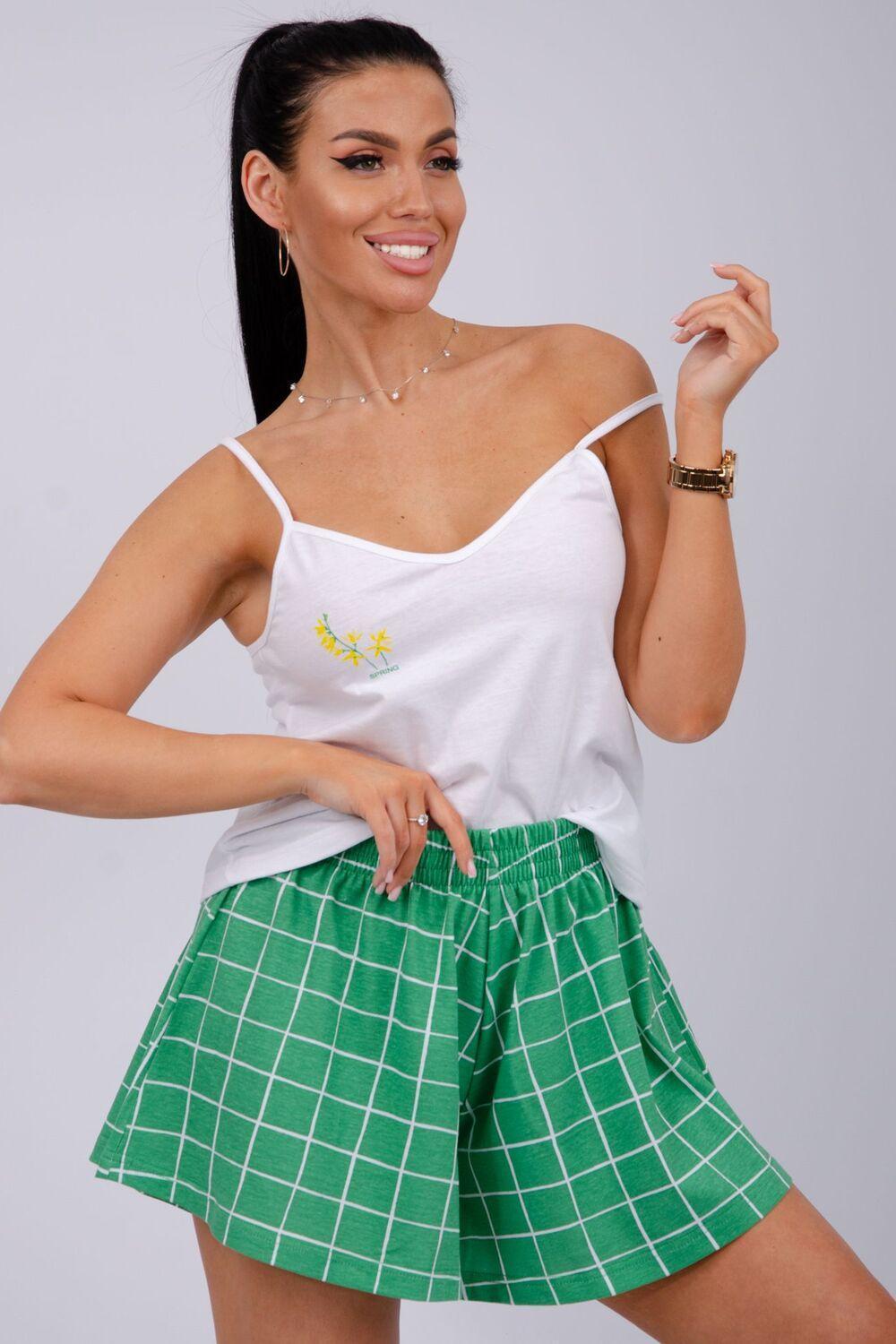 Эта женская пижама станет идеальным выбором для комфортного отдыха дома. Она сшита из мягкого, приятного на ощупь материала. Каждый элемент продуман для максимального удобства. Топ имеет аккуратный вырез, а шорты обеспечивают свободу движения.