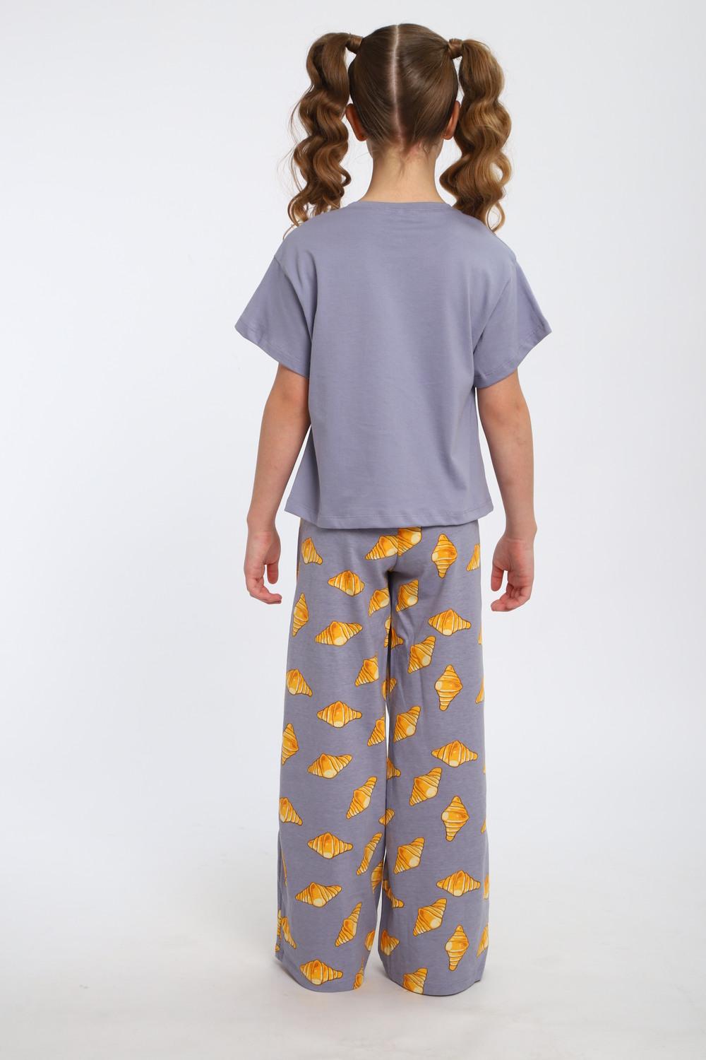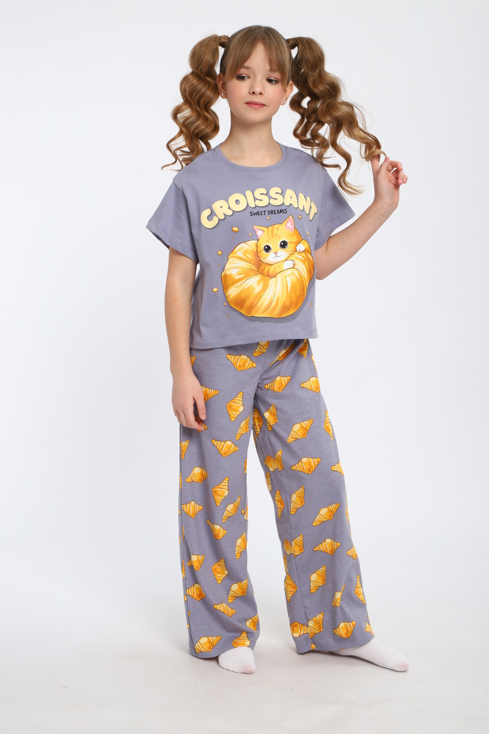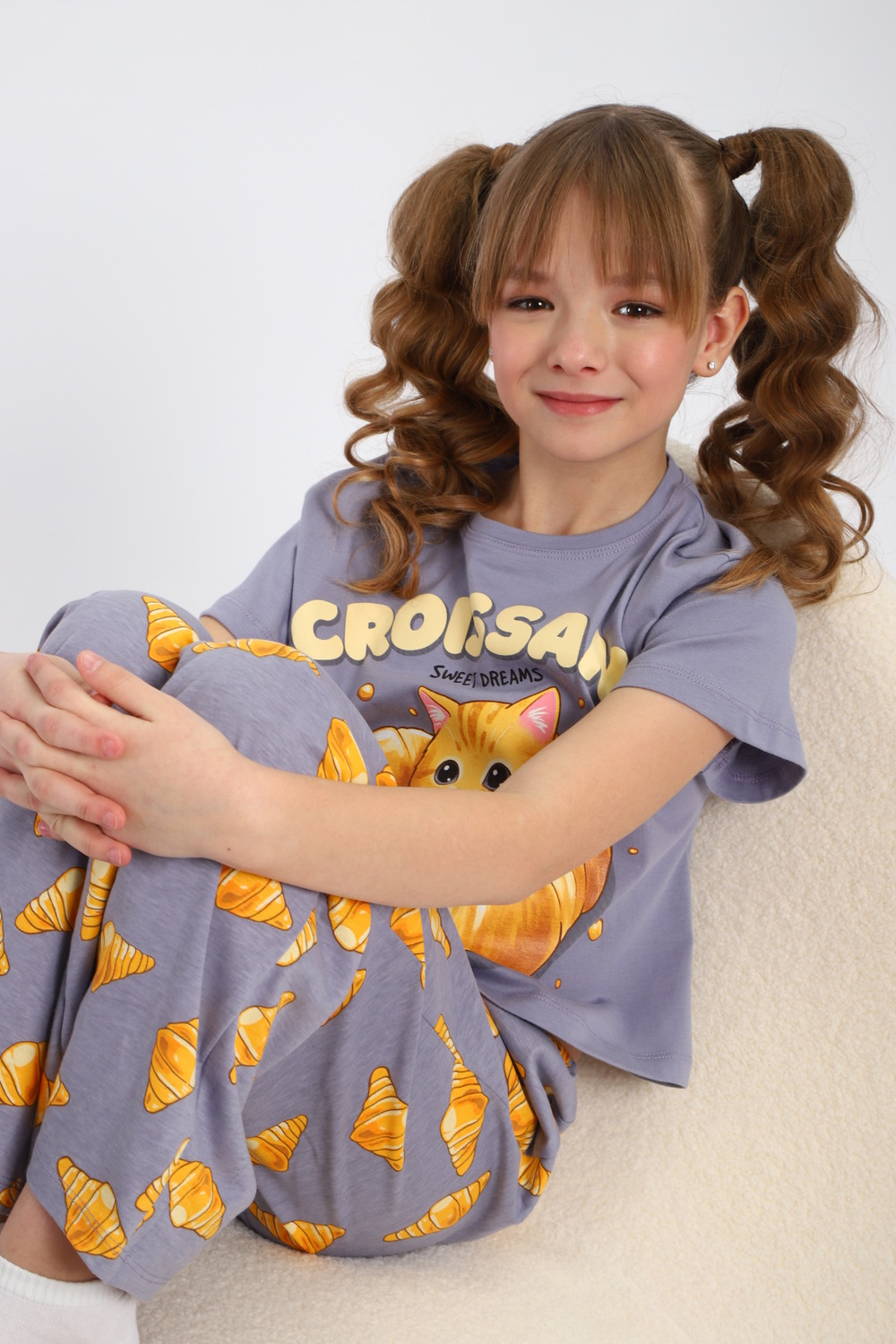 Комфортная пижама для девочки с оригинальным принтом. Пижама детская состоит из футболки забавным принтом и прямых брюк. Дизайн ткани позволяет использовать пижаму не только для сна, но и как костюм для дома. Модель пижамы не сковывает движения ребенка во время сна. Покрой футболки свободный, брюки классические без карманов. Пижама выполнена из 100% гипоаллергенного хлопка, что позволяет коже ребенка дышать во время сна.