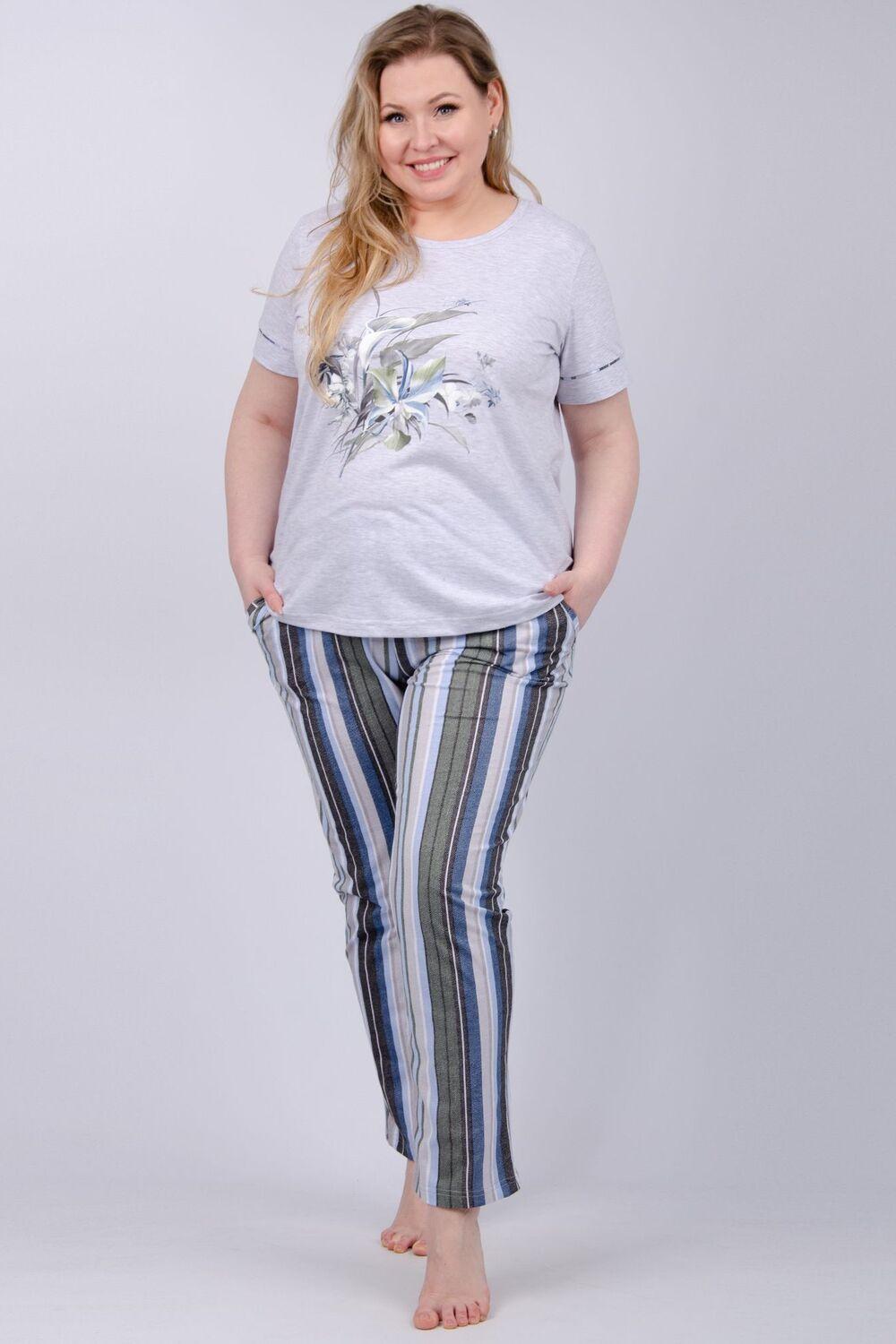 Пижама женская со штанами изготовлена из мягкой ткани (100 % хлопка), которая обладает дышащими и влаговпитывающими свойствами, идеально подходит для сна, обеспечивает максимальную практичность и воздухопроницаемость, облегчая сон даже в самые жаркие и холодные ночи. Женский домашний костюм состоит из стильной тонкой ночной футболки с коротким рукавом и легких брюк, которые создают комфортный домашний уют дома. Милая женская пижамка украшена принтом. Пижама женская яркая и в тоже время нежная, идеальна для беременных, будущих мам или в роддом, ведь в этой пижаме для беременных удобно весь день. Носить можно в любое время года: осенью или даже зимой под согревающим одеялом.