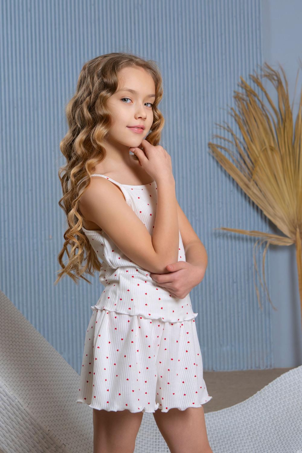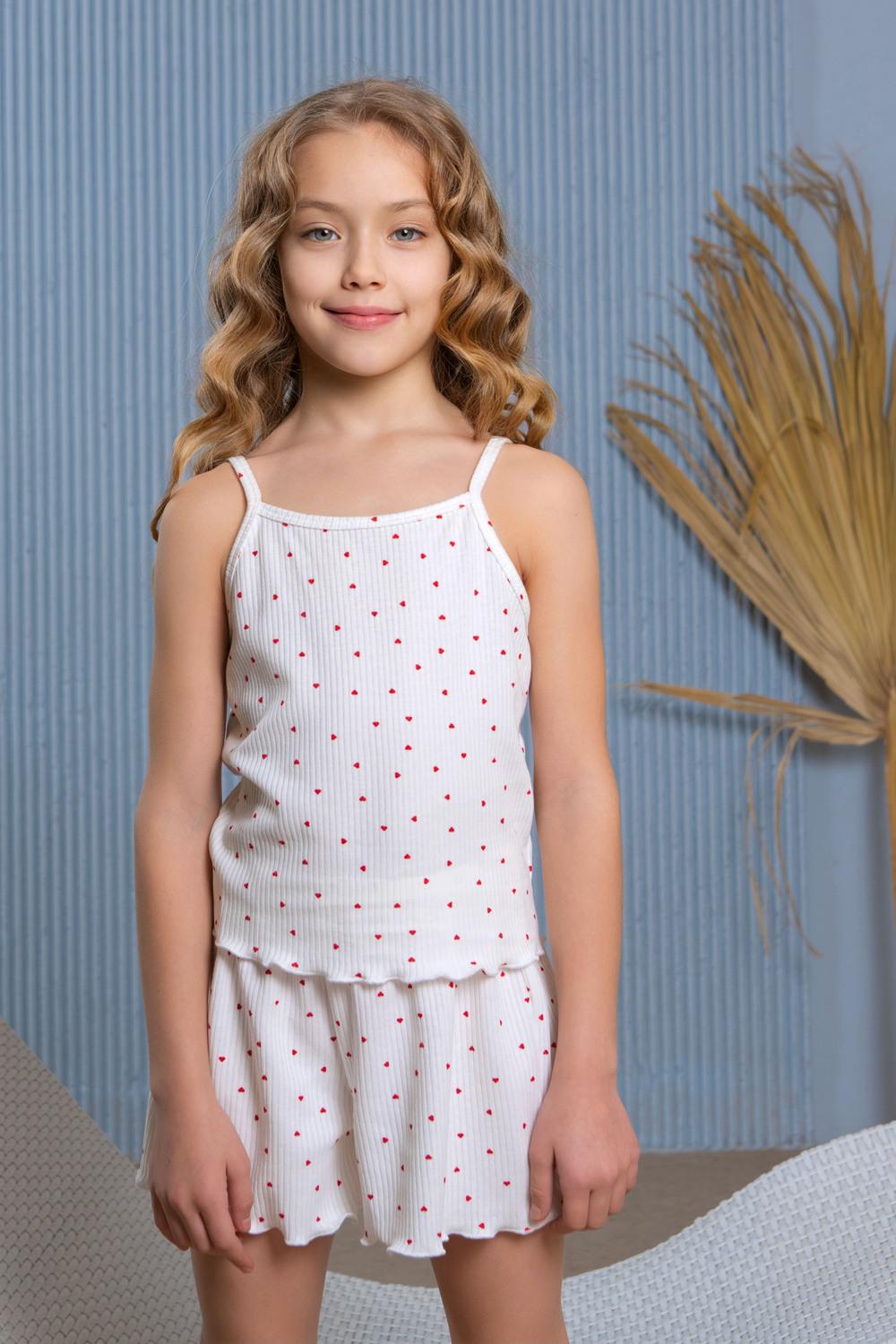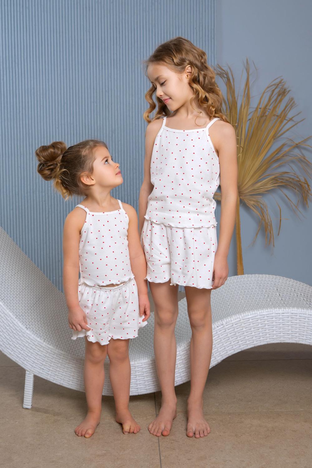 Летняя пижама для девочки — стильная и яркая с милым принтом в виде красных сердец. В комплект входит укороченный топ на лямках-брителях и удобные широкие шортики, что идеально подходит как для детей, так и для подростков. Выполнена из мягкой ткани лапша в рубчик, которая обеспечивает комфорт и отличную посадку благодаря широким резинкам. Пижамка станет любимым вариантом для летних дней, позволяя ребенку чувствовать себя легко и удобно. Ее можно носить каждый день, она будет радовать маму и малышку своей практичностью и стильным видом. К тому же, такая одежда — отличный подарок для маленькой модницы на день рождения. Яркая и оригинальная майка с шортами с сердечками дополнит гардероб вашей дочери и сделает лето еще более ярким и комфортным. Комплект домашней одежды для девочки это отличный подарок для маленьких принцесс!