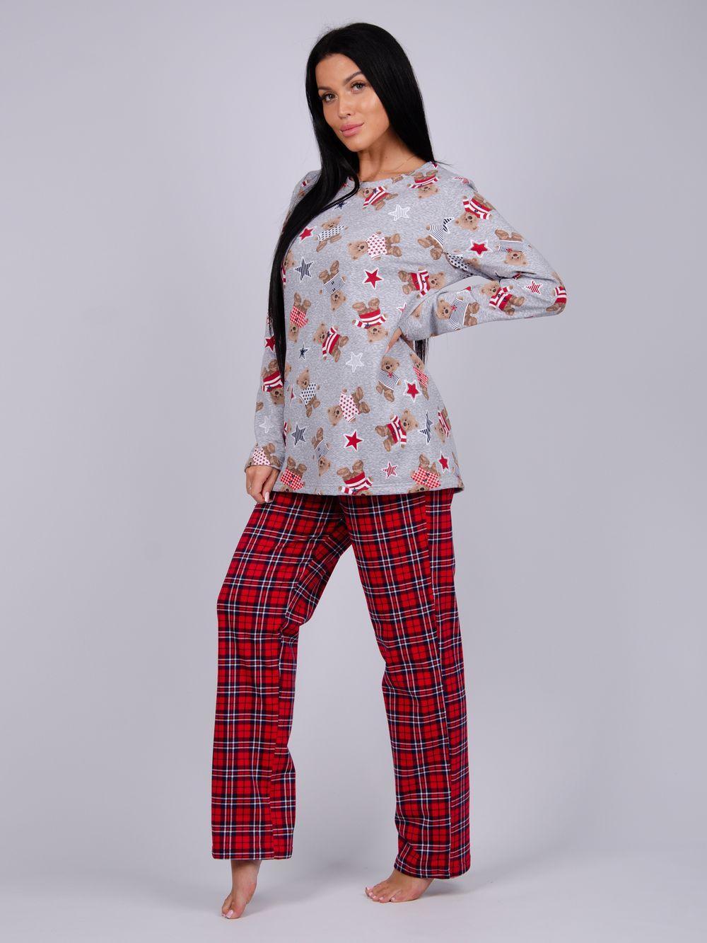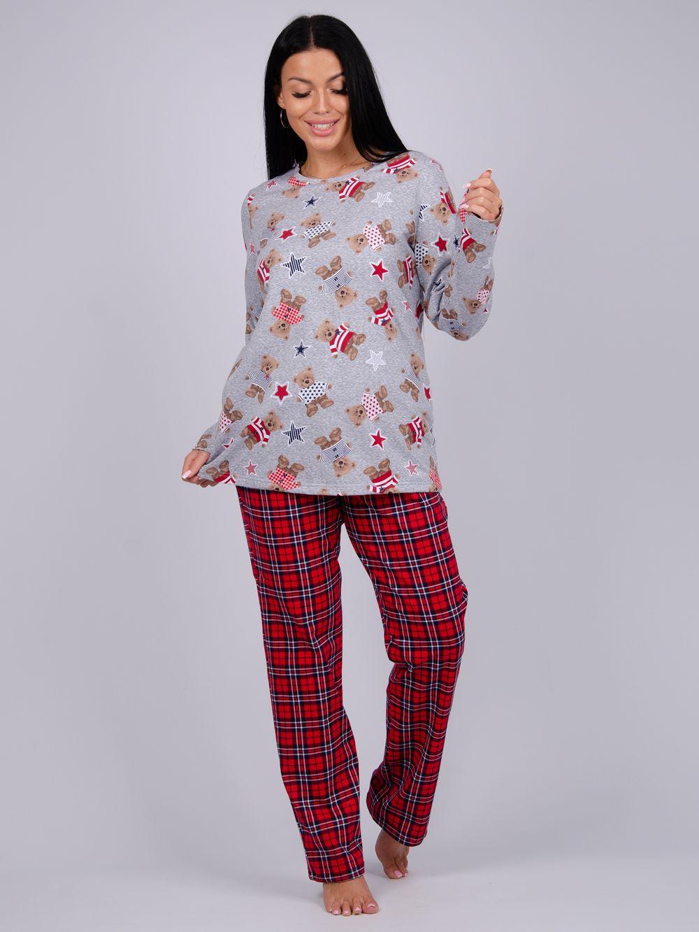 Эта модель доступна в больших размерах, поэтому идеально подойдёт для любых фигур. Удобный свободный крой не сковывает движения, позволяя чувствовать себя комфортно в любое время суток. Пижама женская с брюками особенно практична для зимних уикендов, когда так приятно завернуться в мягкую ткань и насладиться уютом.