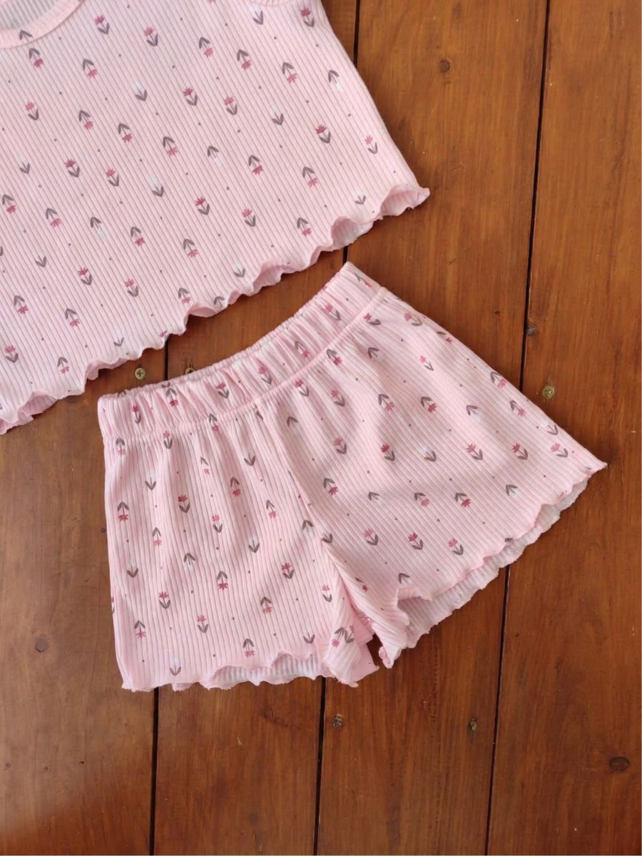 Пижама Пружинка топ с шортами 33069 розовые цветы