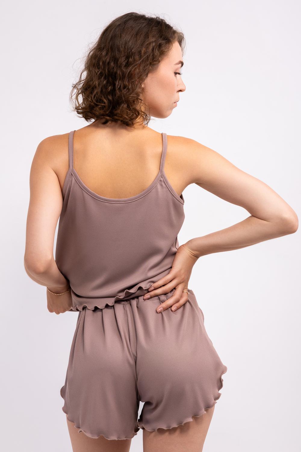 Пижамный комплект в рубчик, специально разработанный любителям качества, моды и стиля. Этот домашний костюм лапша, состоящий из топа на бретелях и удобных коротких шорт с запахом, станет вашим любимым в гардеробе для отдыха дома. Изготовленный из натуральной мягкой ткани вискозы, пижама обеспечивает комфорт и прохладу. Этот элегантный набор - прекрасный выбор для красивых женщин и милых дам, которые предпочитают базовую, но при этом уникальную домашнюю одежду. Подходит для различных типов фигур. Эта двойка из майки и шорт может стать отличным подарком на любой праздник.