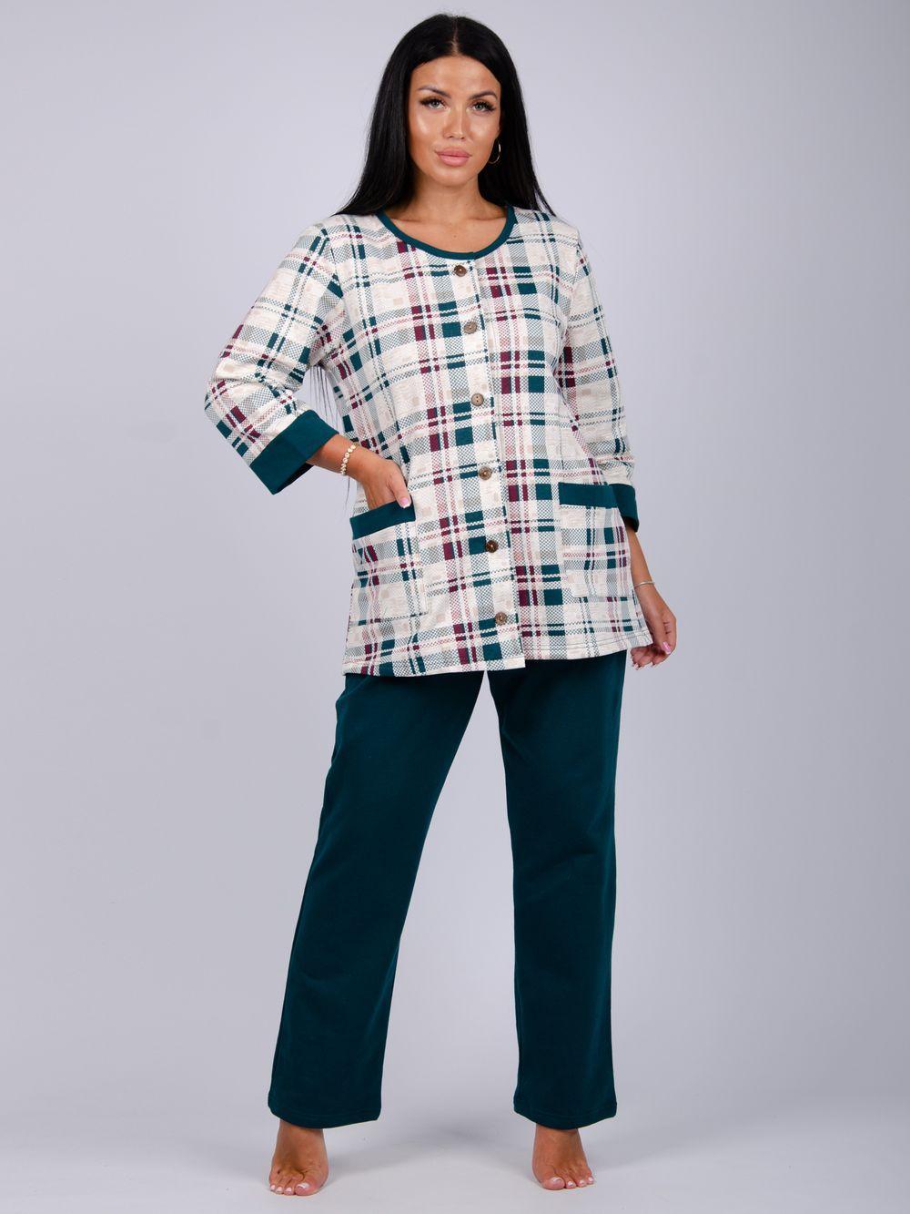Этот комплект станет отличным выбором для холодных зимних вечеров, когда вам хочется обернуться теплом и комфортом. Мягкий и приятный на ощупь хлопок создает уютную атмосферу, что делает пижаму идеальной для носки как дома, так и на даче. Широкие брюки не сковывают движения, а легкий дизайн позволяет не ощущать дискомфорта во время сна.