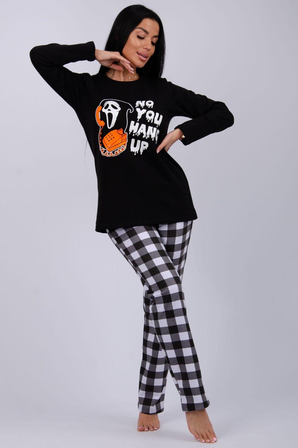 Пижама выполнена из мягкого и приятного на ощупь хлопка, который не раздражает кожу и обеспечивает хорошую вентиляцию. Материал обладает высокой прочностью и долговечностью, не теряет форму после стирки. В комплект входят брюки и кофта с длинным рукавом. Брюки имеют удобную посадку и не сковывают движений, а кофта украшена новогодним принтом, создающим праздничное настроение.