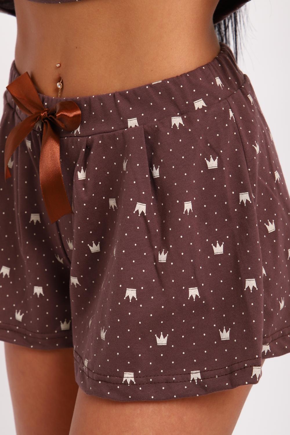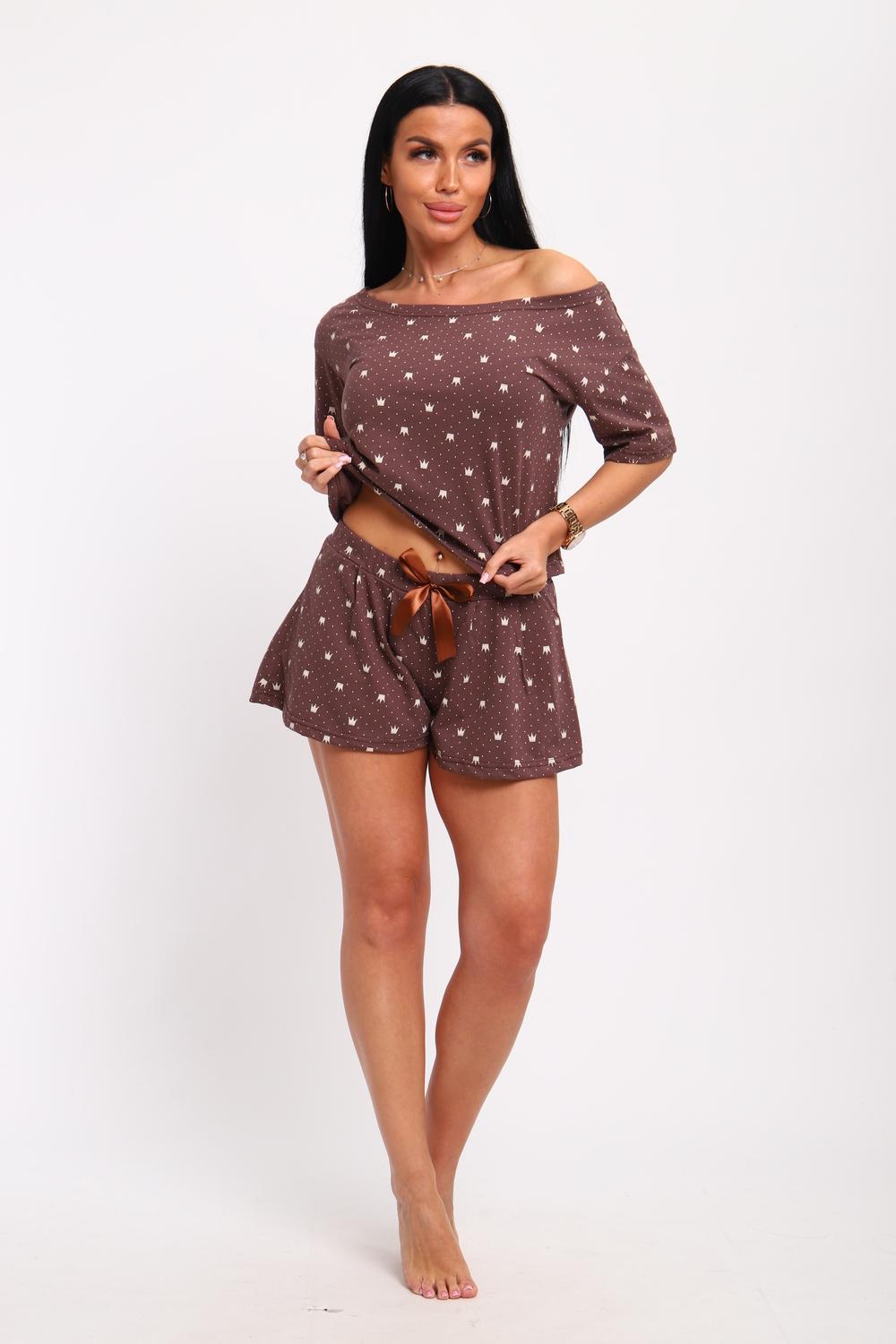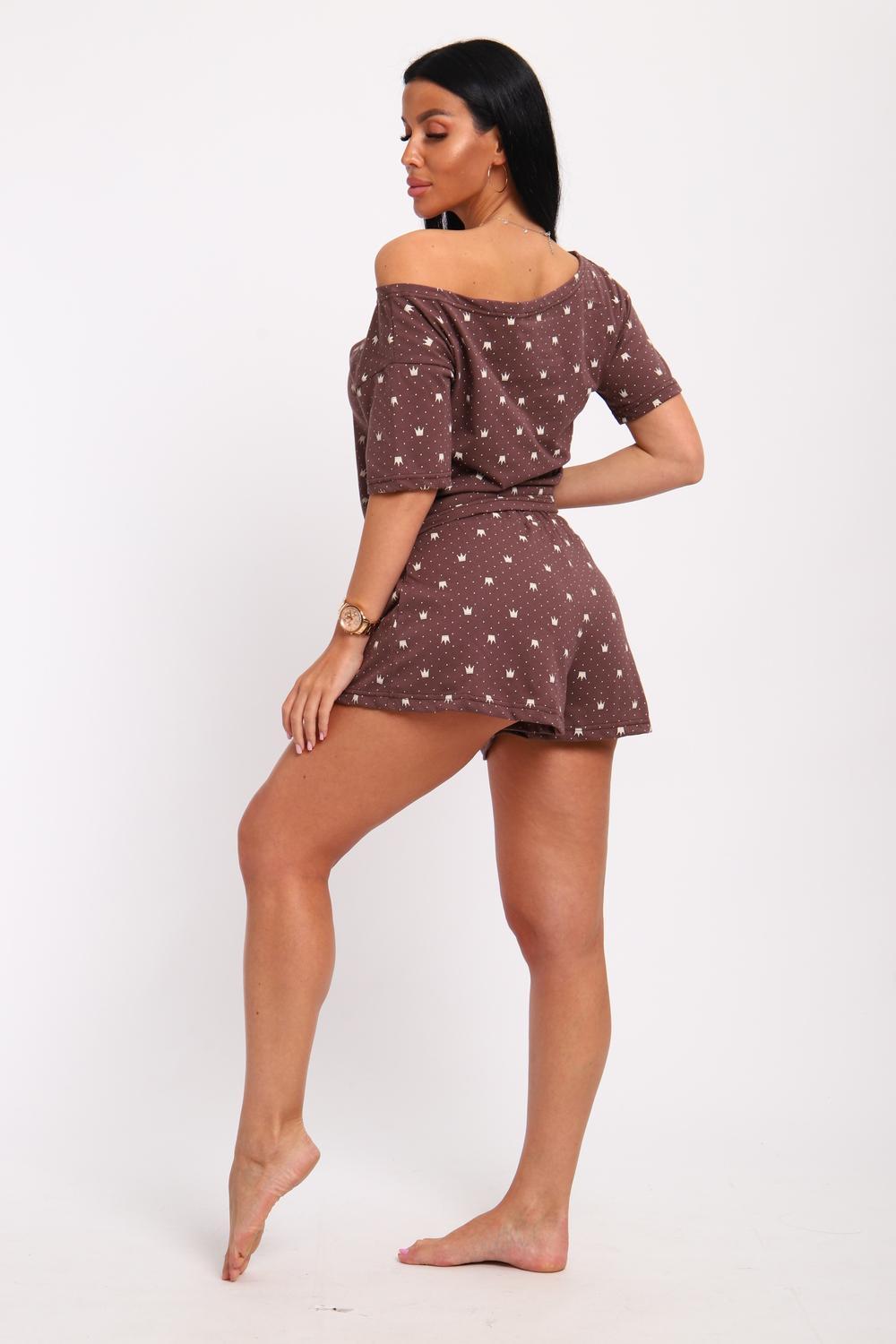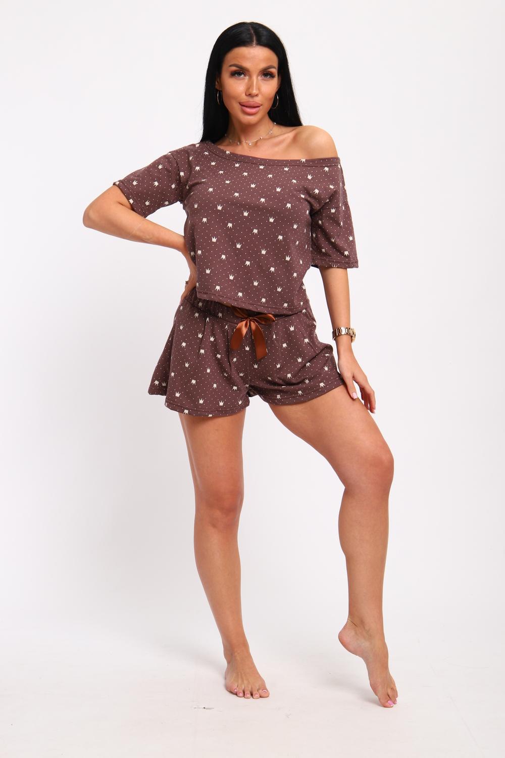 Пижама женская футболка и шорты. Футболка свободного кроя, широкий вырез горловины. Рукав короткий на спущенном плече.