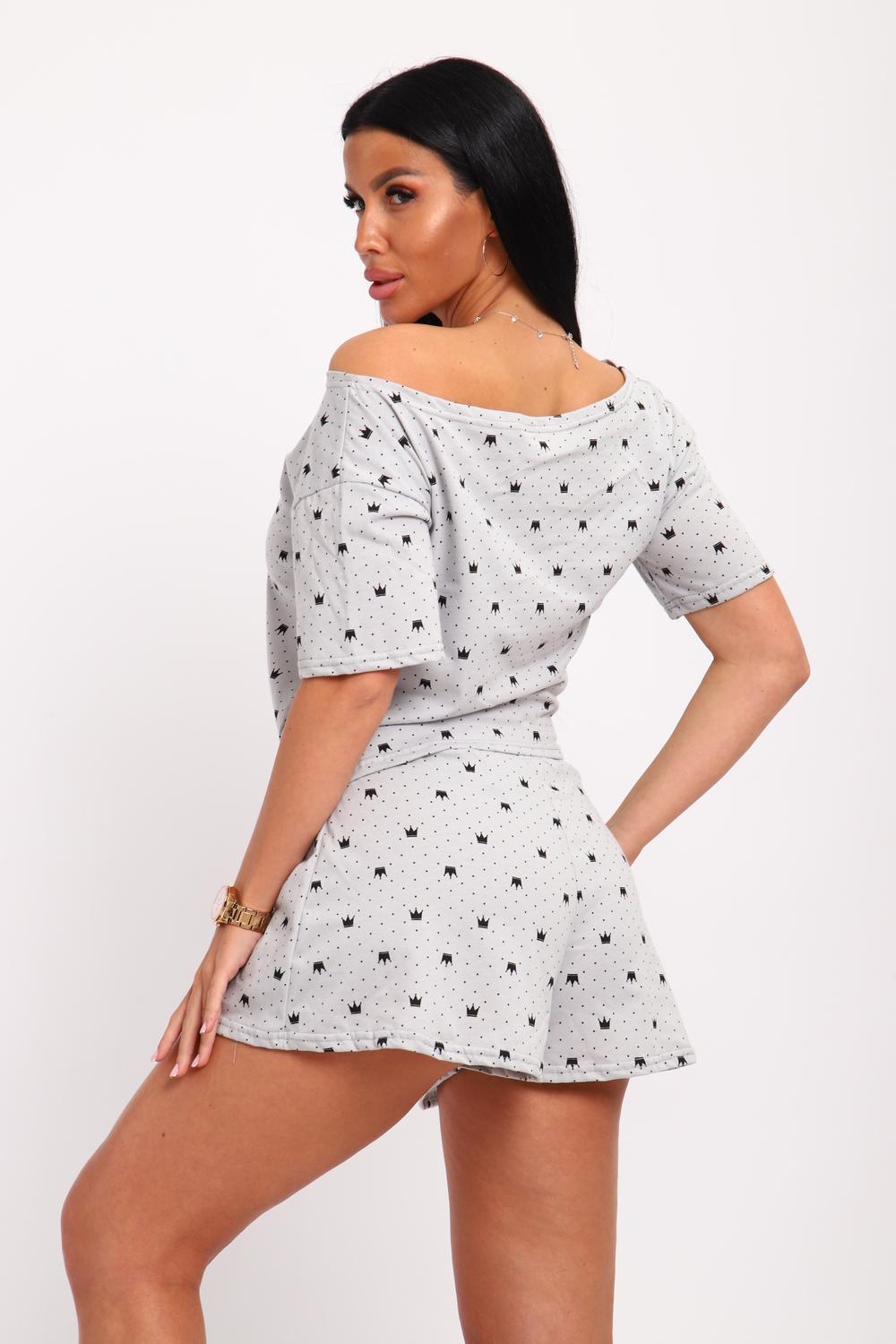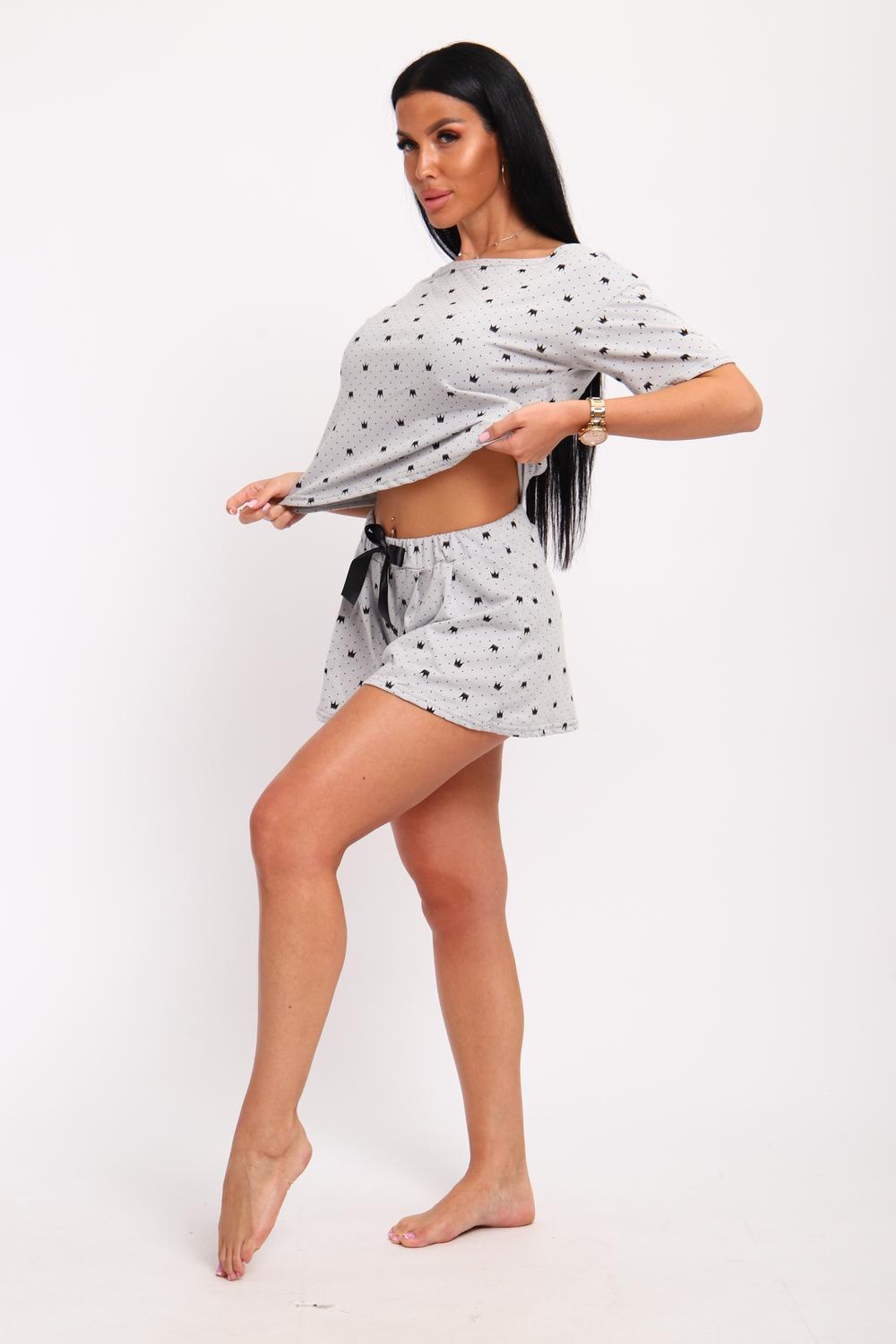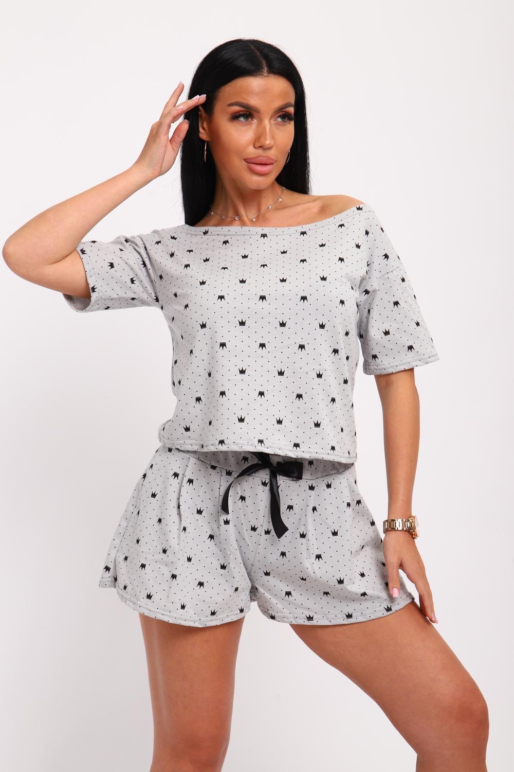 Пижама женская футболка и шорты. Футболка свободного кроя с широким вырезом горловины, рукав короткий на спущенном плече.