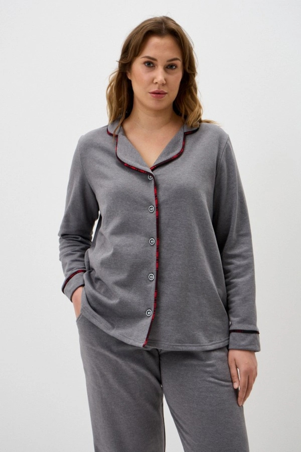 Пижама женская Ирина из высококачественного футера 2-х нитки с начёсом - прекрасно подойдет для повседневной носки дома и сна. Рубашка с отложным воротничком сделает Ваш образ еще более женственным. Красивая и удобная модель пижамы отлично подойдет в качестве подарка.