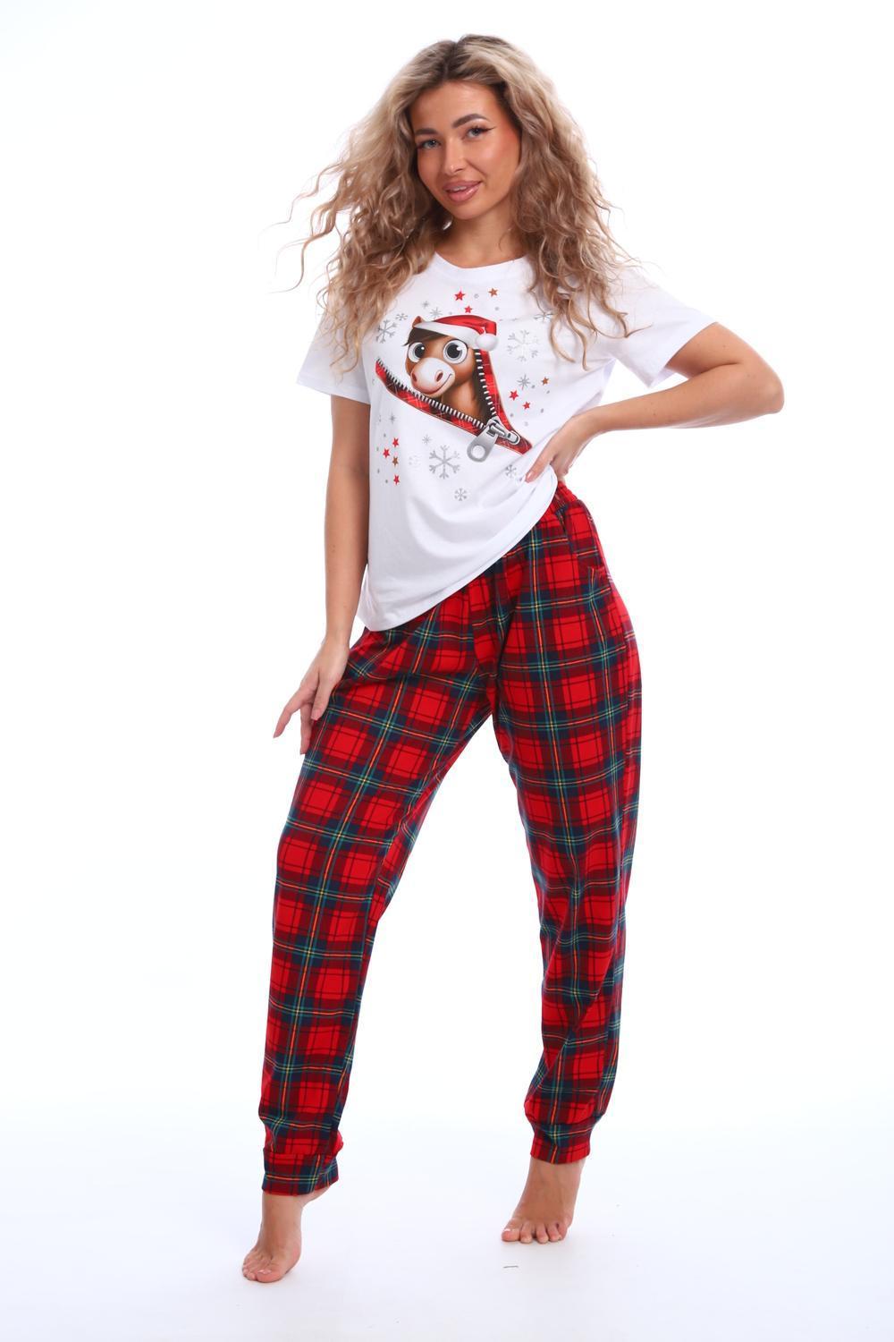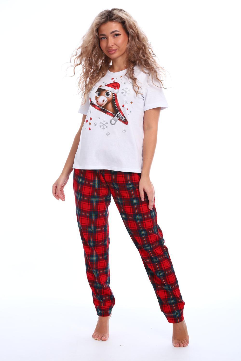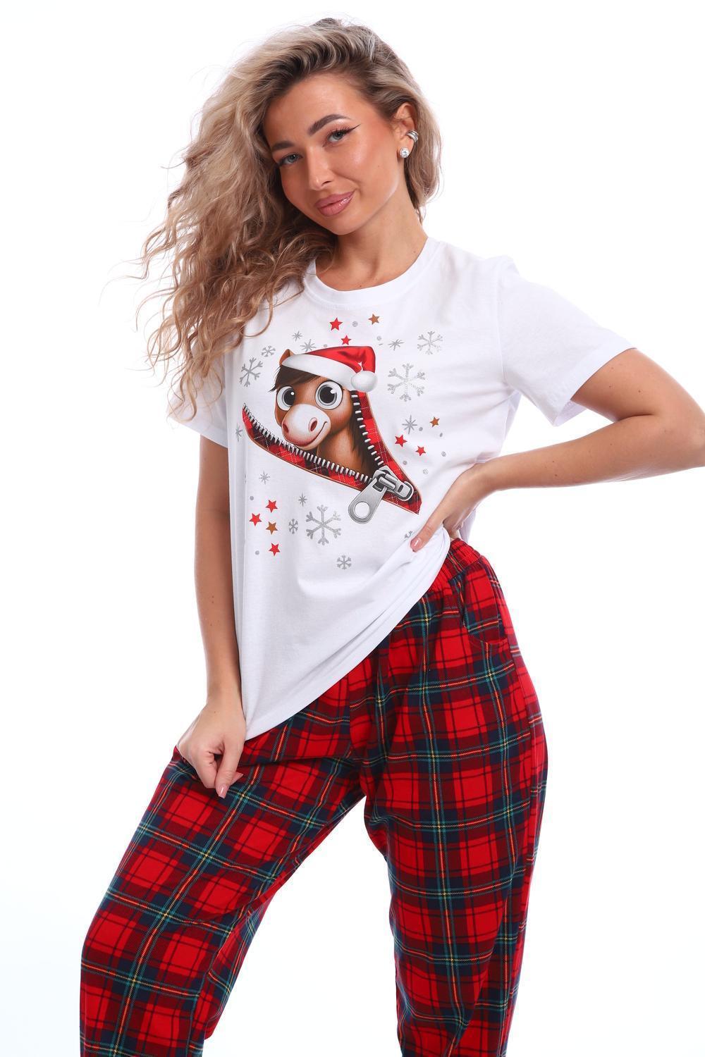 Мы рады представить тебе милую и уютную одежду для сна и отдыха, которая станет неотъемлемой частью твоего домашнего комфорта в Новый год и в самый романтичный день года – День святого Валентина! Комплект состоит из белой футболки с забавным принтом лося и красных штанов в клетку. Этот легкий костюм из мягкого хлопка подарит незабываемое ощущение нежности и уюта в холодные зимние дни, позволяя тебе чувствовать себя комфортно и стильно.