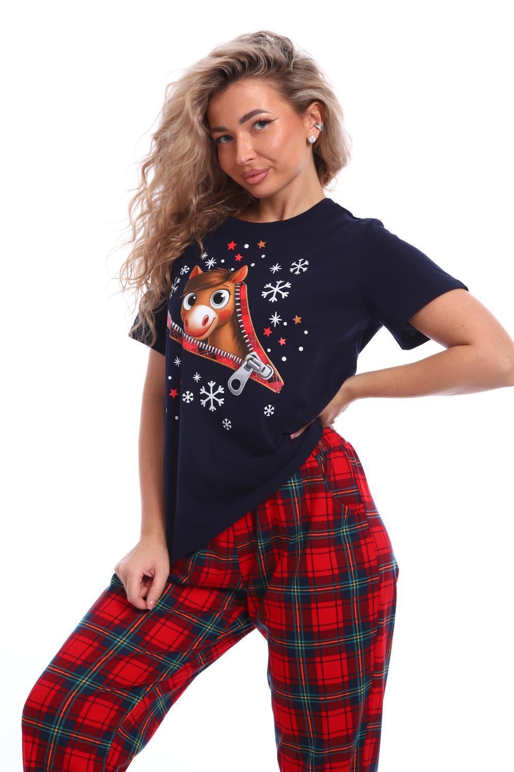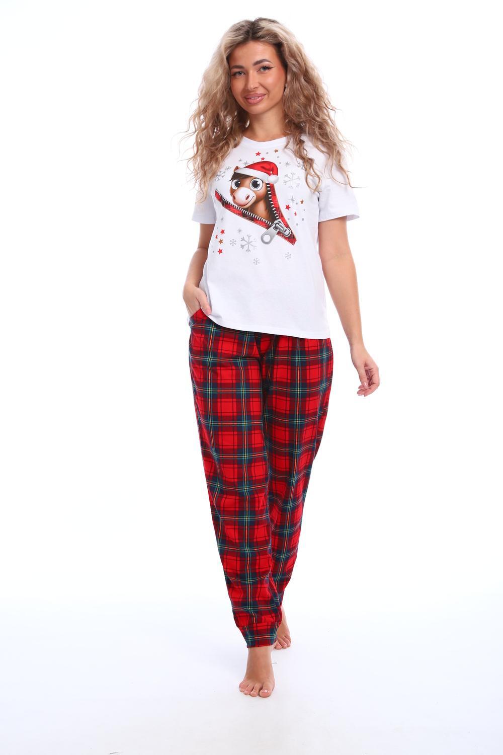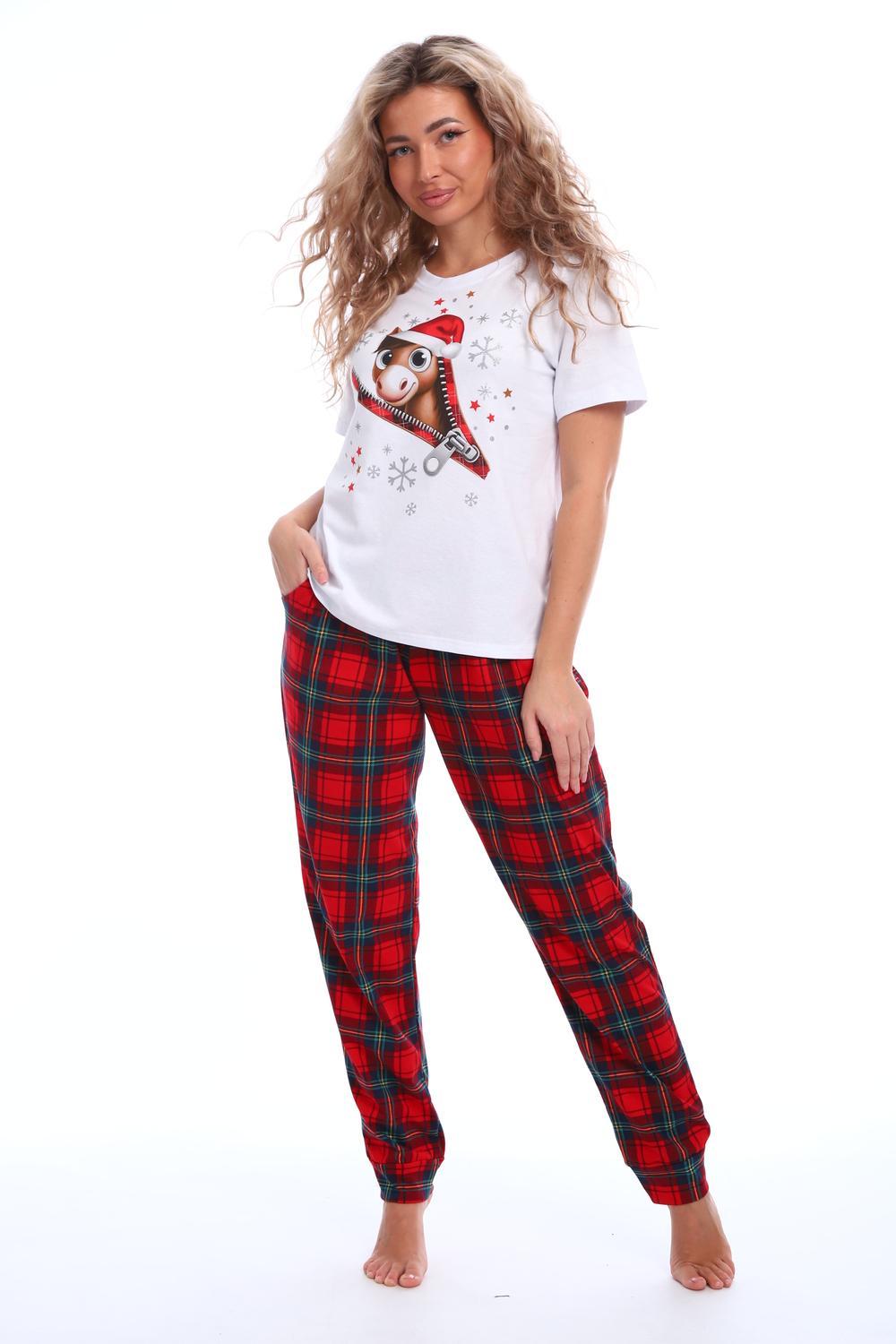 Мы рады представить тебе милую и уютную одежду для сна и отдыха, которая станет неотъемлемой частью твоего домашнего комфорта в Новый год и в самый романтичный день года – День святого Валентина! Комплект состоит из белой футболки с забавным принтом лося и красных штанов в клетку. Этот легкий костюм из мягкого хлопка подарит незабываемое ощущение нежности и уюта в холодные зимние дни, позволяя тебе чувствовать себя комфортно и стильно.