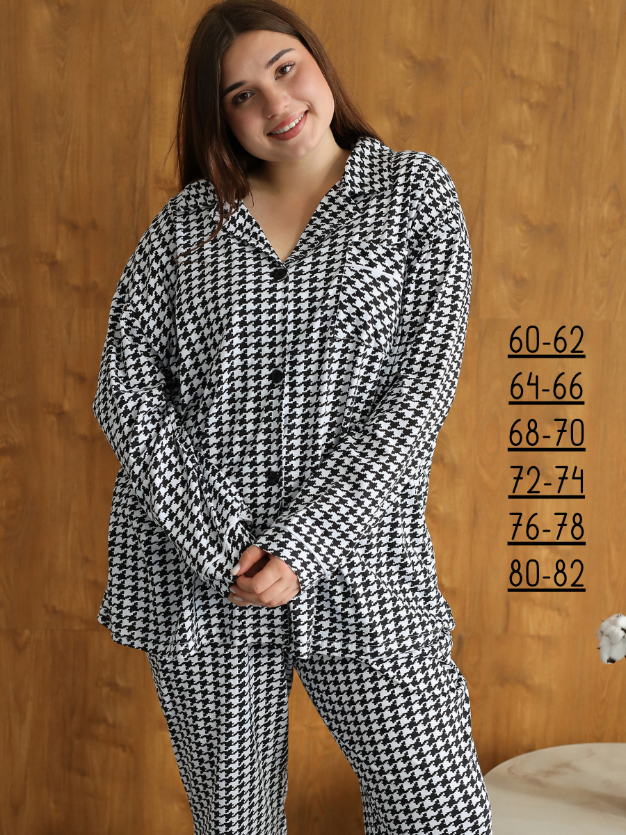 Представляем вам уютную и стильную пижаму, созданную специально для женщин, ценящих комфорт и элегантность. Эта пижама станет идеальным выбором для холодных зимних вечеров, обеспечивая вам тепло и уют в любое время суток. Она сшита из 100% хлопка, что гарантирует мягкость, приятную тактильность и комфорт при ношении. Модель выполнена в классическом клетчатом дизайне, который никогда не выходит из моды. Пижама состоит из стильной рубашки с длинными рукавами на пуговицах и просторных брюк с высокой посадкой, обеспечивая свободу движений и максимальный комфорт. Благодаря свободному крою и мягкой ткани, эта пижама идеально подходит для женщин больших размеров, обеспечивая им комфорт и уверенность. Она станет отличным подарком на Рождество для любимых женщин, а также прекрасным вариантом для ношения в больнице или дома.