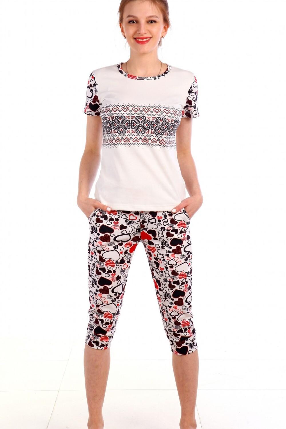 Женская пижама с бриджами и футболкой с коротким рукавом - идеальный баланс стиля и уюта. Модель выполнена из высококачественного интерлока. Комфортный фасон и аккуратный дизайн.